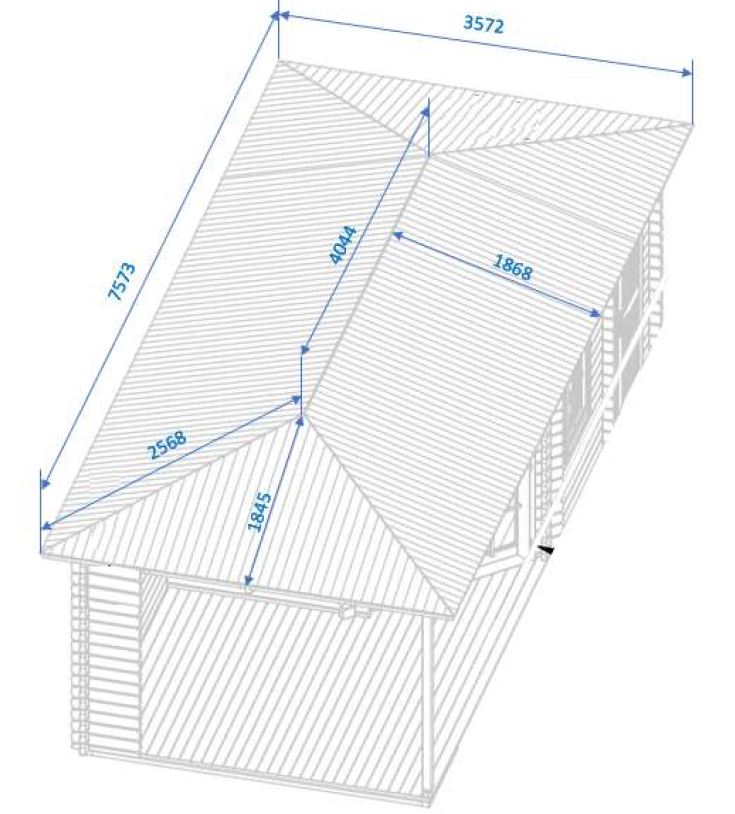 Täisroov (18x90 täispunnlaudisega) aiamaja katuse (28,3 ruutmeetrit) katmine bituumensindliga + räästaplekid ja vihmaveesüsteem (kõik küljed).