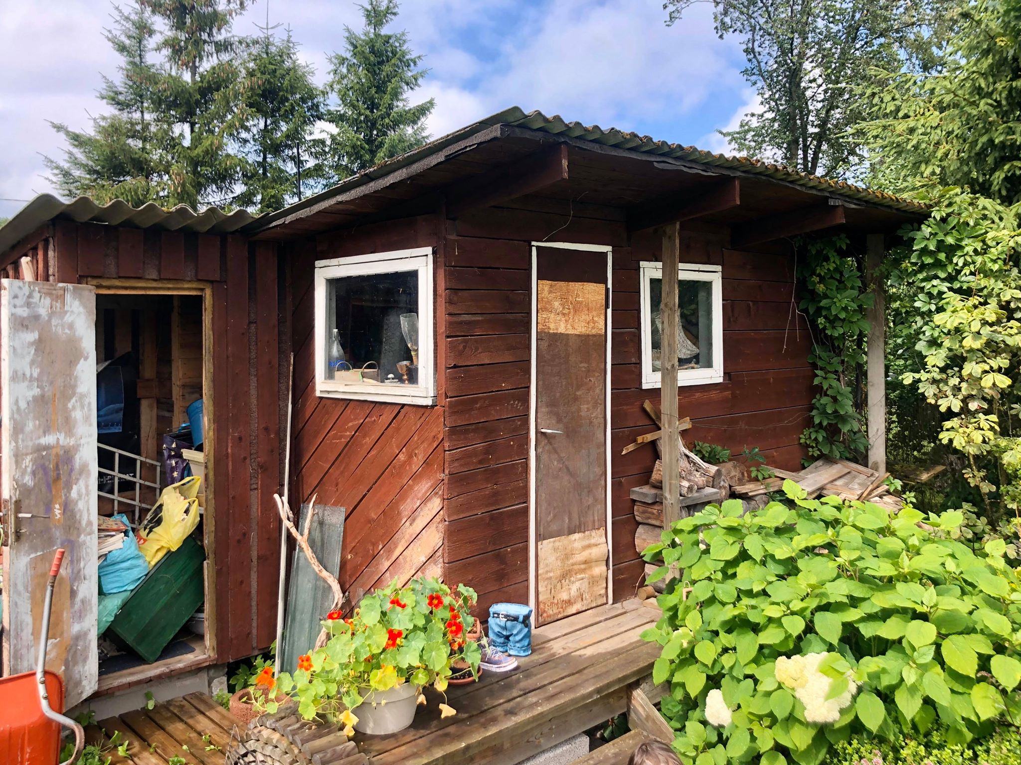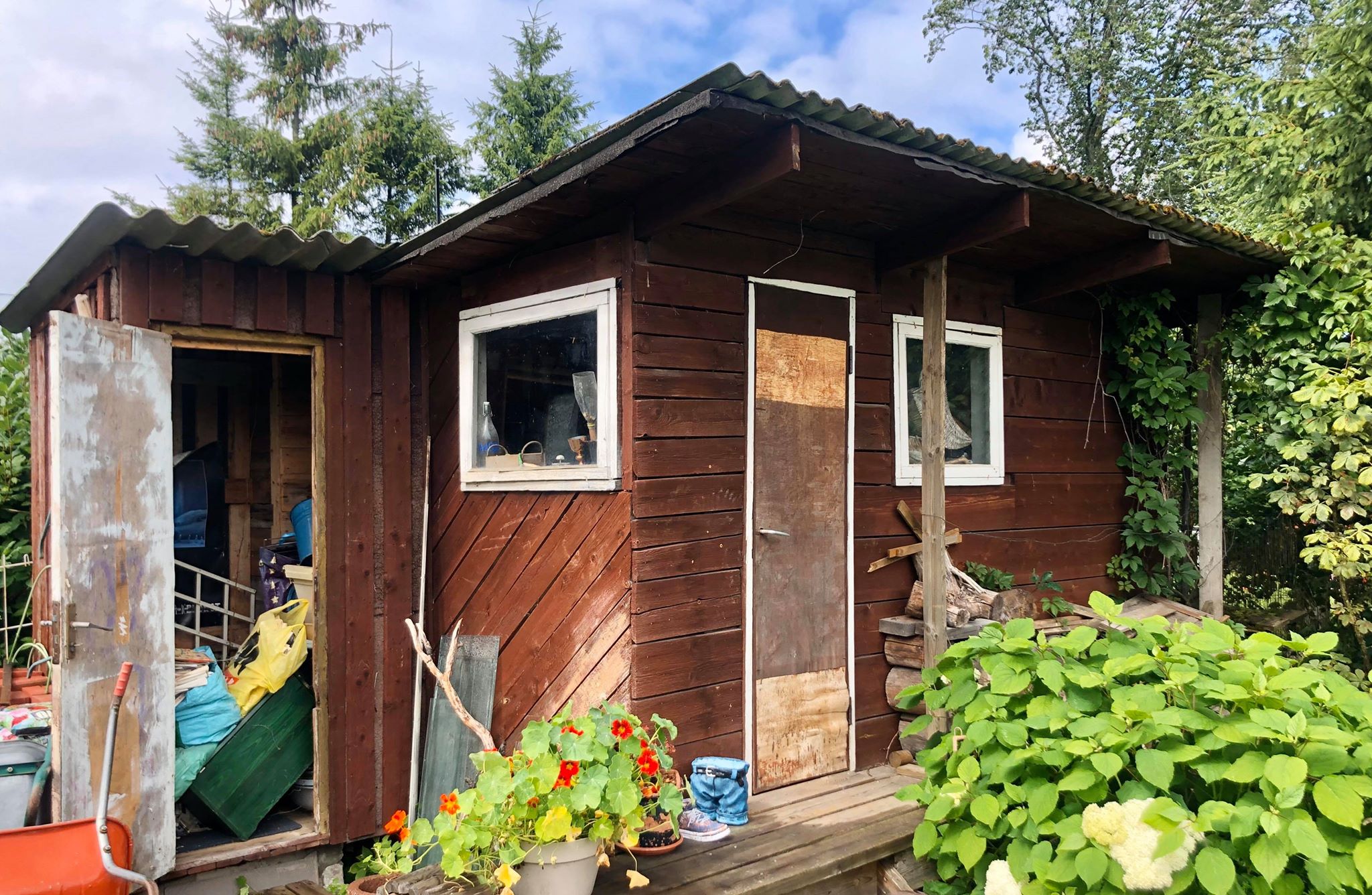 - Vana kuuri sisu utiliseerimine (suur kogus vana klaasi, vanad lillepotid ja katkised aiatööriistad jms. Kuur on sõna otseses mõttes kraami täis, vt foto.