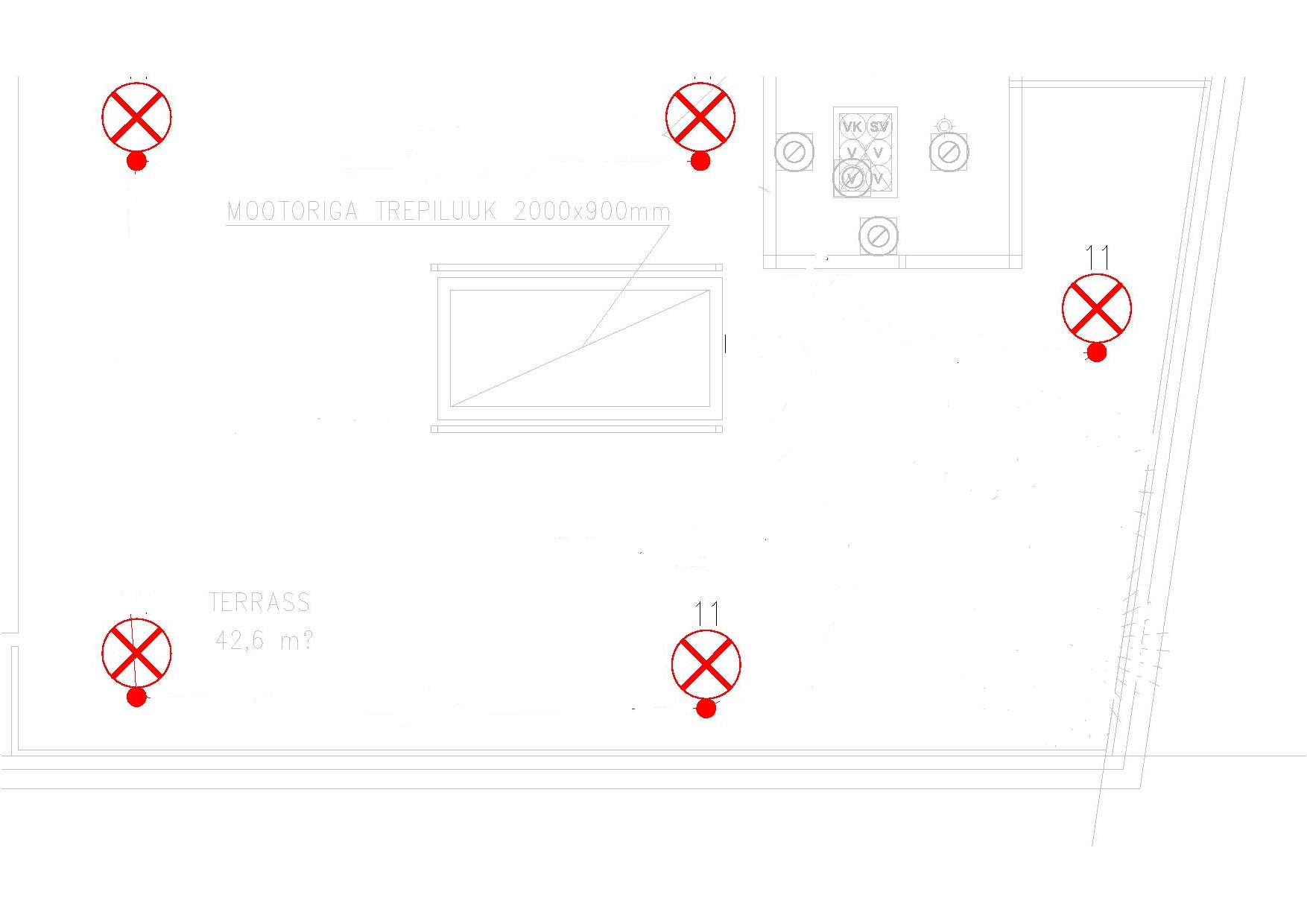Vaja oleks katuseterrassi vana puitlaudis üles võtta (ilmselt koos karkassiga) + materjal 4. korrusse katuselt alla vedada ning paigaldada asemele puitplastkomposiitlauast terrass (koos karkassiga). Lisaks oleks vaja välja vahetada 5 terrassi valgustit.