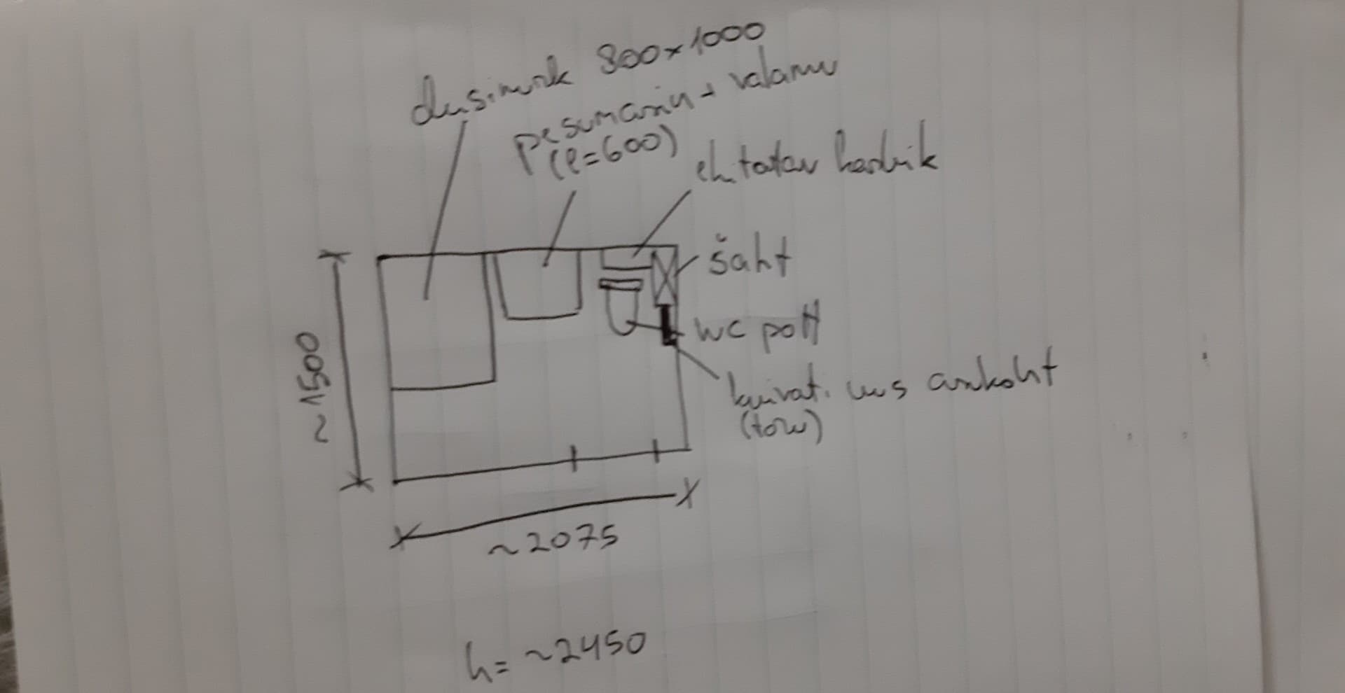 Hetkel on vaheseinal ka käterätikuivati, see tuleks liigutada kõige parem poolsele seinale, ehk siis pildilt vaadates WC seinale (nähtav ka eskiisil).