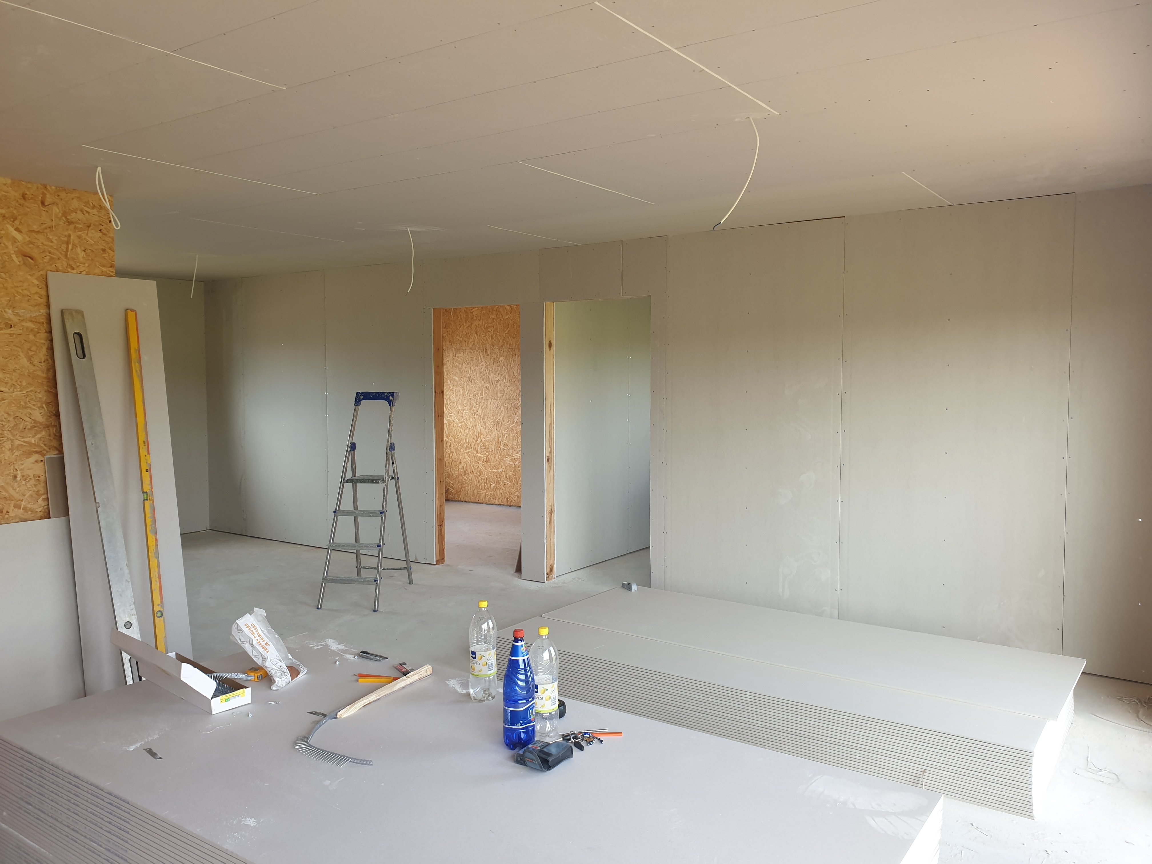 Vaja teostada lagedes ja seintes kipsplaadi vuukide pahteldamine ja kruvipeade täitmine + lauspahteldus + lihv+ krunt.