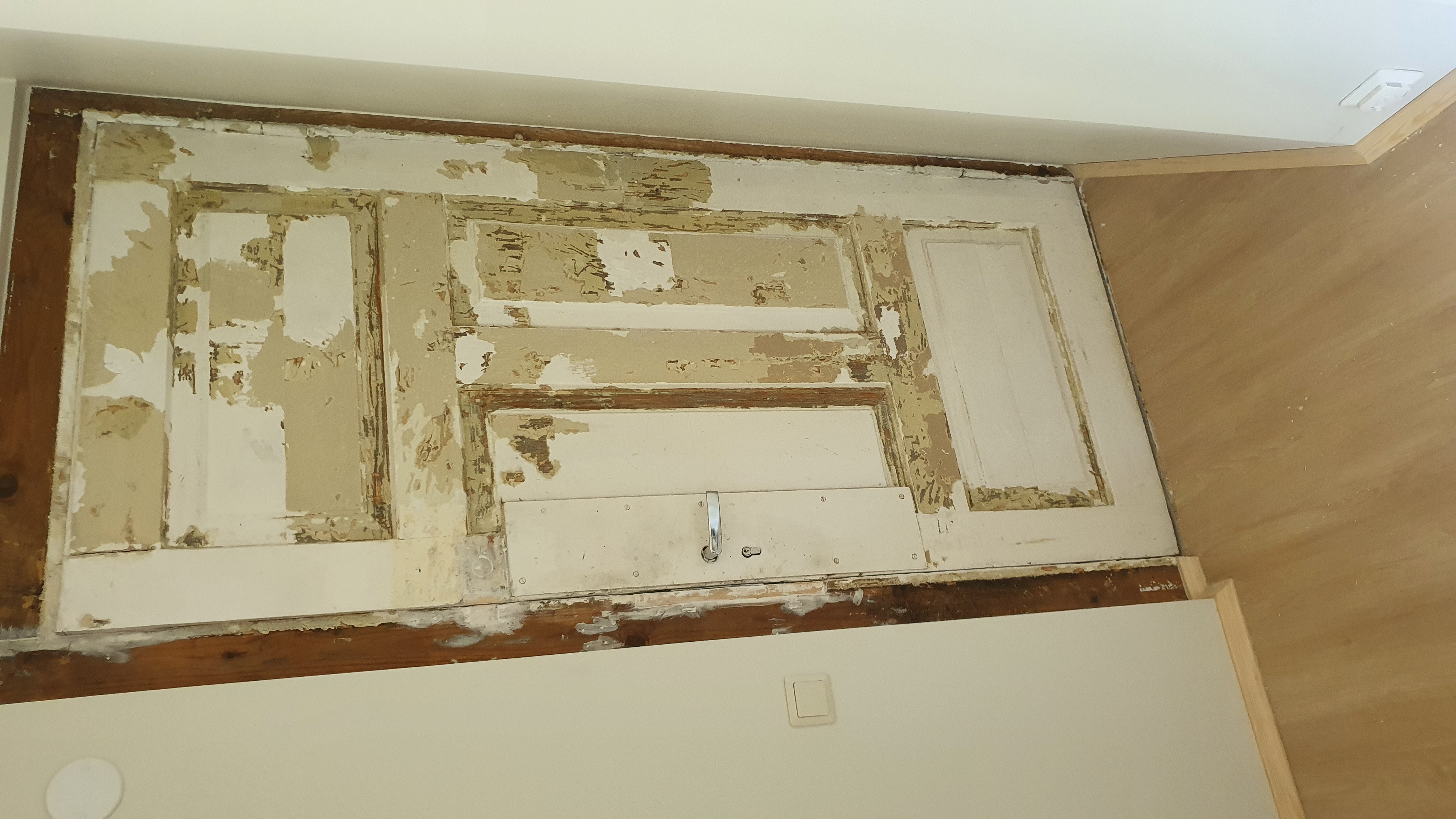 Uksel ja lengil on palju kihte vana värvi mis tuleb kohati lihtsalt lahti kuid kohati mitte. Alustasin ukse värvist puhastamist kuid see kujunes ilma õigete töövahenditeta suuremaks tööks kui arvasin. Lahtine värv tuleks lõpuni eemaldada, ebatasasused pahteldada ja pind saada enamasti siledaks. Oluline on et lõpptulemus ei häiriks silma ja ei oleks praguline, pinna perfektne sirgus ei ole eesmärk. Pakkumine peaks sisaldama kõiki tööks vajalike vahendeid ja piisavalt värvikihte, et alumised pinnakihid ei paistaks läbi.
