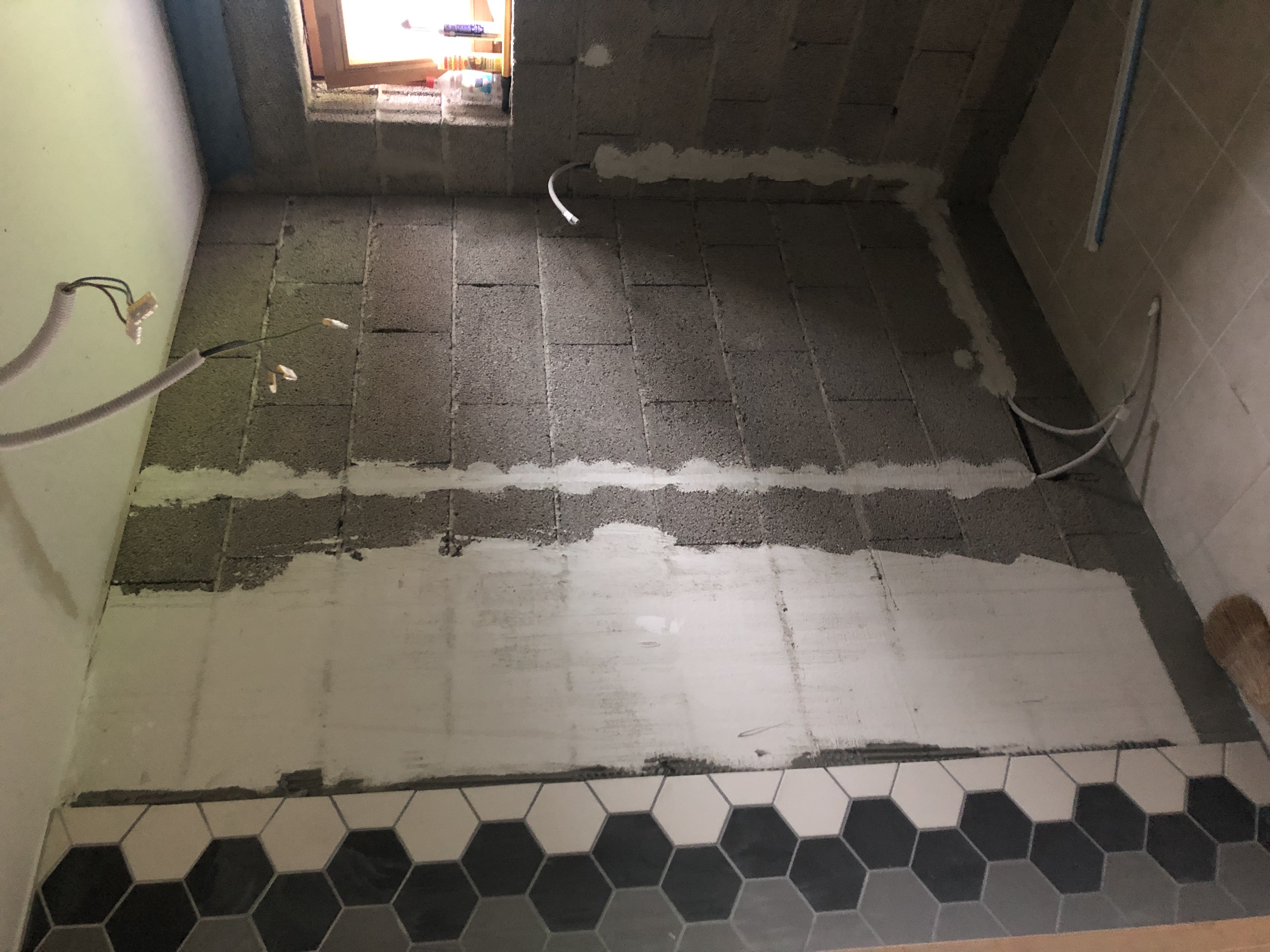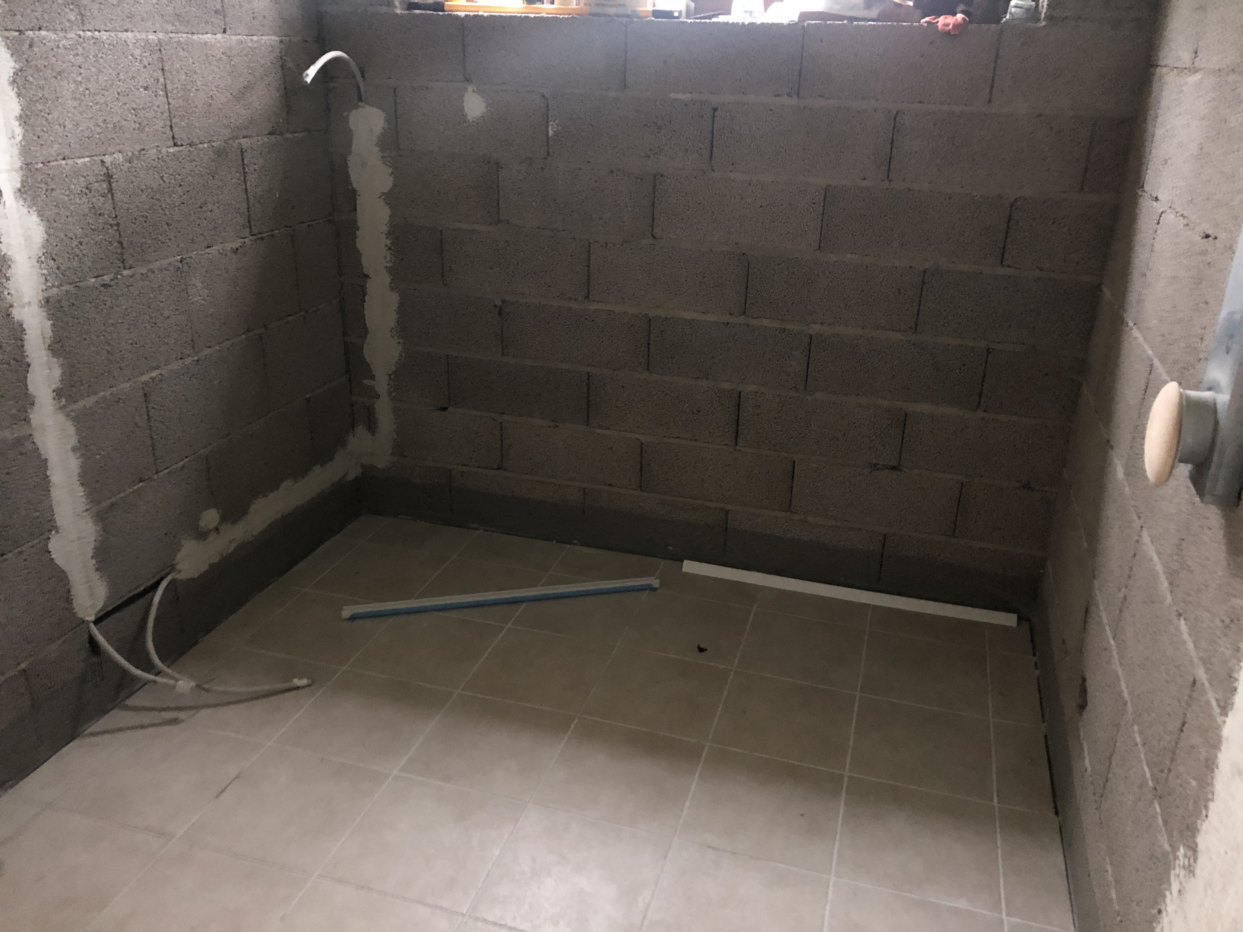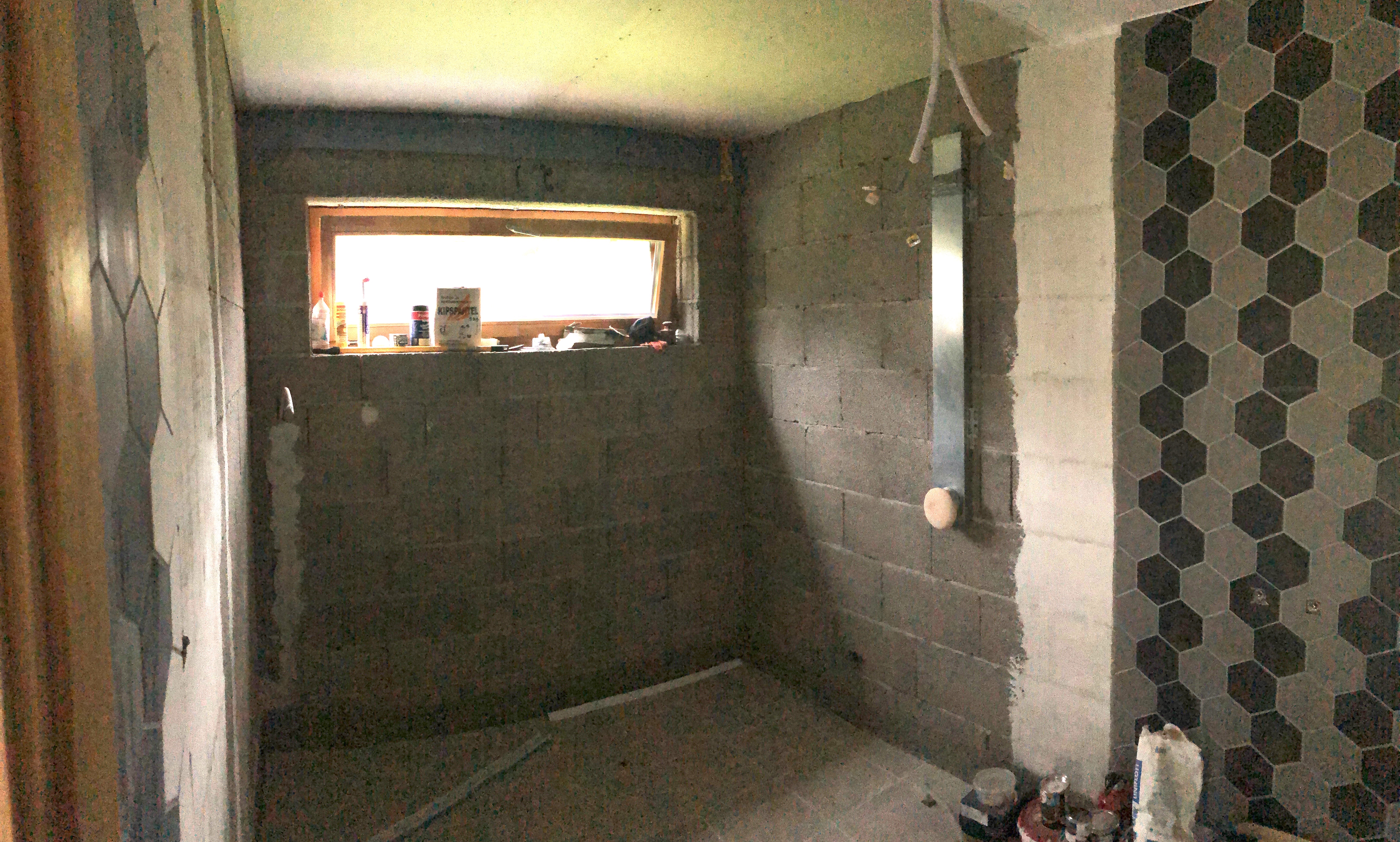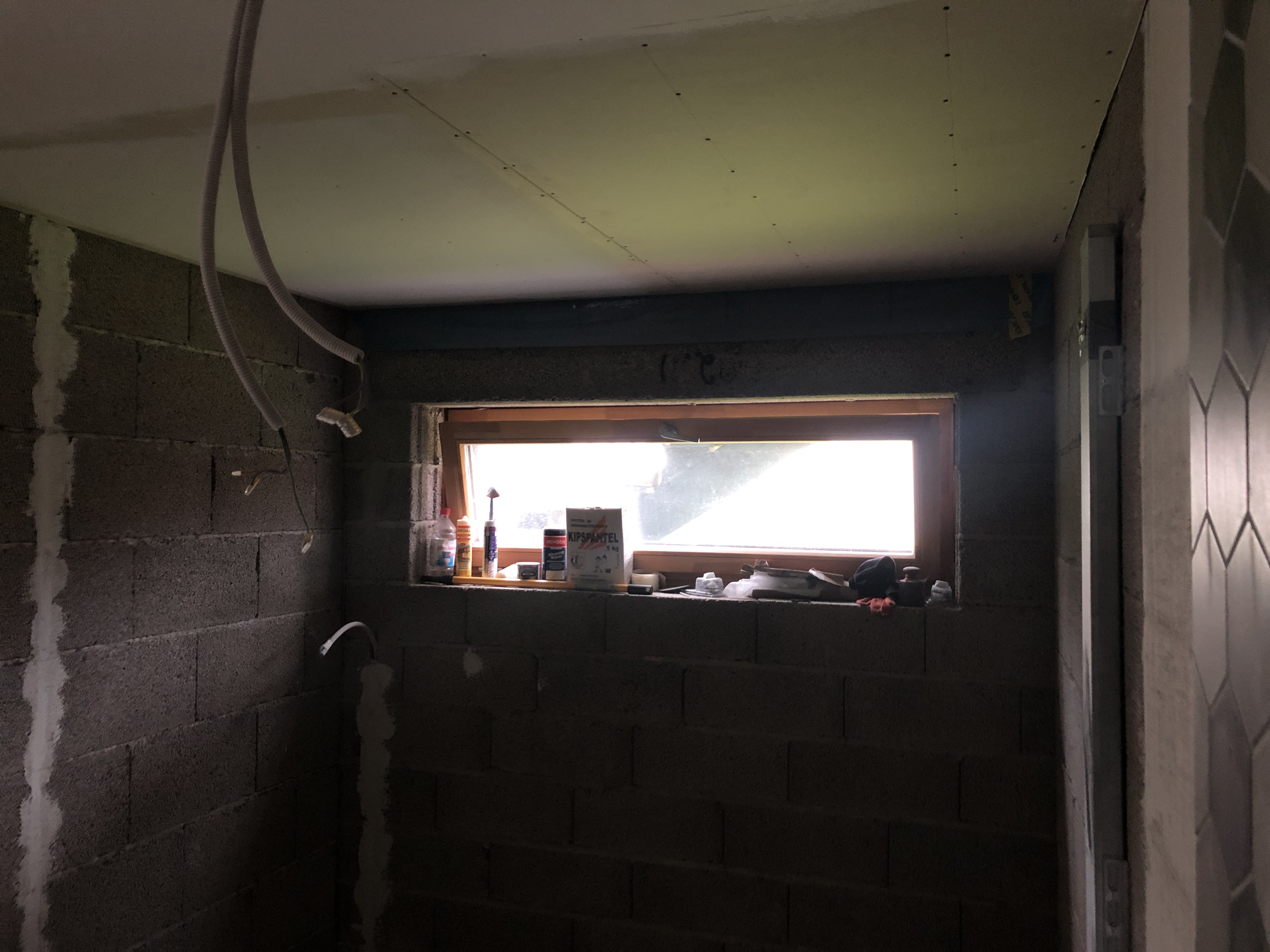 Leiliruumi ja dušširuumi vahel tuleb klaassein, mis ei ole antud projekti osa, kuid puidust osaline vahesein on tööde mahus. Klaasseina vasakul pool küljes puitkarkassist vahesein poolele kõrguseni ja klaasseina kohale puitkarkassil vaheseina vöö. Paremal pool küljes läheb klaassein vastu olemasolevat seina.