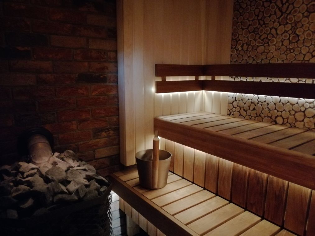 Leiliruumi ehitus, seinte ja lae soojustamine, laudise paigaldus, lavade ehitus ja paigaldus, plaatimistööd.