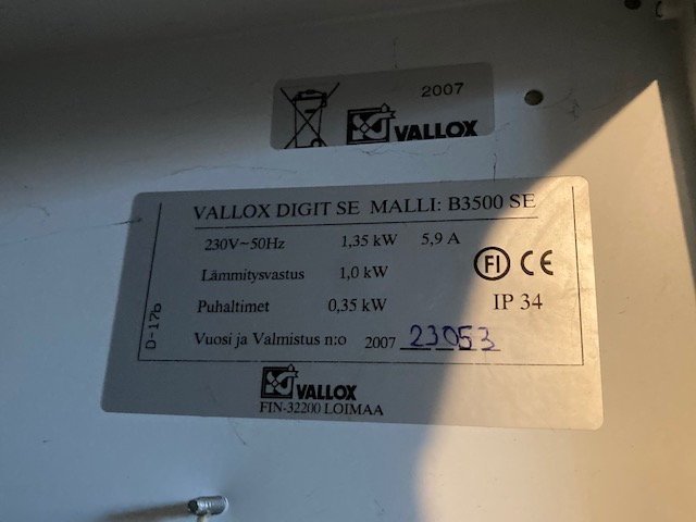 Eramajas paigaldatud VALLOX DIGIT SE ventilatsiooni seade. Maja on 327m2 ja asub Tõrvandis, Kambja vald