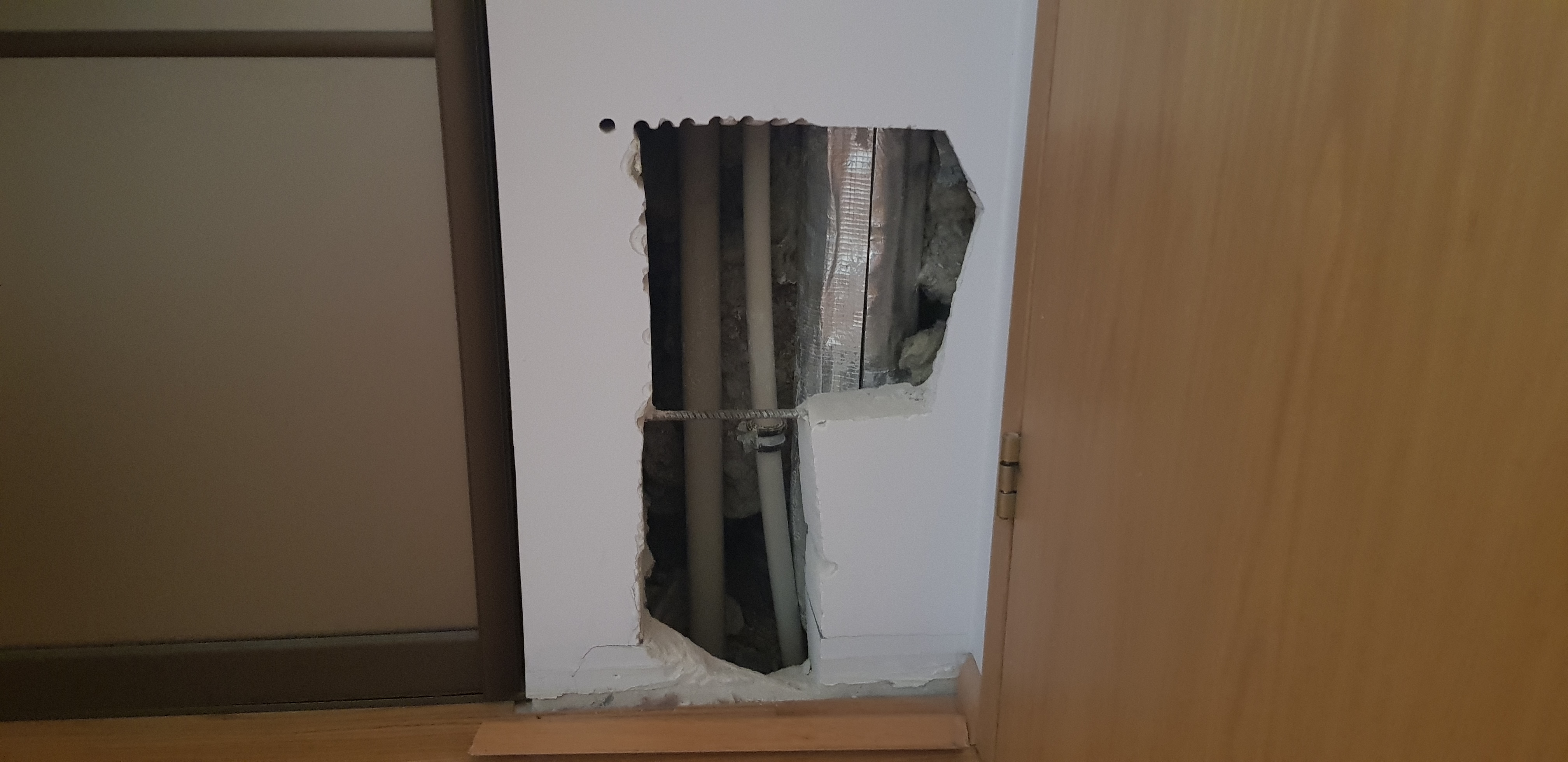 Korteri seina lõhutud 55 x 35 cm avause parandus.
