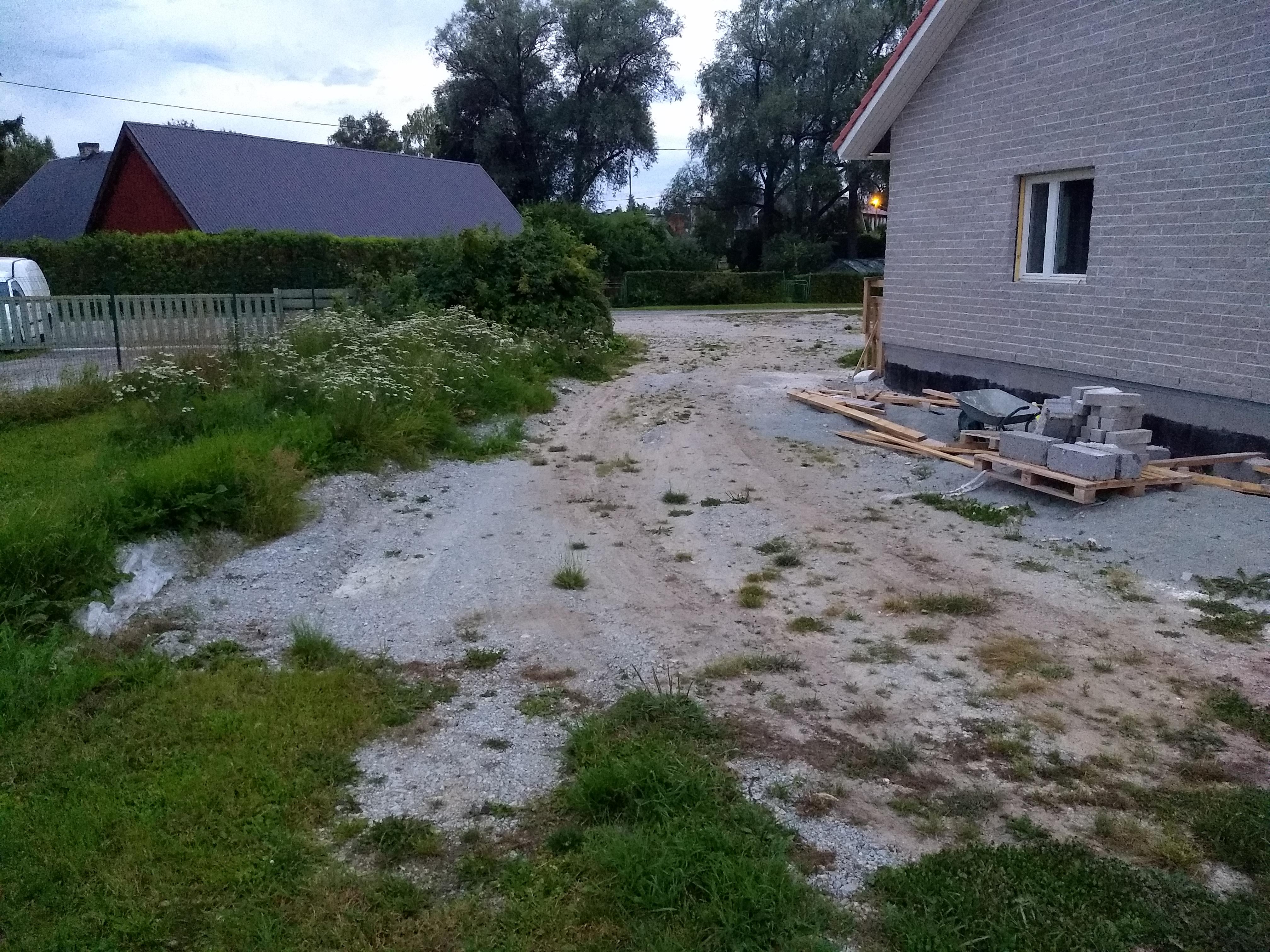 - Hoone seina perimeetril ~50 cm paksuselt tihendatud kruus/killustik tee rajamiseks. Edasi moreen.