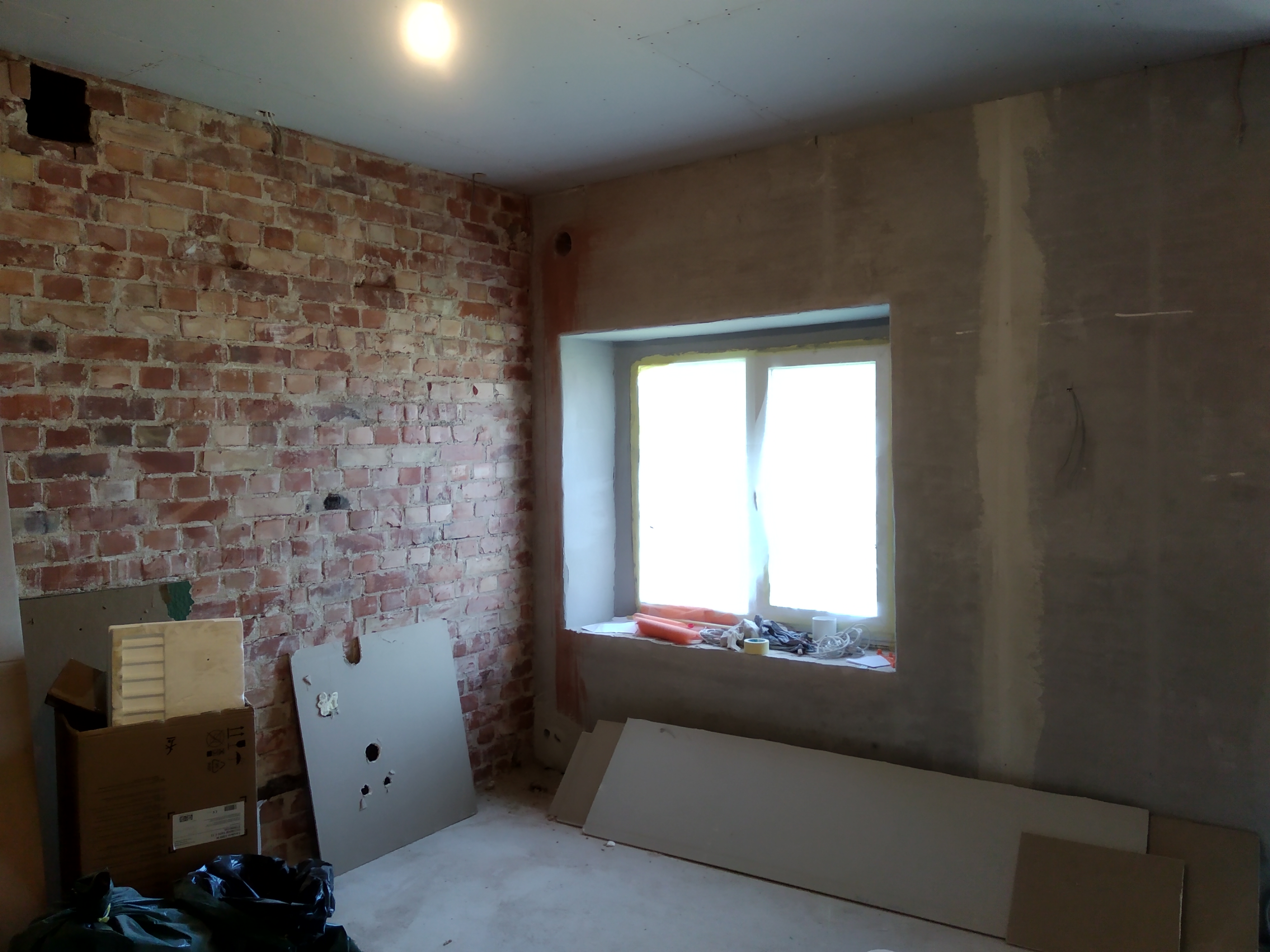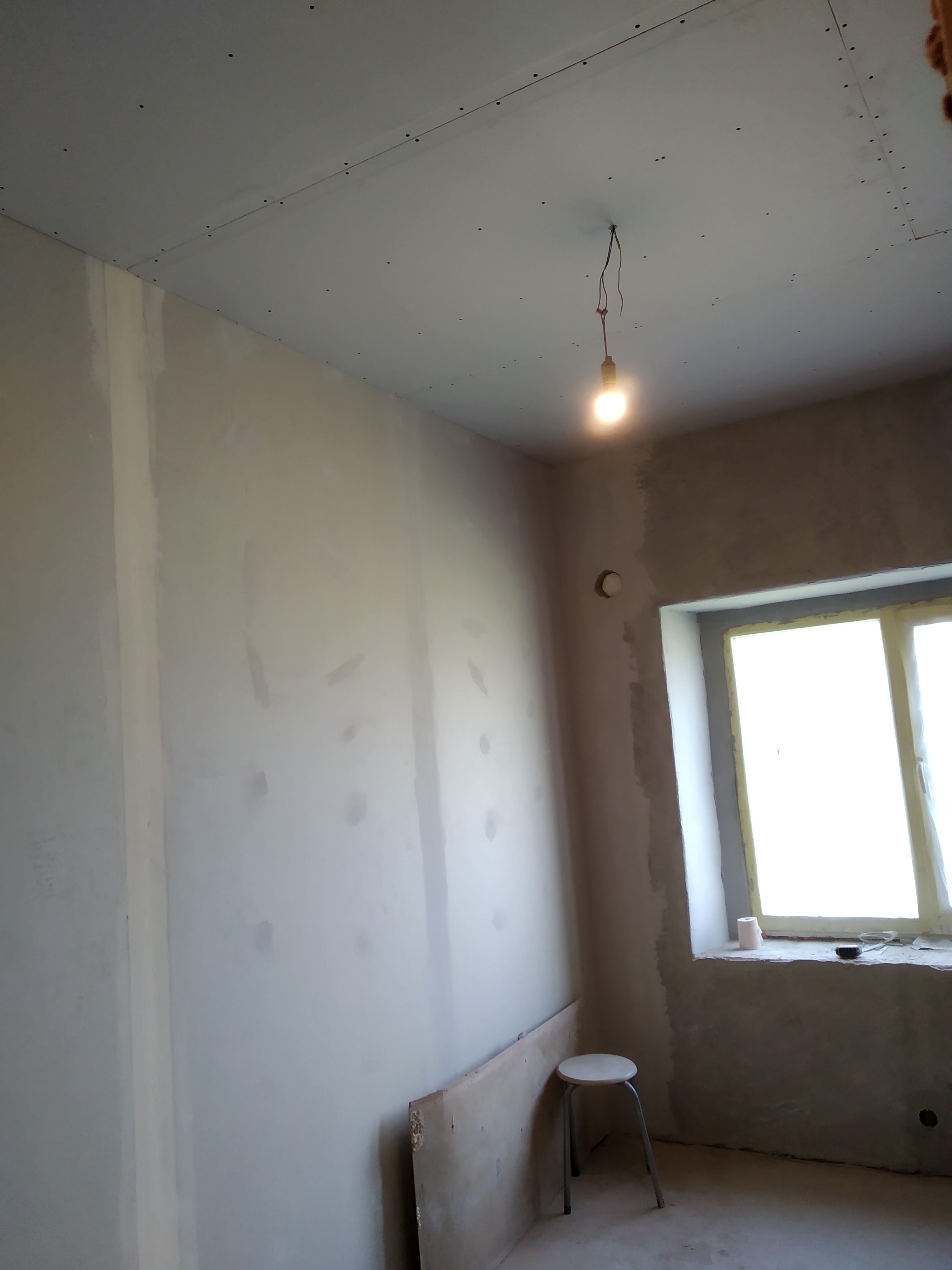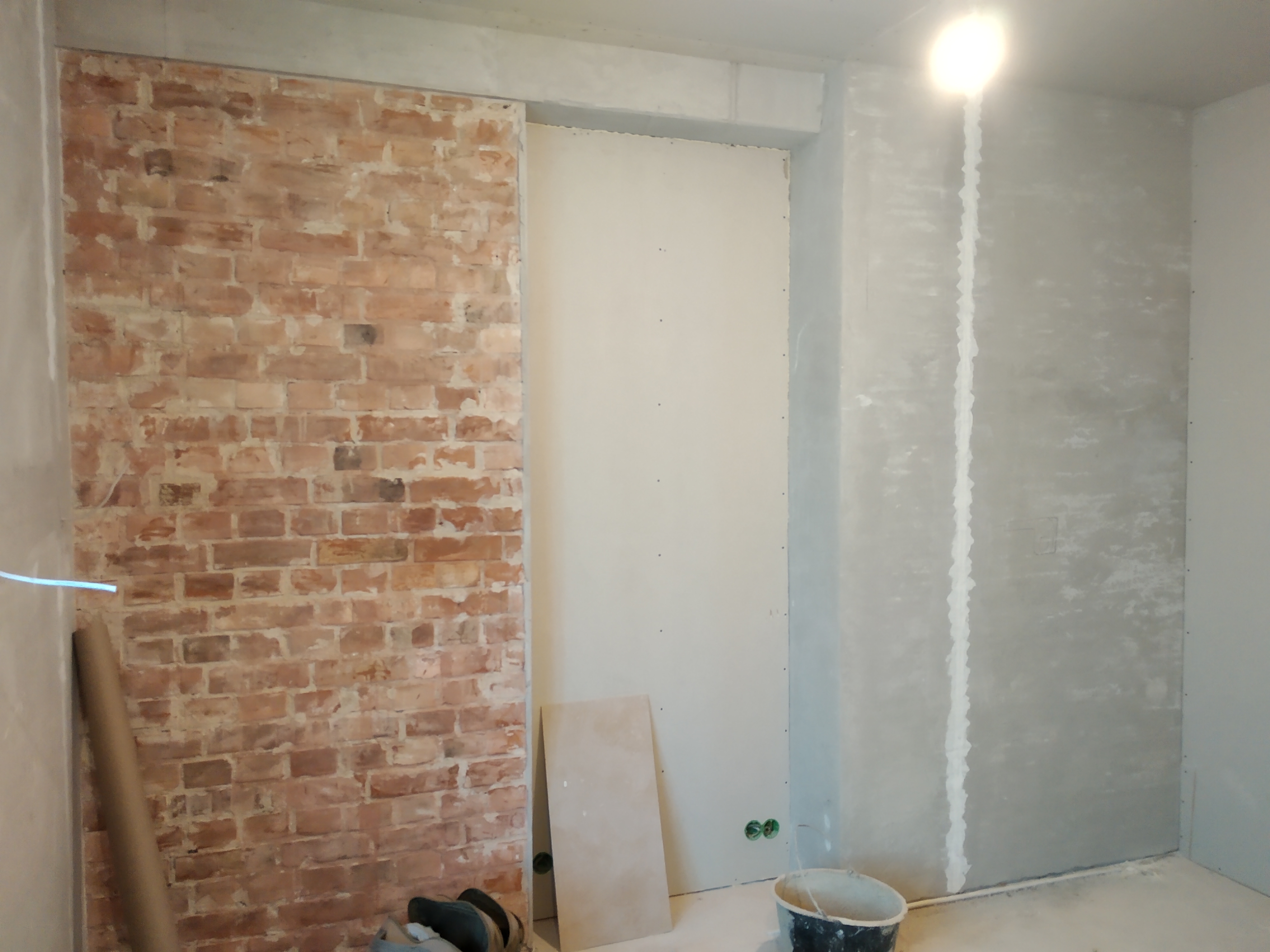3 toalises korteris terve korteri maalritööd. Kipslae (62m2) ja seinte (krohvitud seina 102m2, kipsseina 100m2) pahteldamine ja värvimine 1x kruntvärvi ja 2x põhitooniga. Piltidel nähtavaid telliskiviseinu pole vaja töödelda (on juba lakitud). Osaliselt on pahteldus juba tehtud ja ka aknapõsed on värvimiseks valmis.