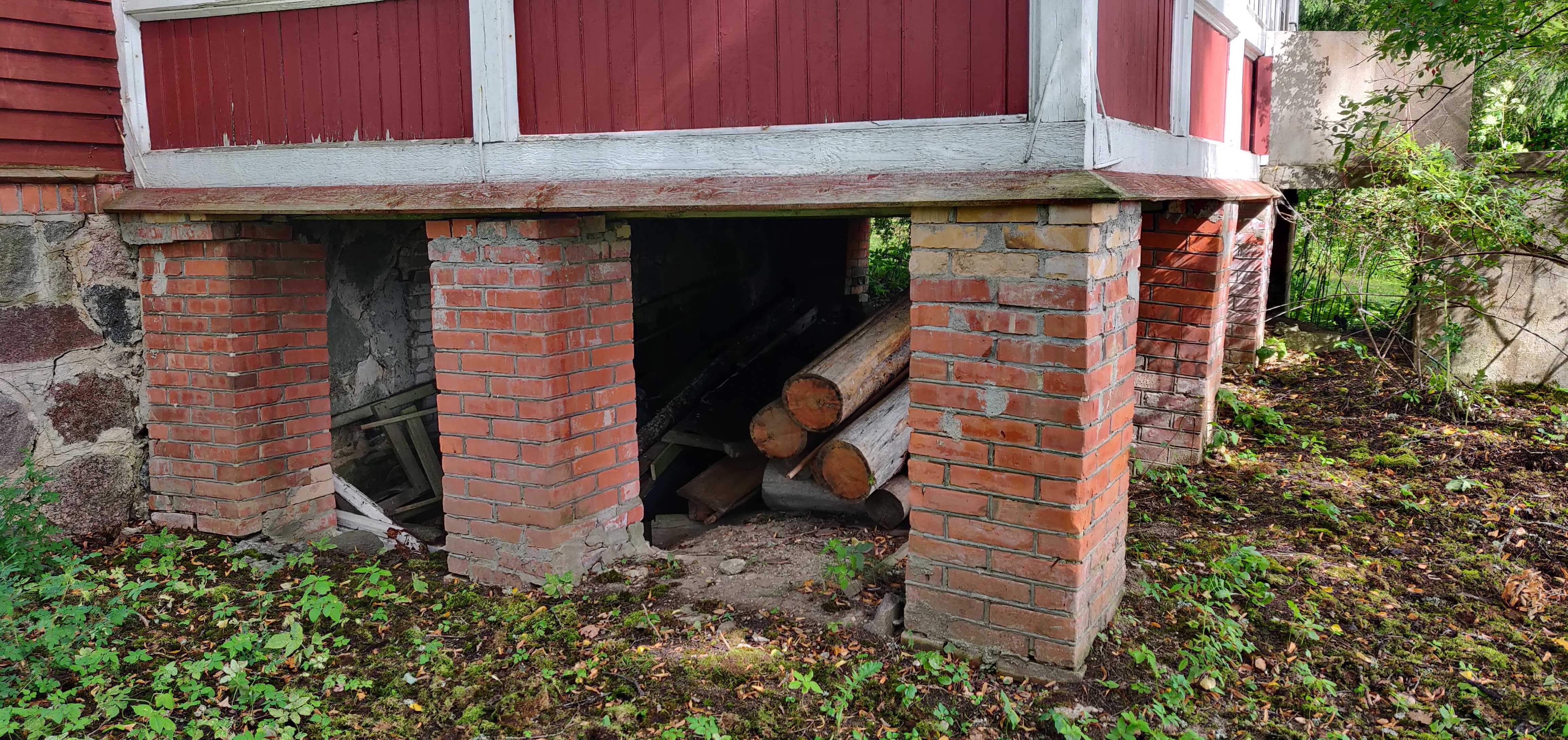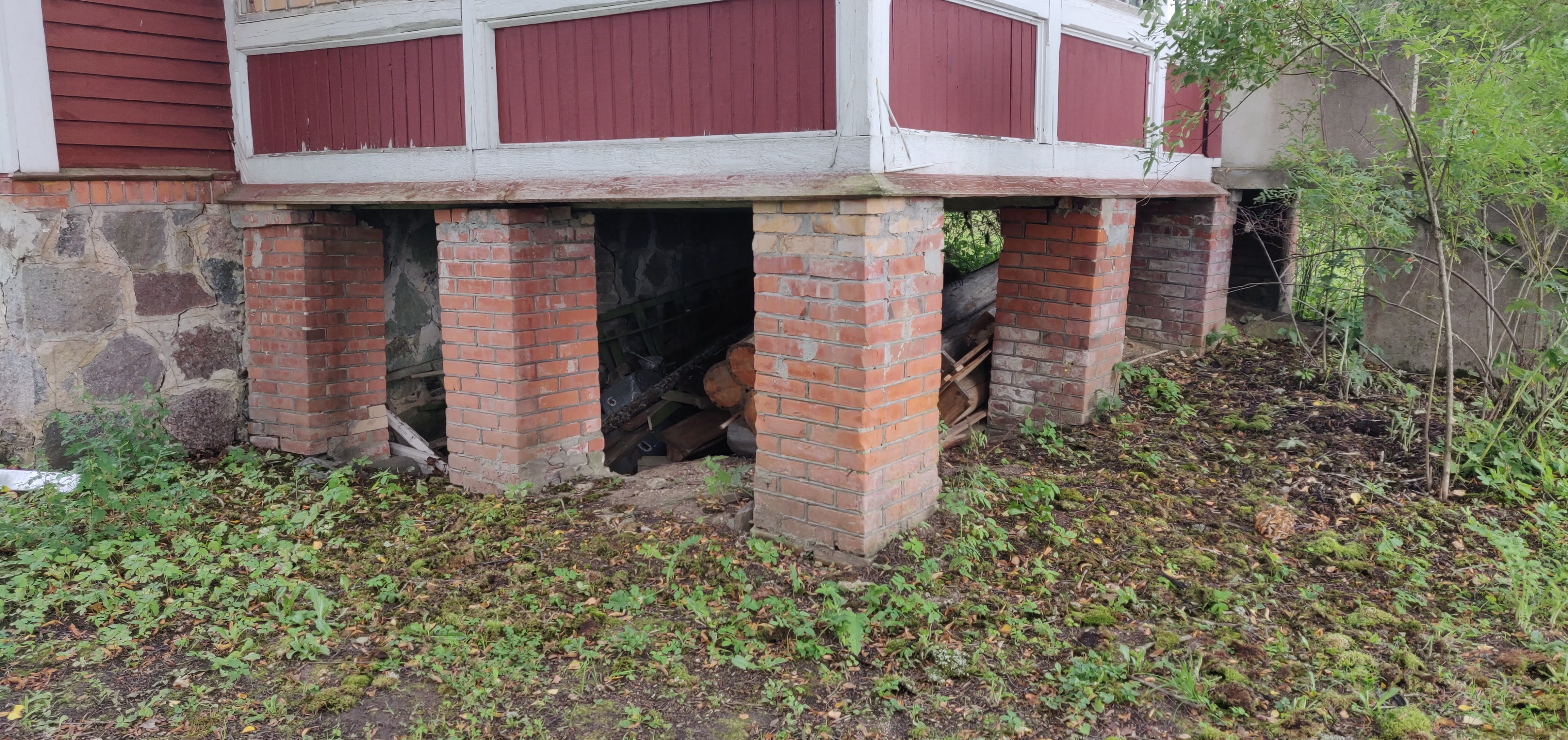 Veranda asetseb 8 posti peal, millest osad on äravajunud ja katkised. Tarvis oleks verandaalune lahti kaevata, et seal saaks püsti käia, kuna sealt alt läheb uks täiskeldrisse. Lisaks on postide vajumise tõttu ka veranda pisut vajunud. Vaja on verandat pisut kergitada algasendisse, vajadusel teha uus vundament postidele ja laduda uued tellistest postid. Postide ligikaudne laius 52 cm.