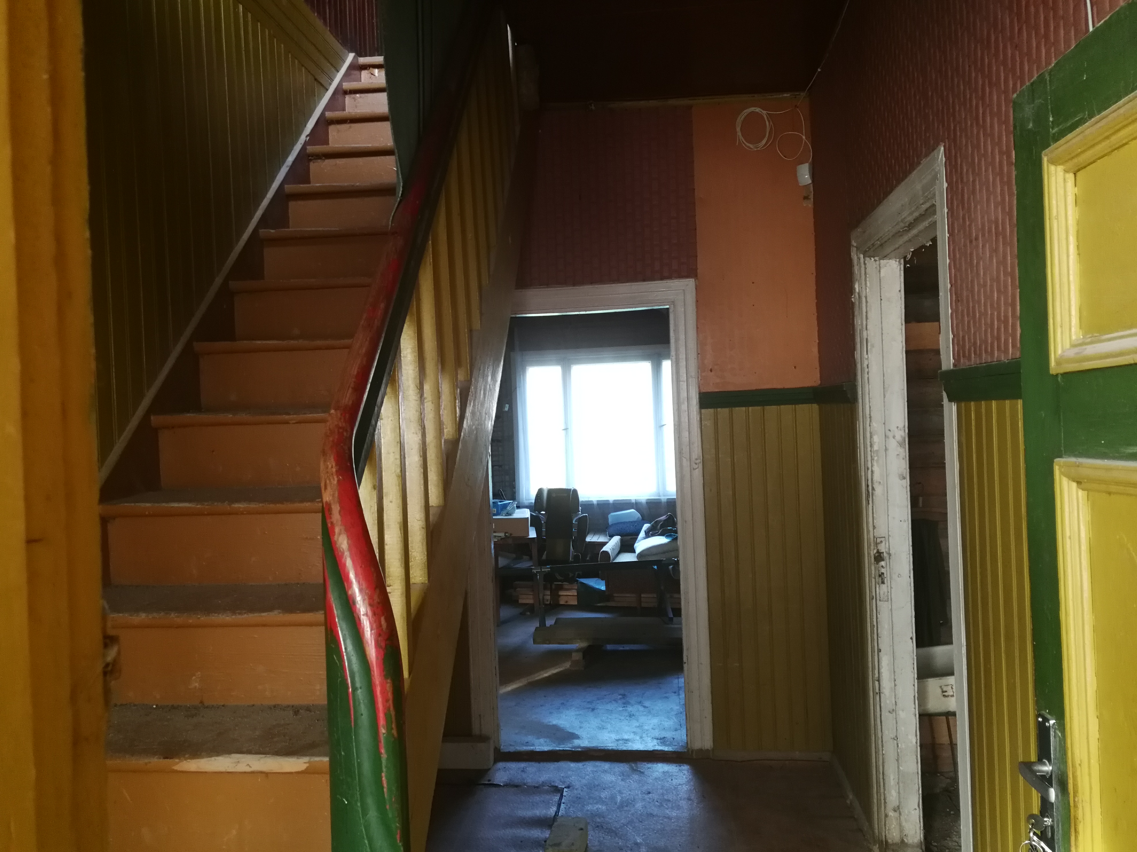 17. Trepp: Sisetrepp puidust 183x242mm 18 astmega ja turvapiire 1m kõrgete ja 0,3m sammuga, vana trepi lammutamine.
