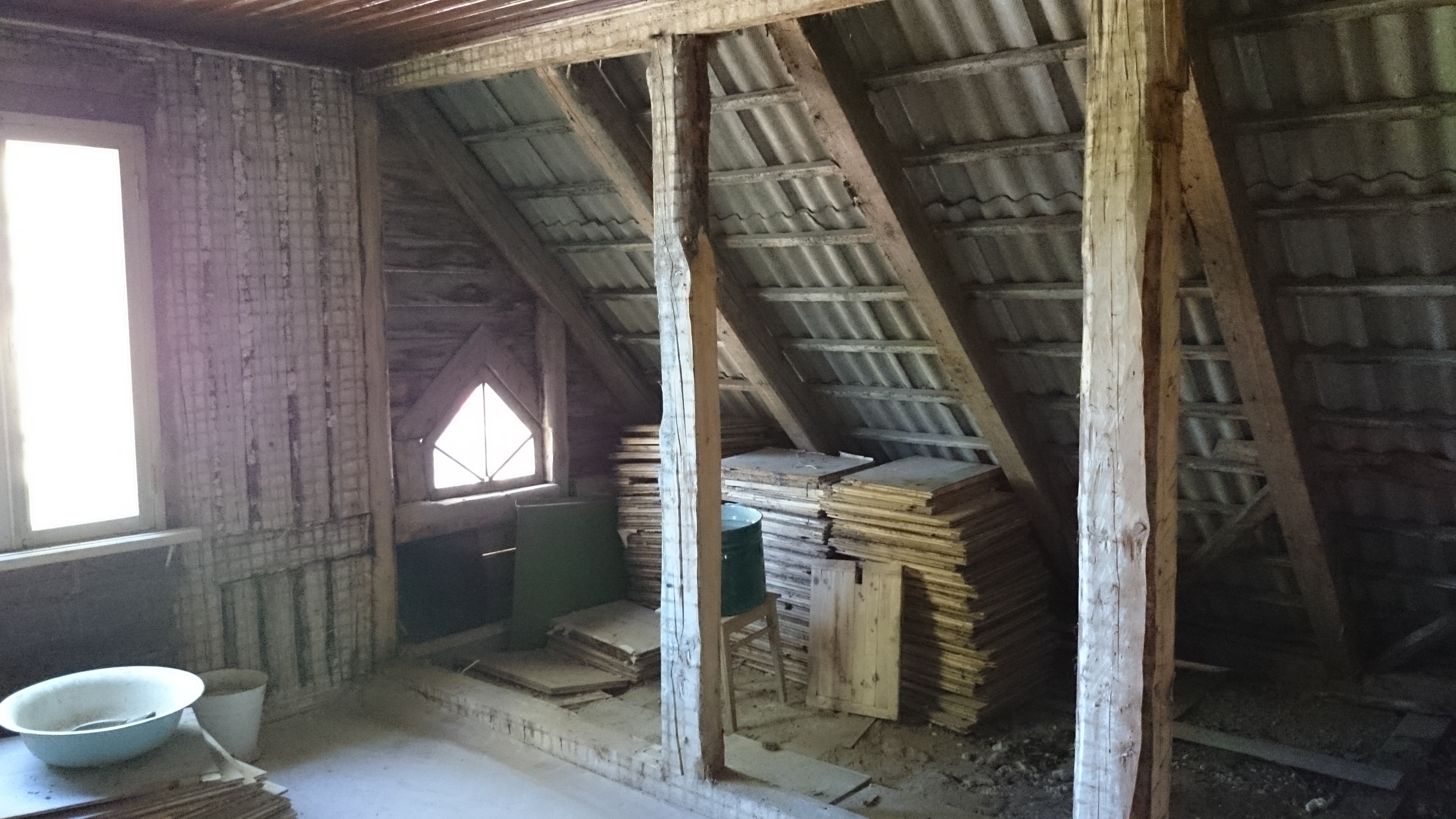4. Katusetööd koos tuulekoja katusega 200 m2: Eterniidi eemaldamine ja utiliseerimine, vintskapi lammutamine, alusroovi eemaldamine, tuulekastide lammutamine. Hingava katuse aluskatte paigaldus ja liitekohtade kokku liimimine koos distantsliistude paigaldusega. Alusroovi paigaldamine koos sirgeks kiilutamisega. Katusepleki ja lisaplekkide paigaldamine. Sisaldab tuulekoja katuse aluskarkassi ehk sarikaid, distantsliiste, alusroovi, kinnitusvahendeid. 2 katuseakent 800x1200mm. Katuseredel koos katusesillaga, pööningult luuki ei tule.