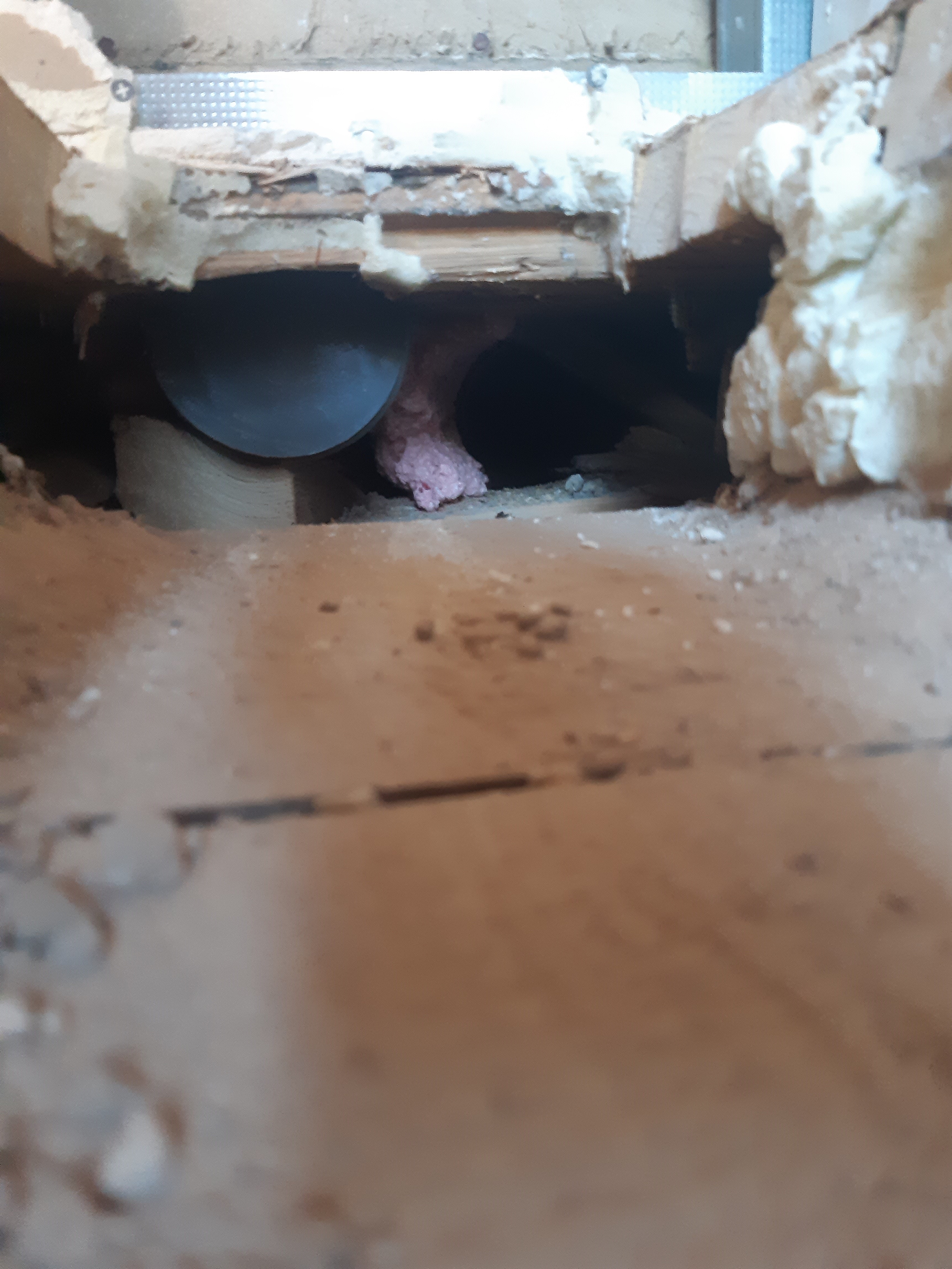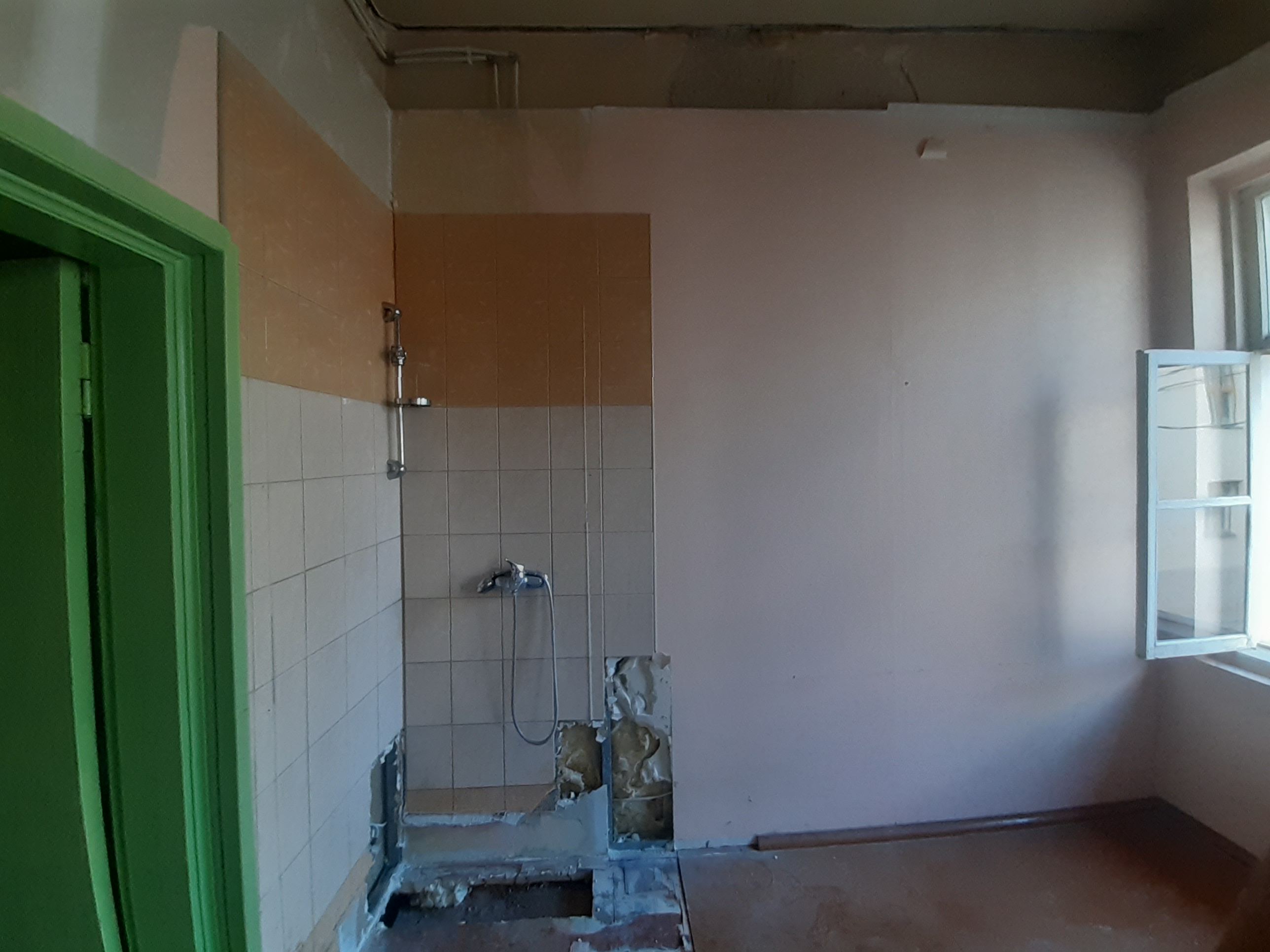 Panen kaasa mõned fotod. Fotodel on objekt veel sellises faasis kus soojustatud siseseinad on eemaldamata, kuid enam-vähem on näha kust jooksevad vana duši veetorud. Samuti koht kust algab väljavool. Enne töid saab olema põrand avatud kogu duširuumi ulatuses.