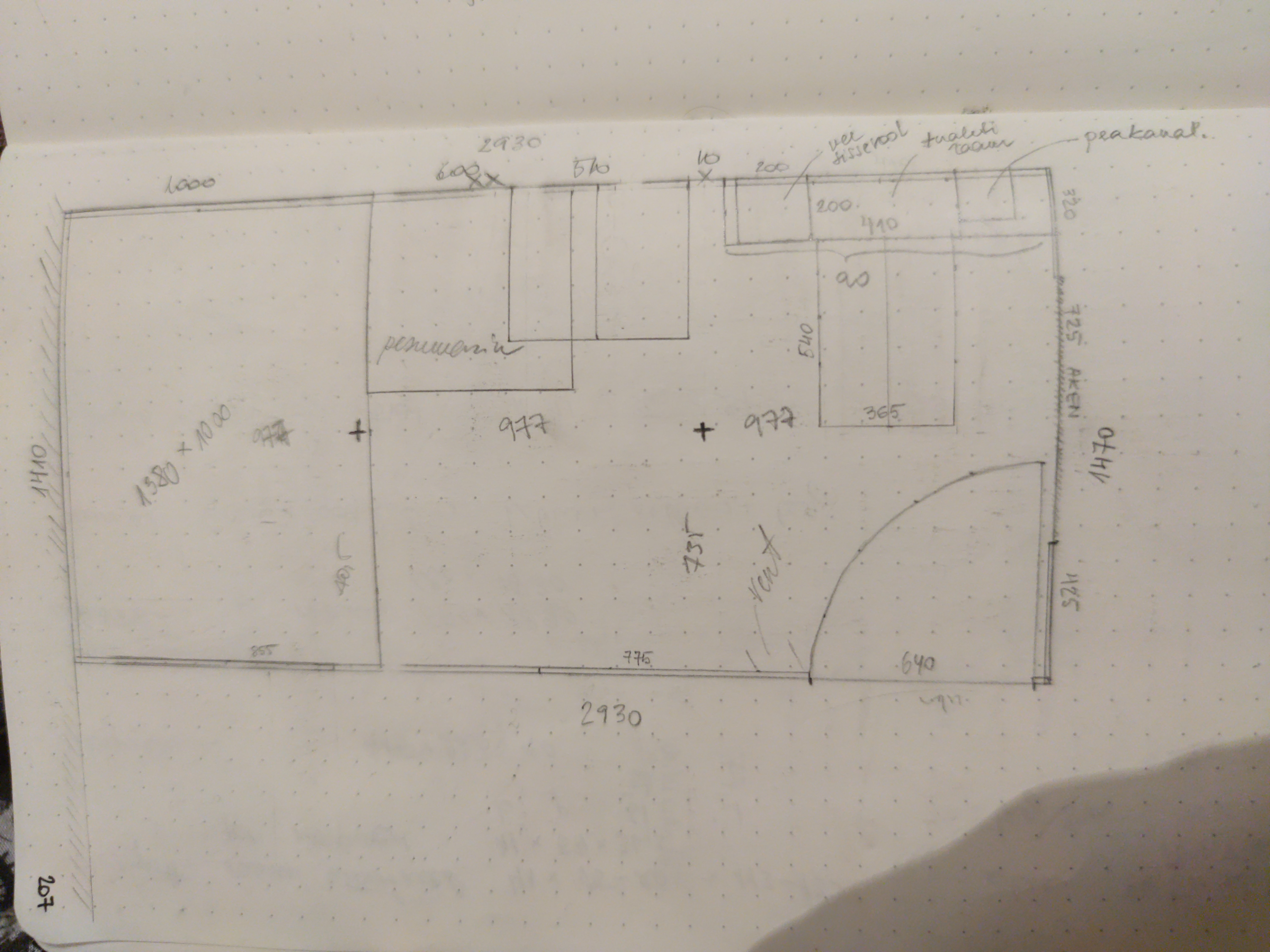 Vaja paigaldada teine ventilaator sama lüliti alla nagu vannitoa oma, kuna lõõr on köögi ventilatsiooni avaga ühenduses ning ajab sisse. Lisaks ühe juhtme peegli kohale mis oleks ühenduses vannitoa lae valgusega. Lisaks pistik pesumasinale. El. põrandakütte paigaldus.