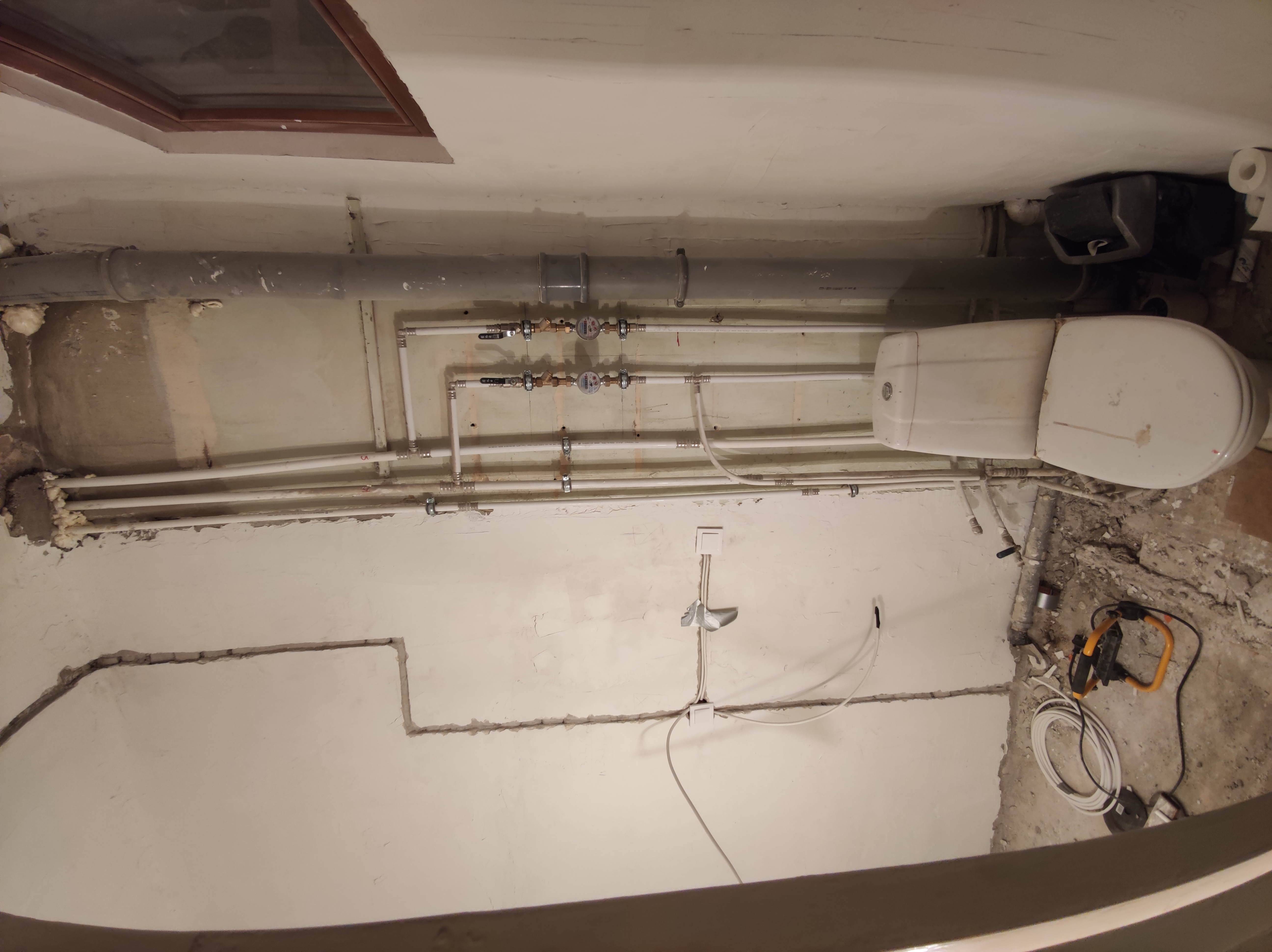 Vannitoa remont 50date maja korteris. Maha võetud WC ja vannitoa vaheline sein ning tehtud krohvimine ja pahteldamine.