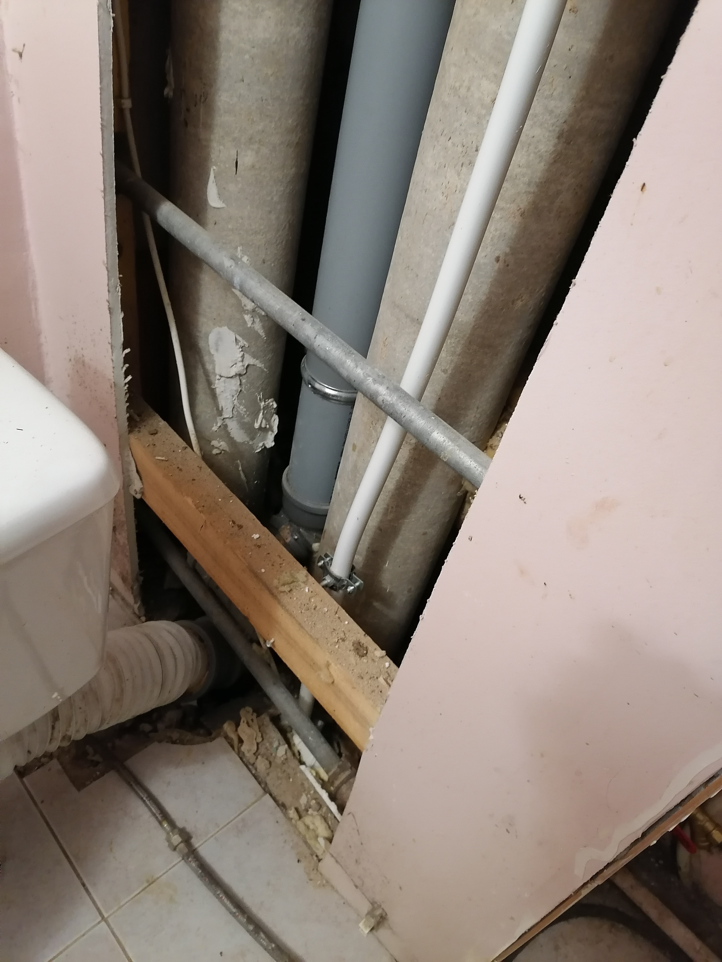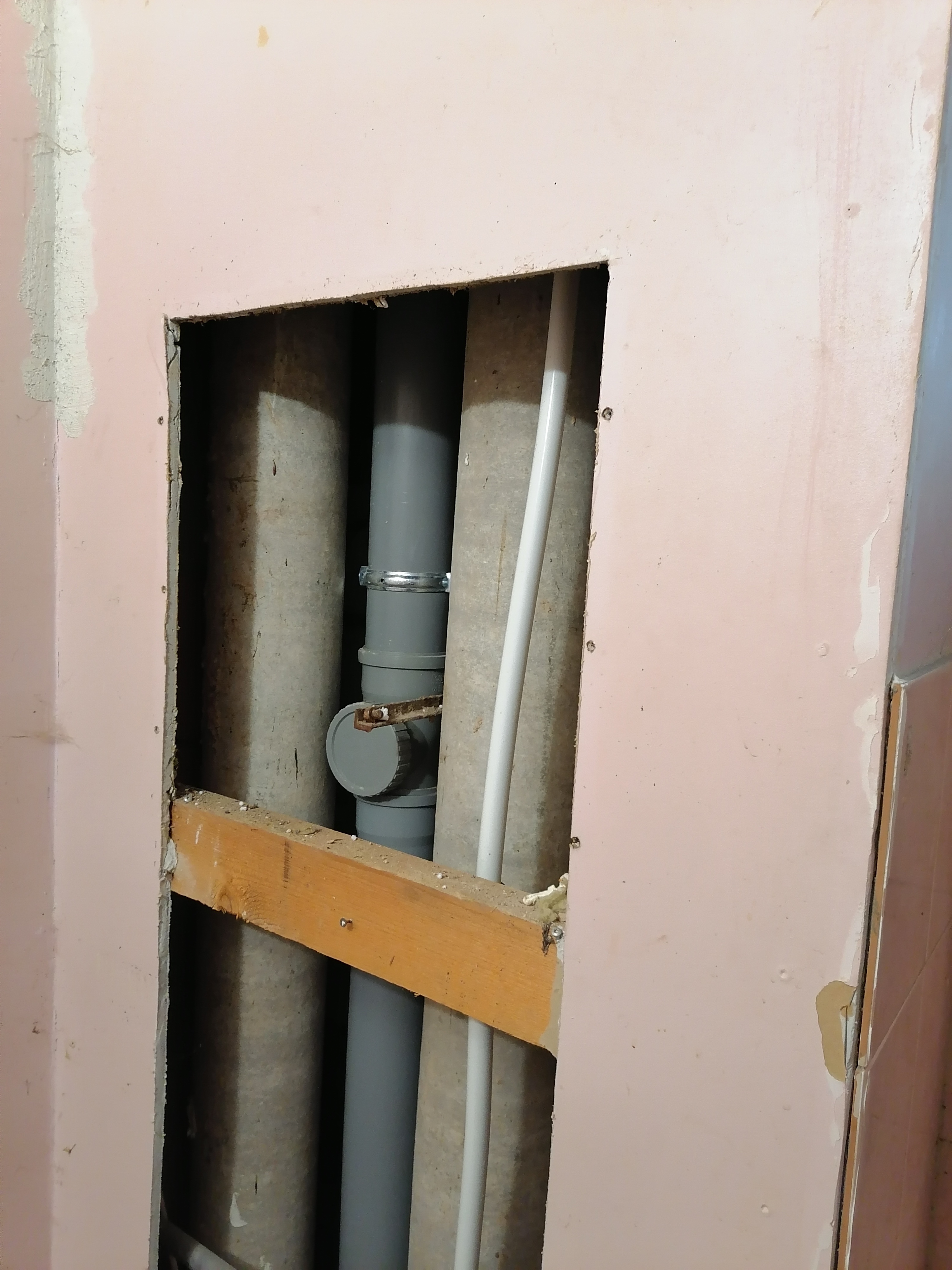 Eemaldada vana kips, asendada uuega. Pahteldada ja värvida. Lisaks tuleb valada lahti piigatud toru ümber auk täis. Sooviks siis hinda koos materjaliga.