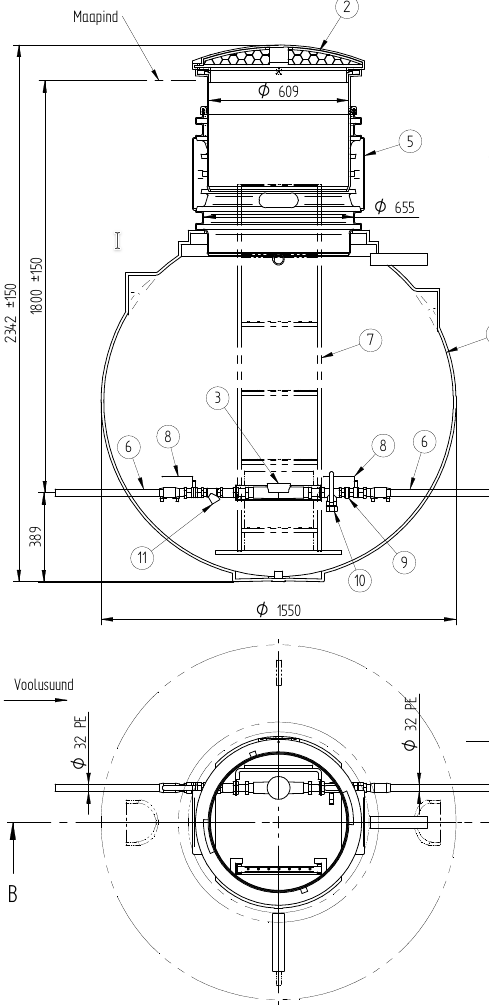 ~40 cm on mulla pinnast enamuses eemaldatud, edasi algab paekivi ja seda on vaja ~2 meetrit eemaldada (joonise järgi kaevu kogusügavus ~2.4 meetrit).