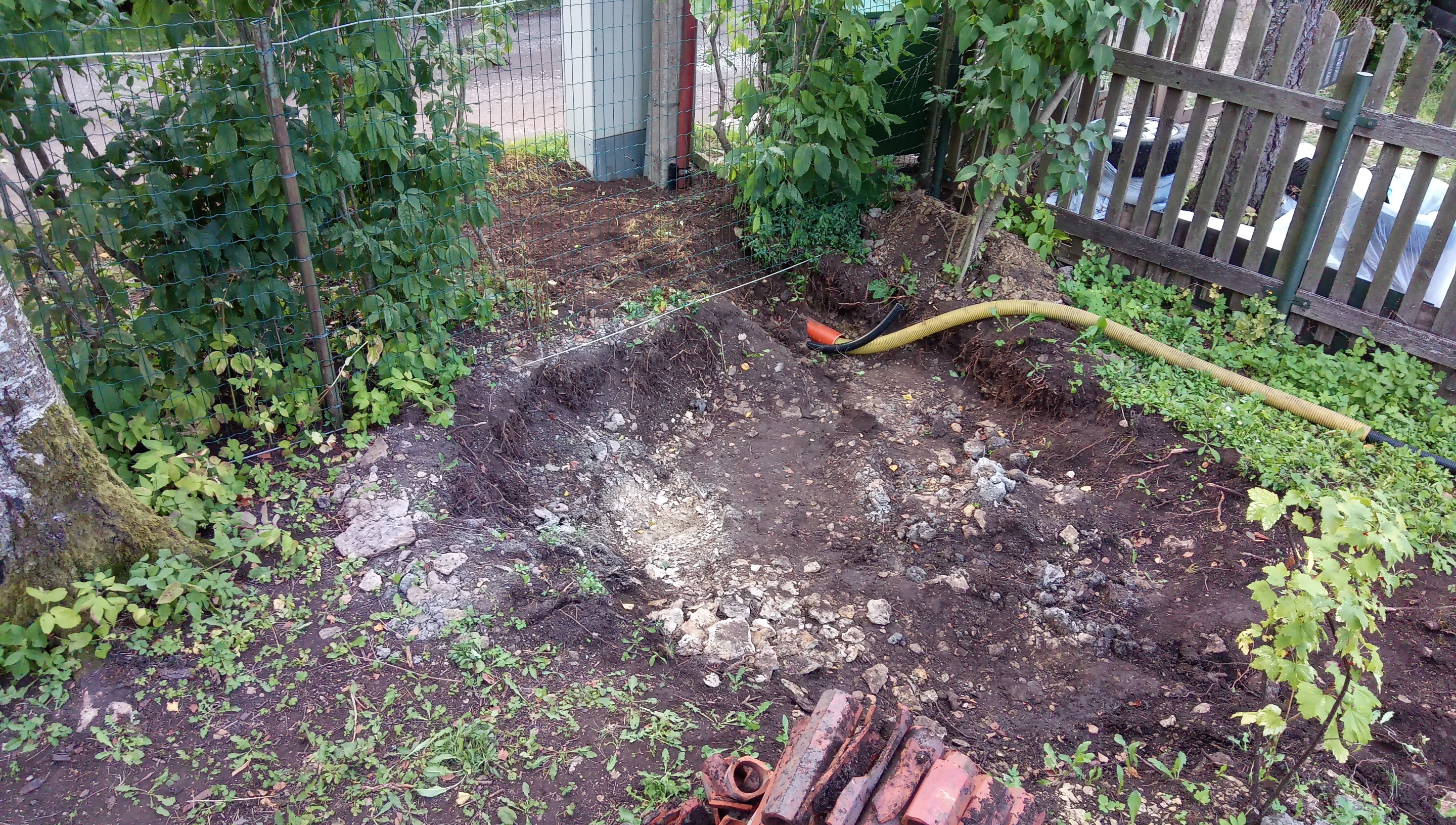 Lisaks kaevu augule on vaja mõlemalt poolt torude ligipääsuks 1x1 meeter lahti lõhkuda, seda pole päris 2.4 meetri sügavusele vaja, kuna toru ise on 1.8 meetri sügavusel, ehk 2 meetrit kokku on piisav.