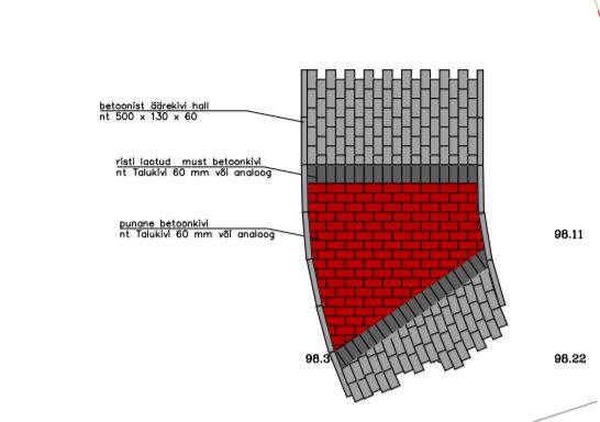 Vaja paigaldada nunnakivi 1000m2 ja kõnniteeäärekivi 600jm. Kõnnitee kulgeb looklevalt ja laius varieerub 1,5m kuni 10m.