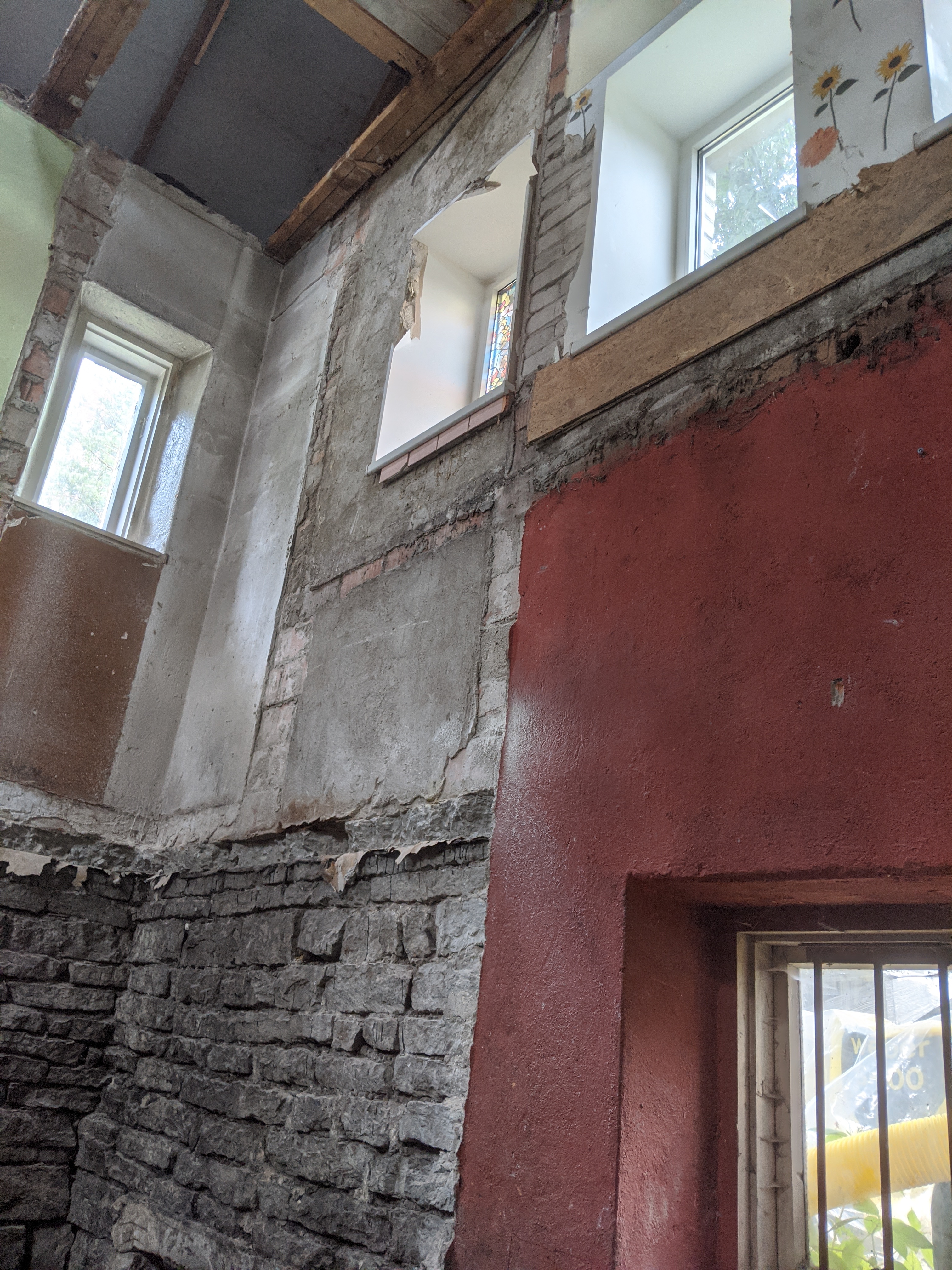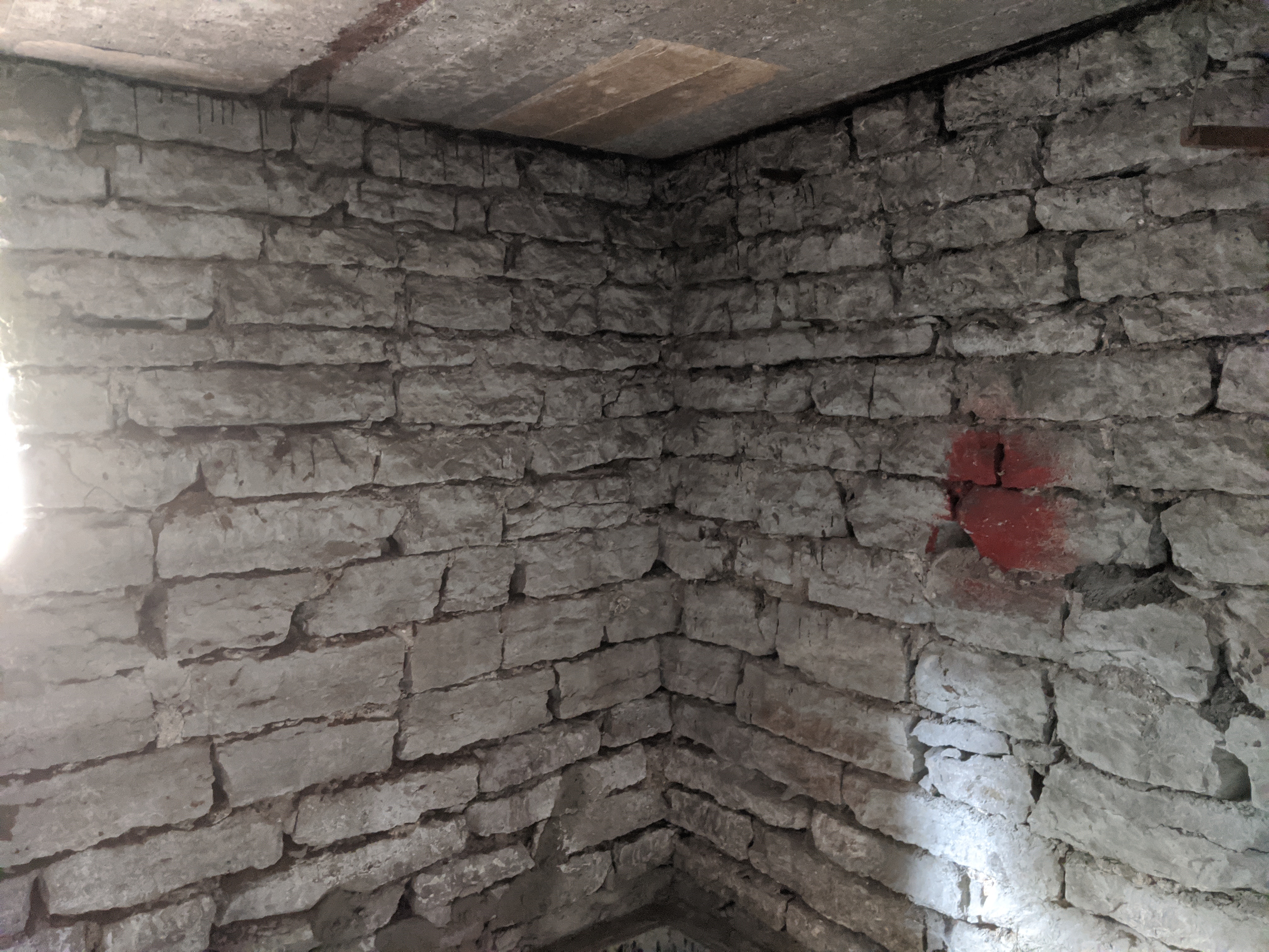 Puhastamist vajavad paekivi ja punase (Aseri) tellise seinad värvitud lubikrohvist.