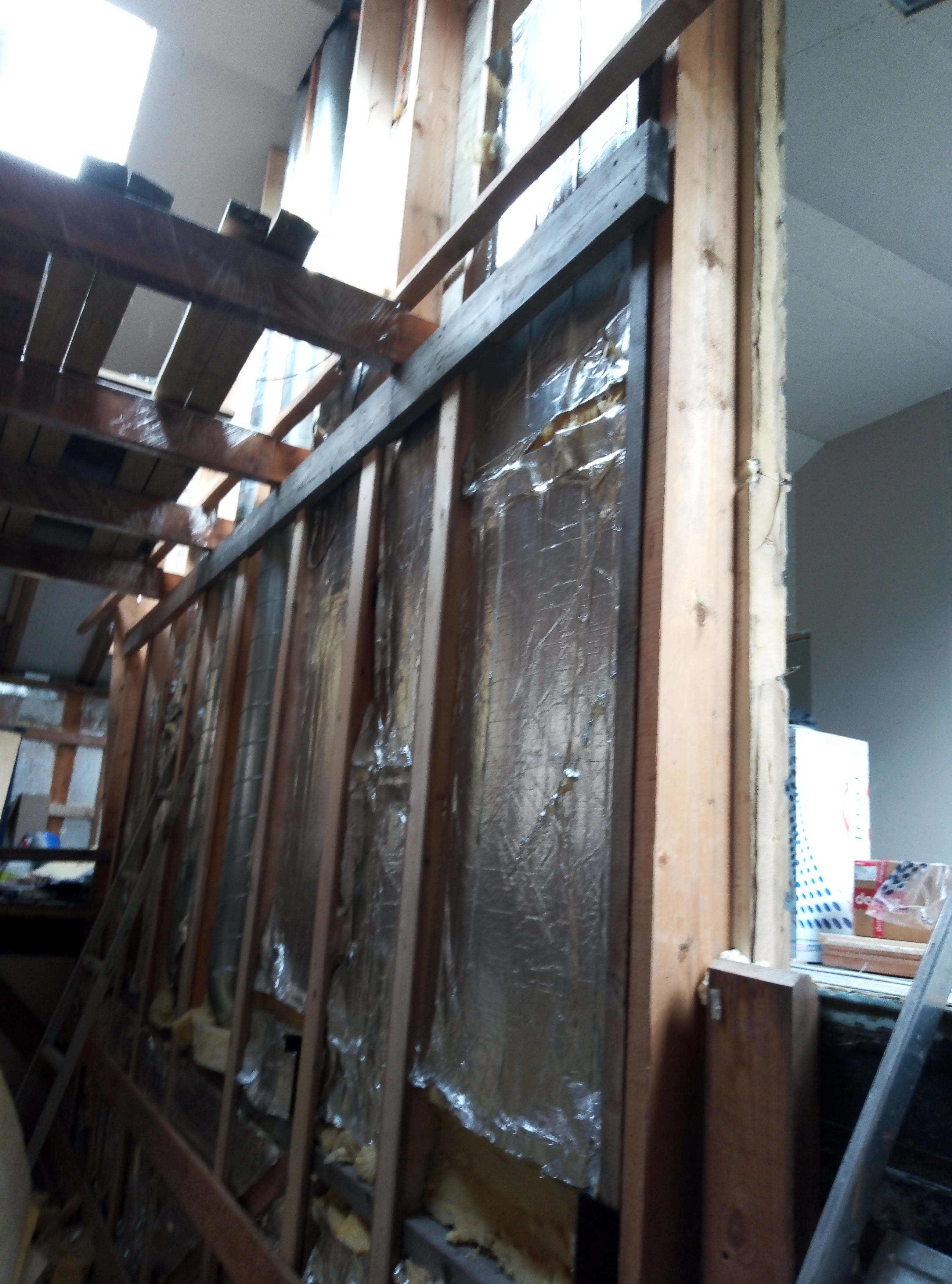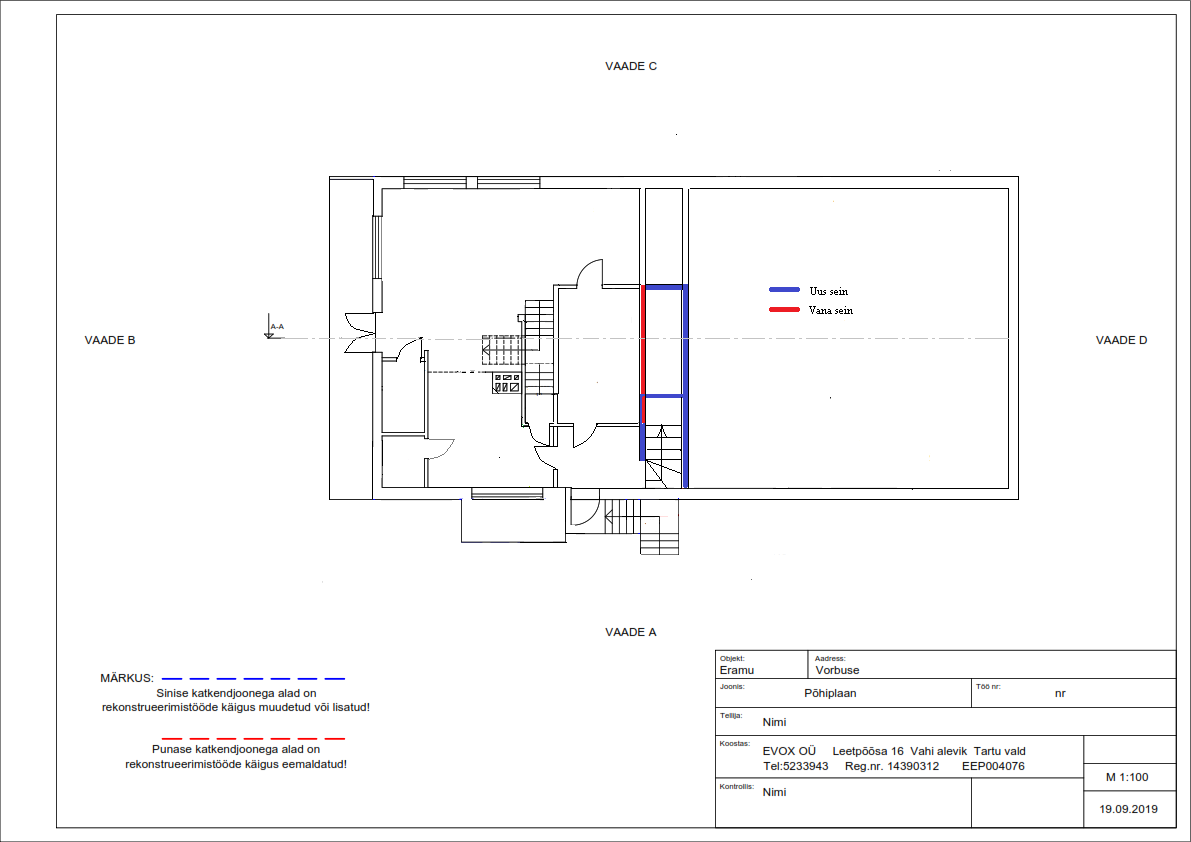 1. Juurdeehitatud garaazi ja põhimaja vahelise seina soojustamine (osaliselt), kipsplaatide paigaldamine ja pahteldamine (jooniselmärgitud sinise värviga). Seina pikkus ca 8m, kõrgus 3-5m.