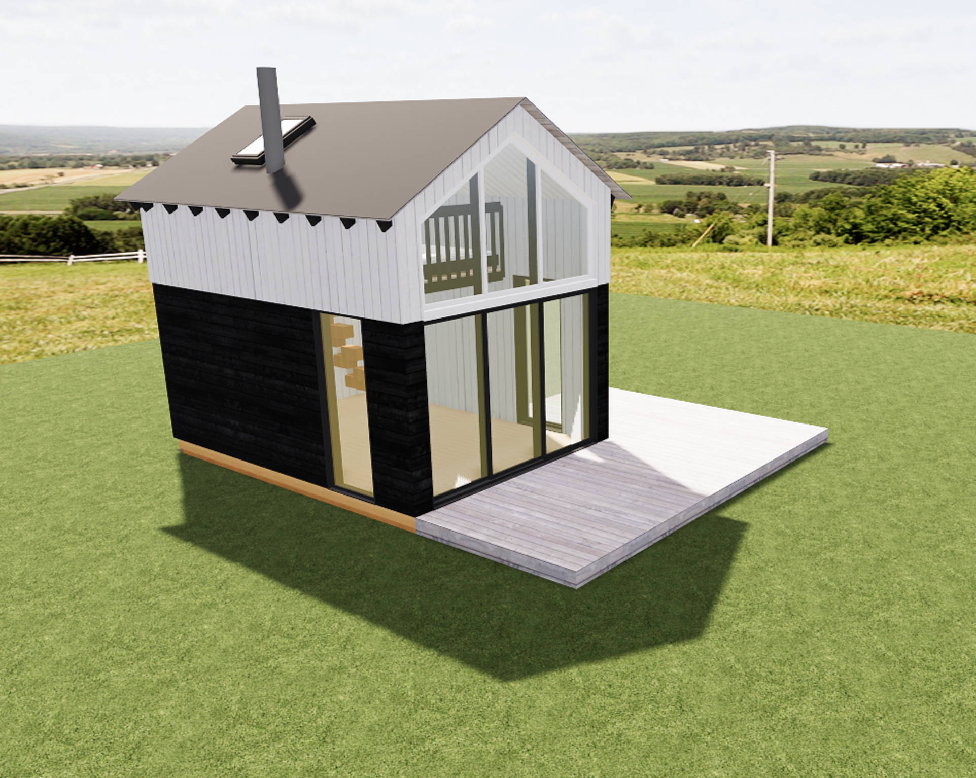 Teisel korrusel - Viilkatuse joonega ühtiv aken terve seina ulatuses. 0.5x0.5m aken maja tagumises otsas trepi kohal. 1.2mx1.0m aken teisel korrusel maja tagumises otsas. Velux kastuseaknad (2tk)