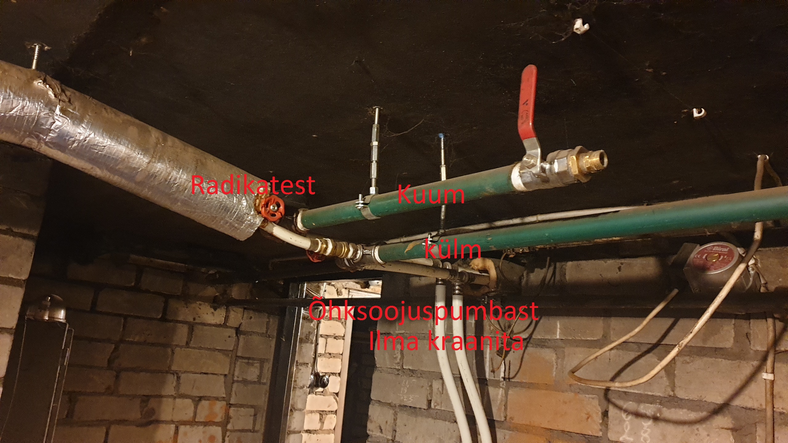 Olemas on sõlm millest saab juhtida vett kas õhksoojuspumpa või katla süsteemi. Pildil.