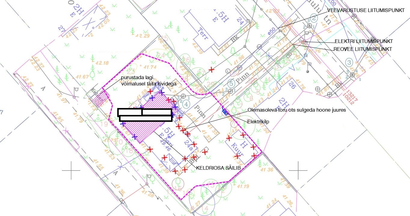 Kinnistul asub 2m sügava ca 4x4 kelder mille lagi (terastalad+betoon) tuleks purustada. Keldrit saab täita hoone lammutusest jäävate silikaat- ja keraamiliste telliste ja betoonitükkidegaga.