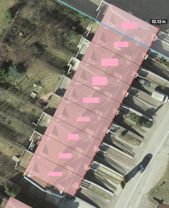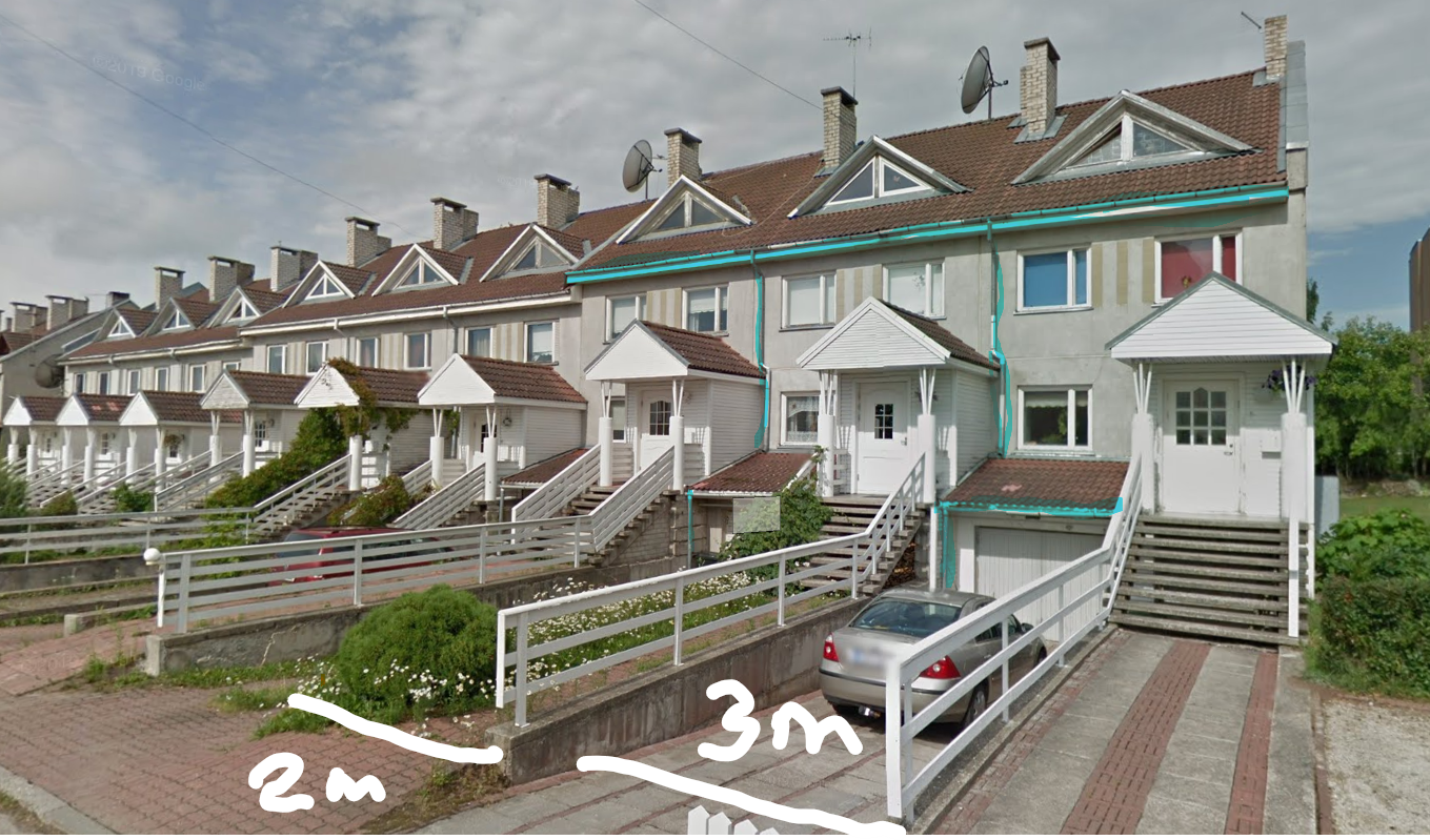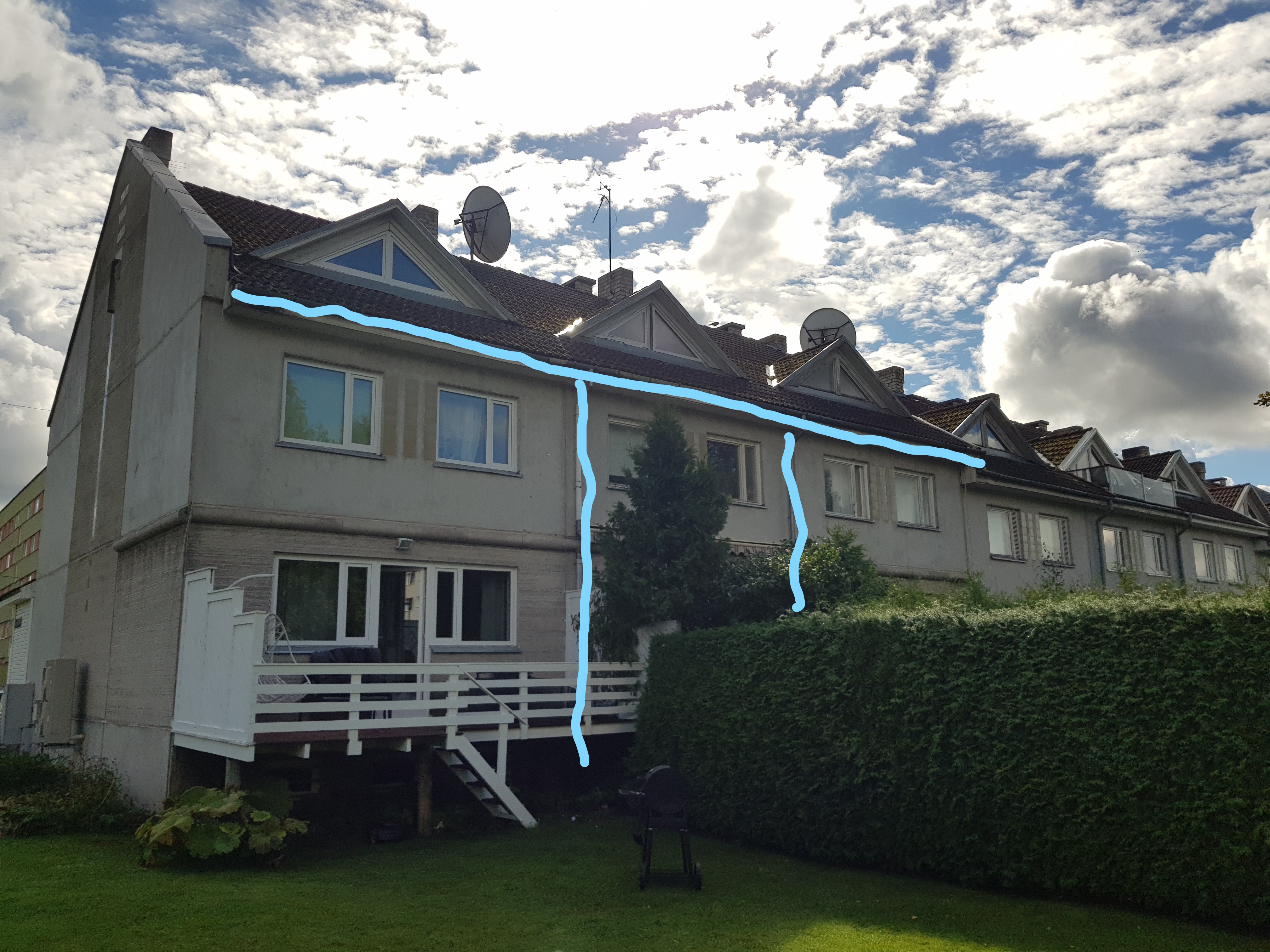 Katuseräästa pikkus 17.5m (kolme sektsiooni ulatuses) või 52m (kogu maja ulatuses), laius ca 50cm, töid on vaja nii maja ees kui taga.