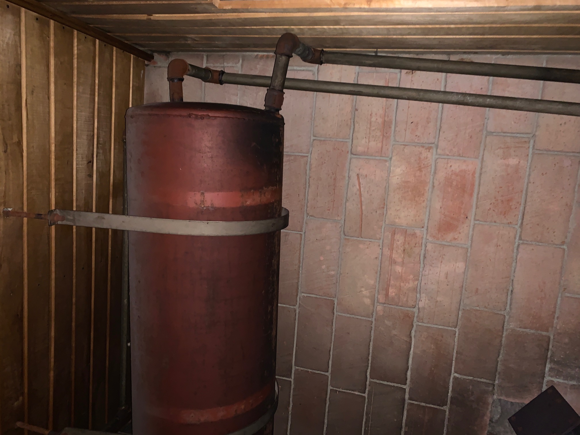 Väike saun, kerise kohal veepaak. Ühest otsast jookseb sisse ja välja vesi ca ½ tolliste torudega. Teises otsas on kinnine silmus mis läheb läbi kerise, tehtud ca 1 tollisest torust. Viimane on tugevasti roostetanud, eriti ühendusmuhvide juurest.