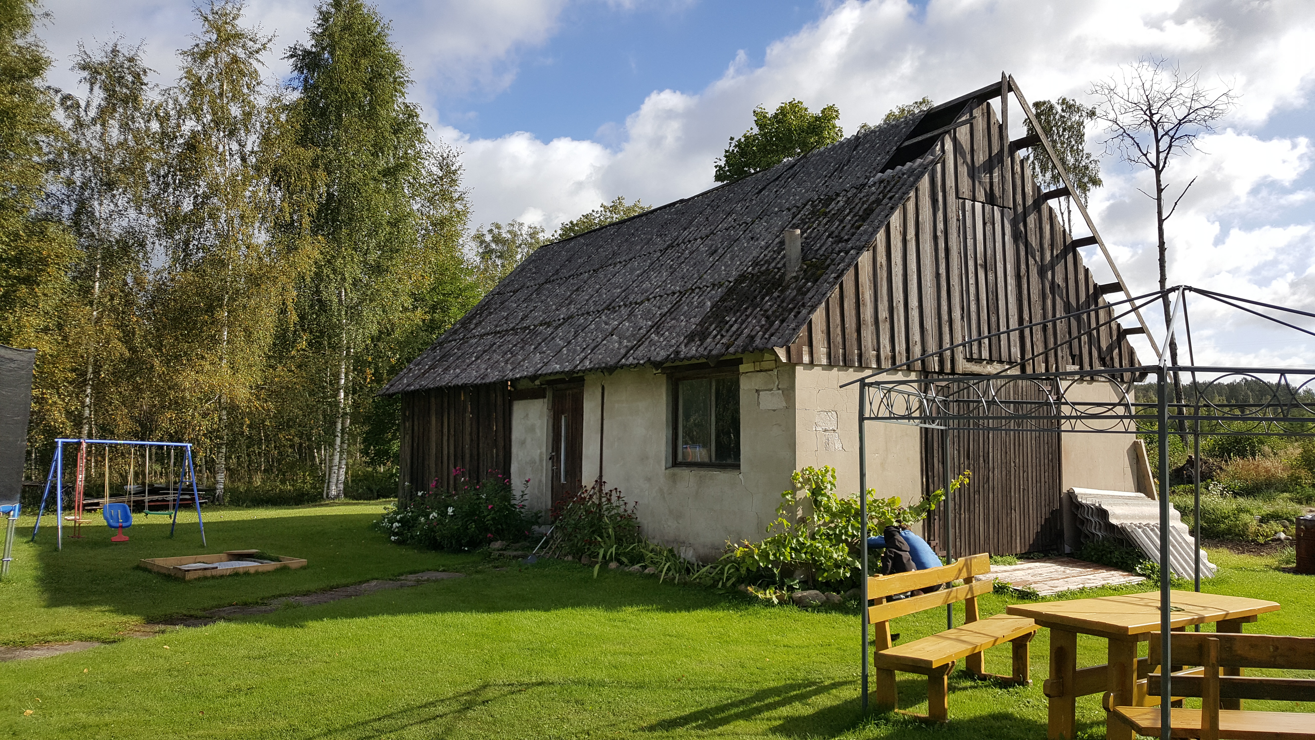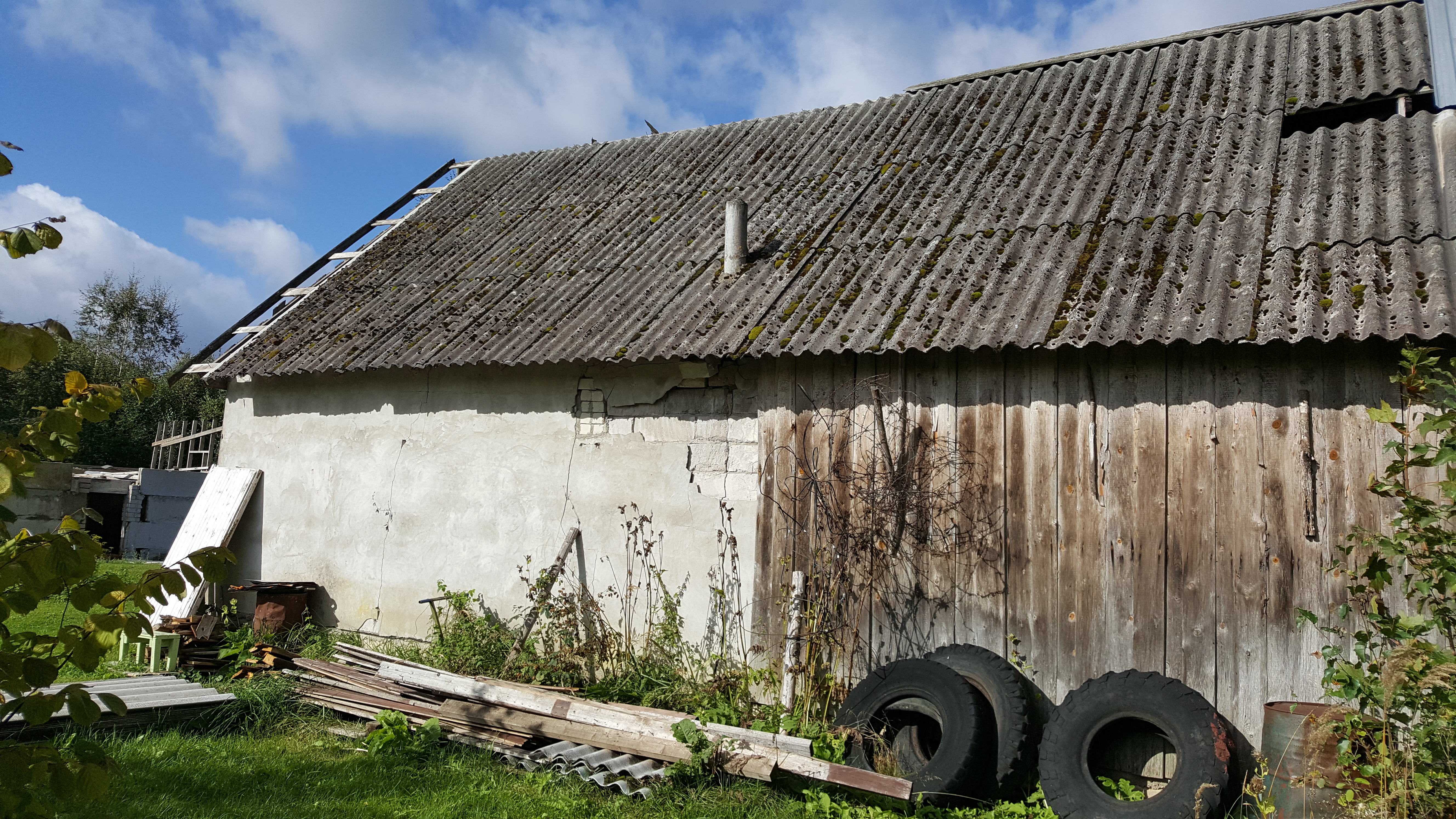 Osaliselt puit ja osaliselt tuhaplokist hoone lammutus. Vundament võib jääda alles ja ka puidu võib jätta objektile,aga võib ka ära viia .