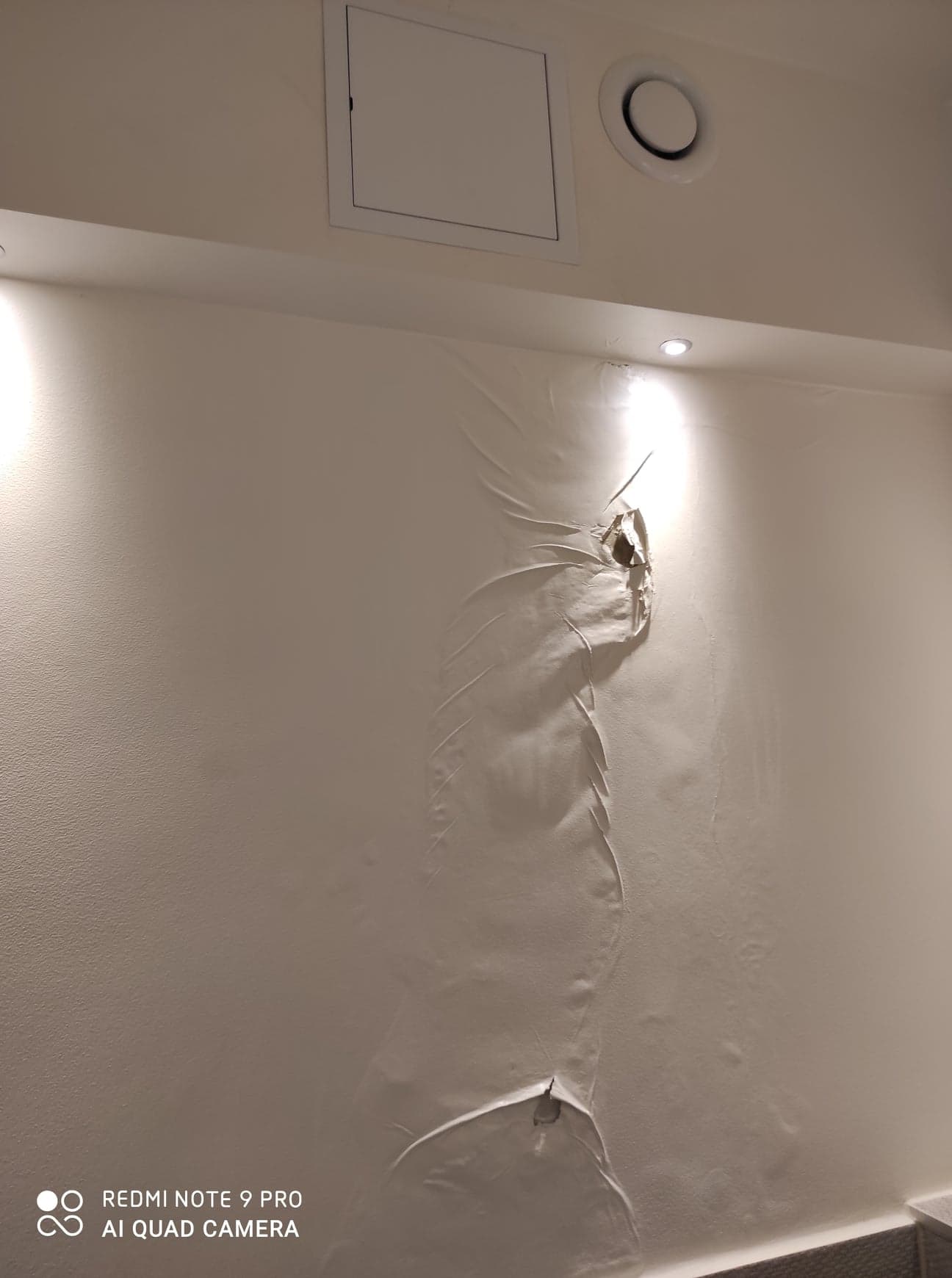 1. Konditsioneeri veelekke kahjustuse parandus WC's. Vaja oleks vana värv eemaldada ning sein uuesti üle värvida.