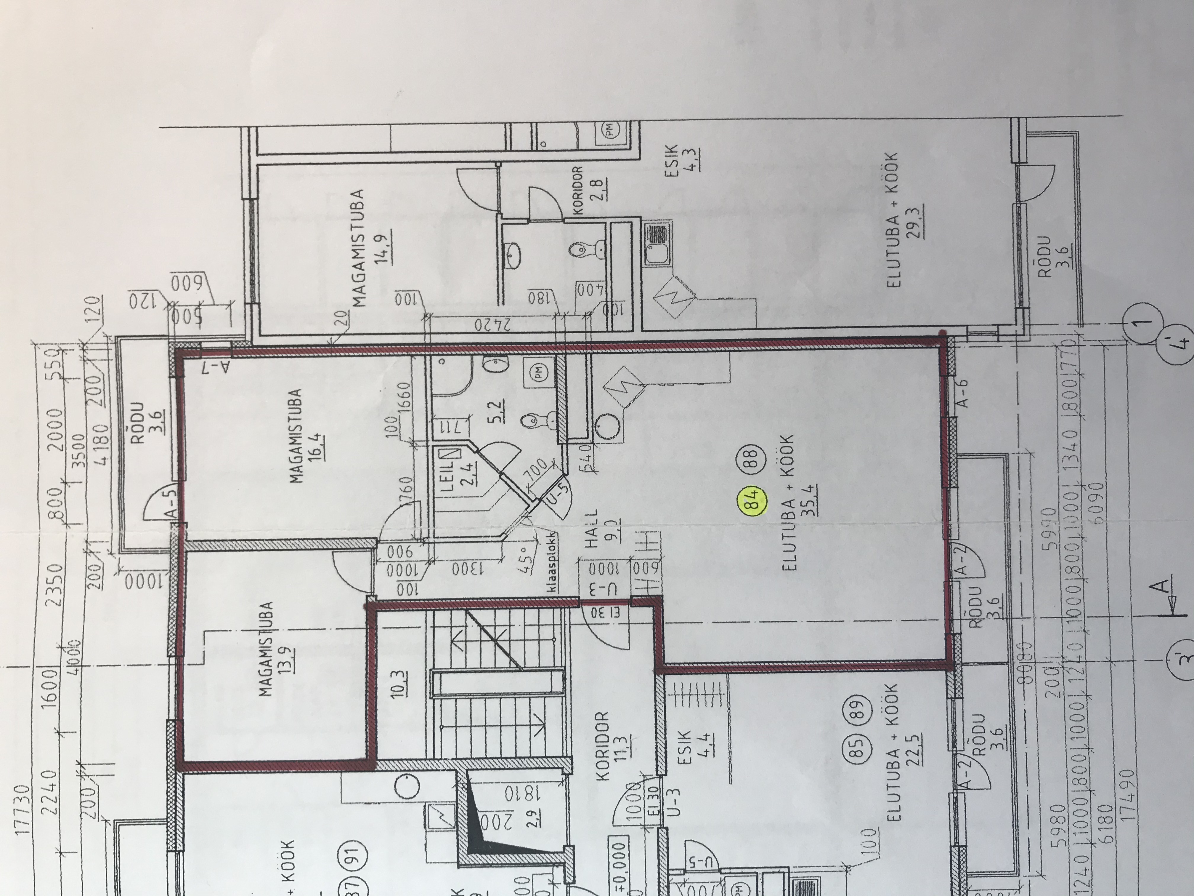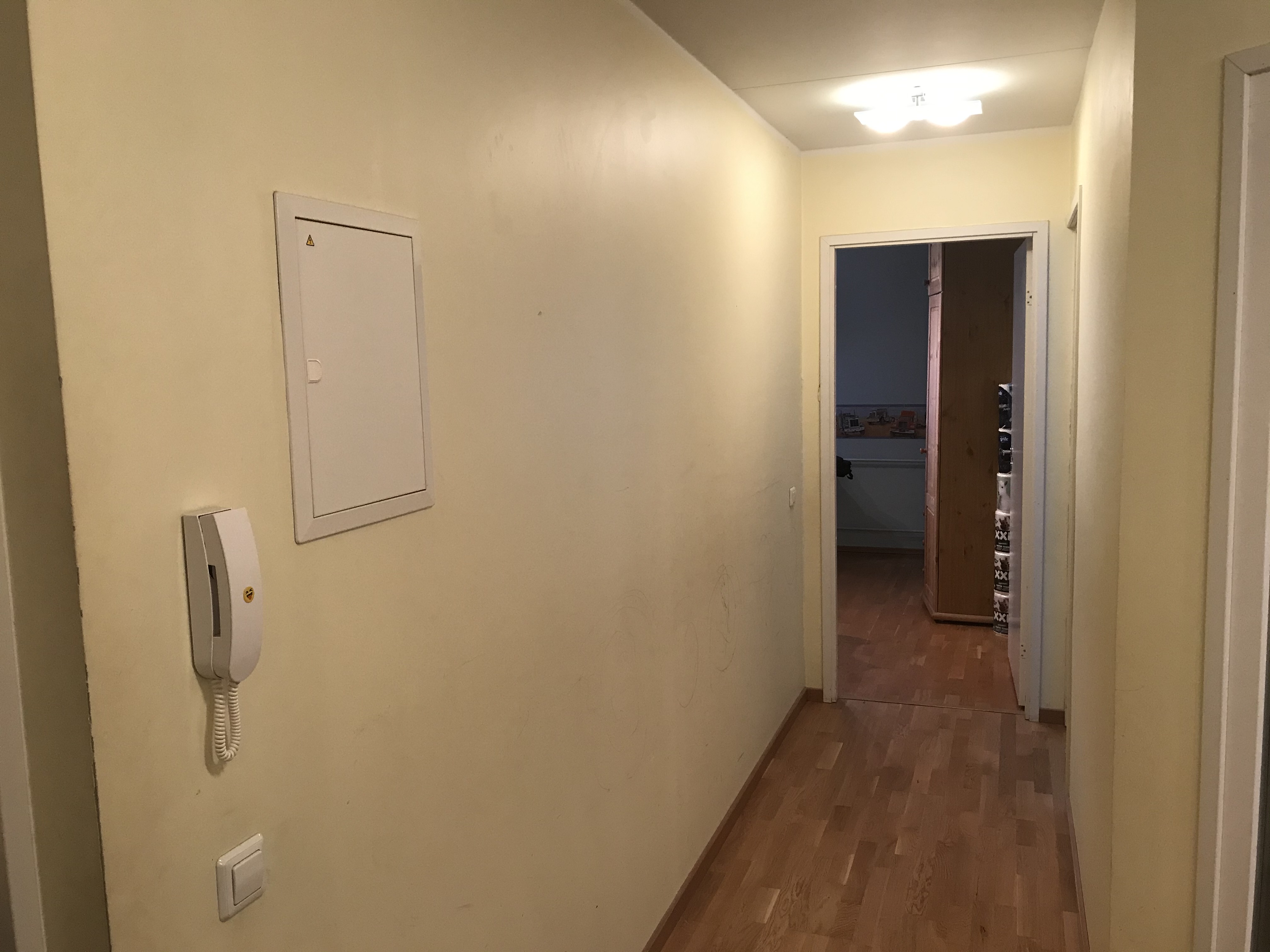 - Elutuba/köök ning koridor (vaata skeemi) kuni magamistubadeni. 35,4 +6 m2 seinte, lae ja aknapalede värvimine (2 akent). Töö käigus on vaja teha minimaalselt pahteldus- ning silikoni parandusi.