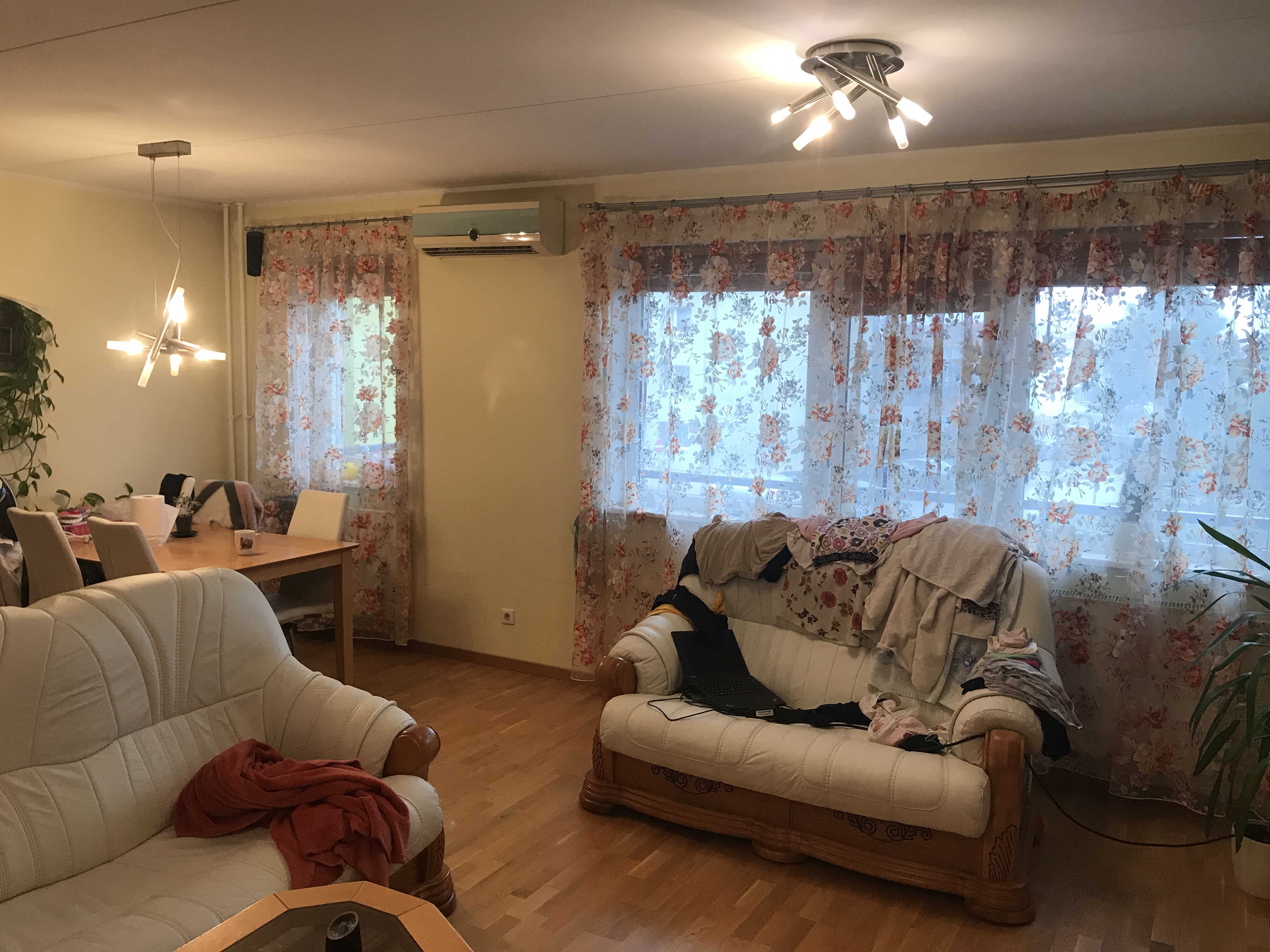 Töö käigus tuleb ettejääv mööbel nihutada ja katta. Ehituspraht tuleb utiliseerida. Paigaldatavad elektri, televisiooni ja interneti kaablid asuksid põranda ja ukseliistude taga ning pistikud oleksid krohvipealsed. Ühel aknapalel on veekahjustus, teised korras.
