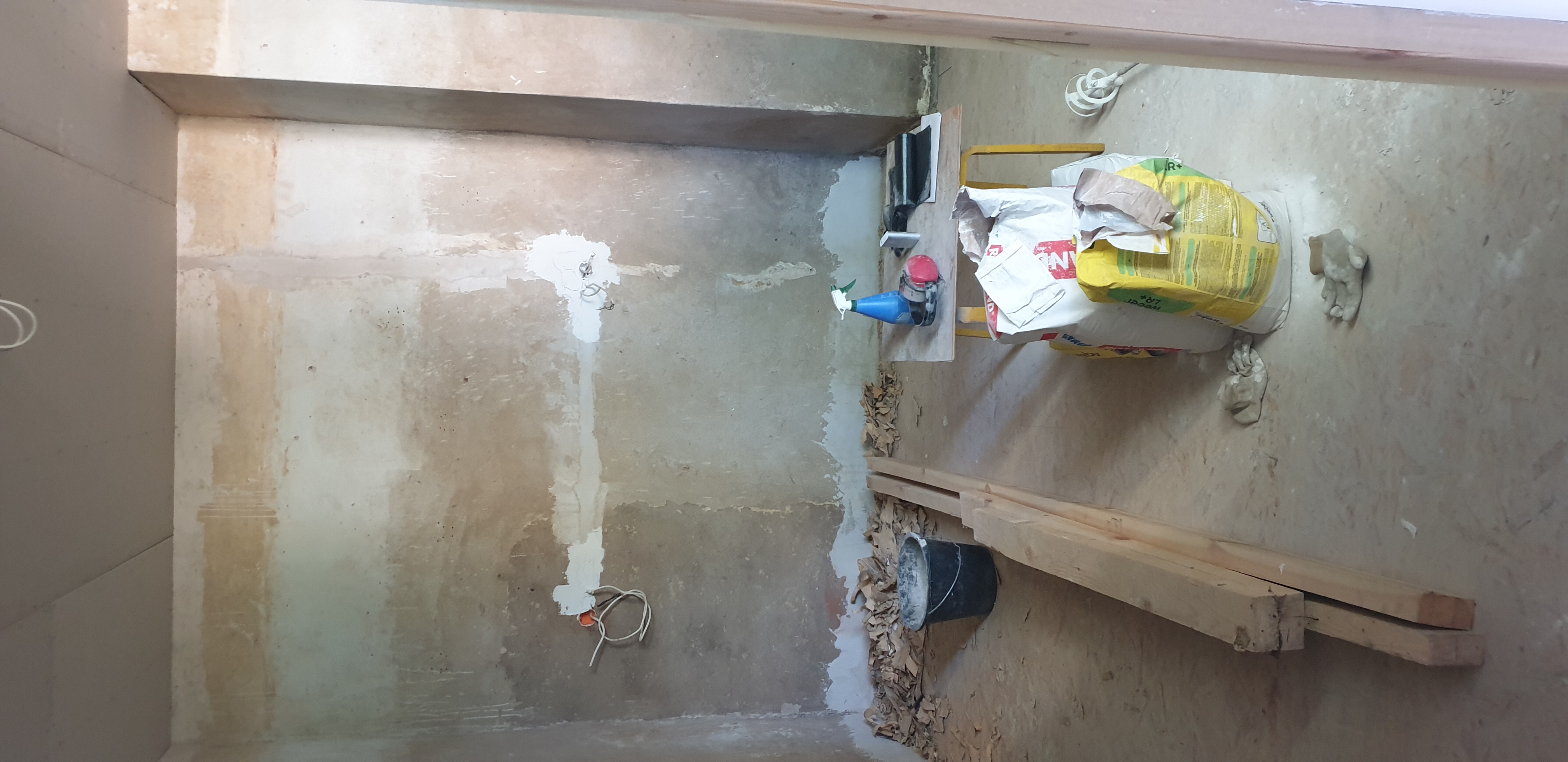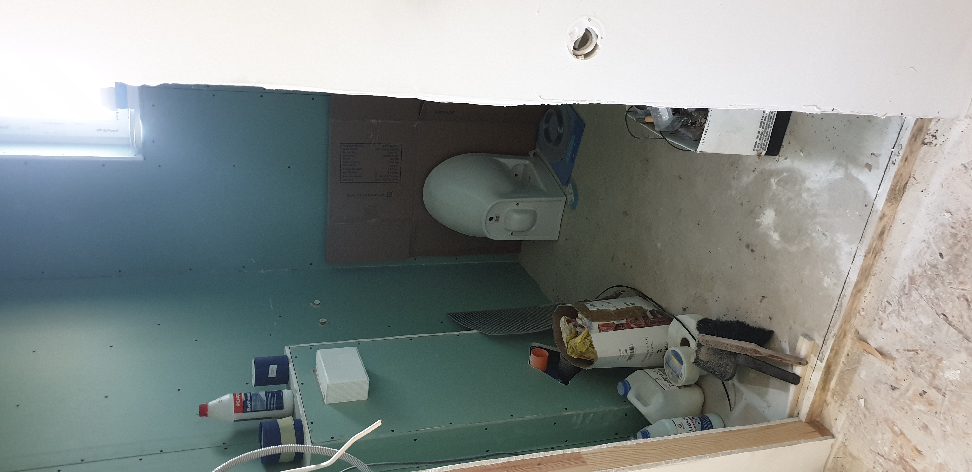 Vannituba- põrandavalu tehtud, seinad kipsplaadiga kaetud.