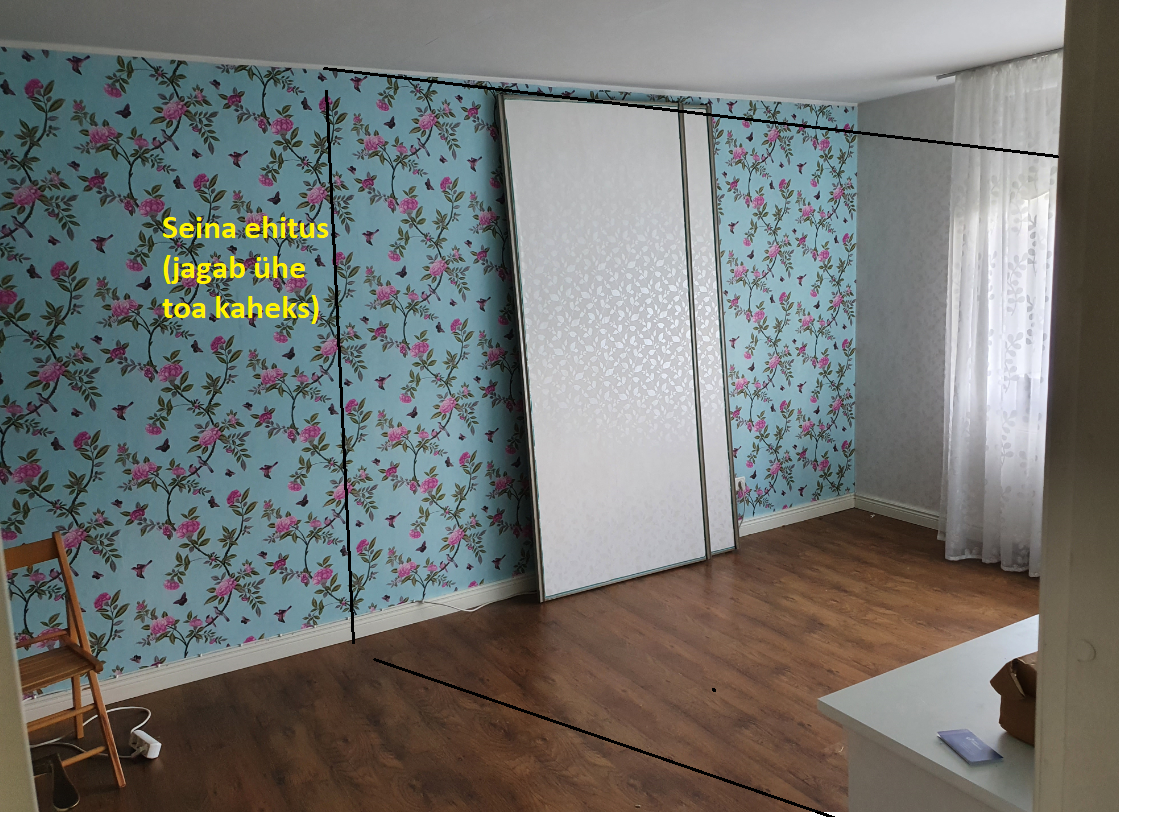 Eramaja esimese korruse tuba tuleb jagada seinaga kaheks. Ühele poolele toast tuleb teha ukseava ja paigaldada uks. Teisele poolele toast tuleb teha aknaava ja paigaldada aken. Seinad on tehtud kärgplokist. Tööd on koos sise- ja välisviimistlusega. Aknale ja uksele tuleb plokkseina toeks panna ülesse vinkelrauad.