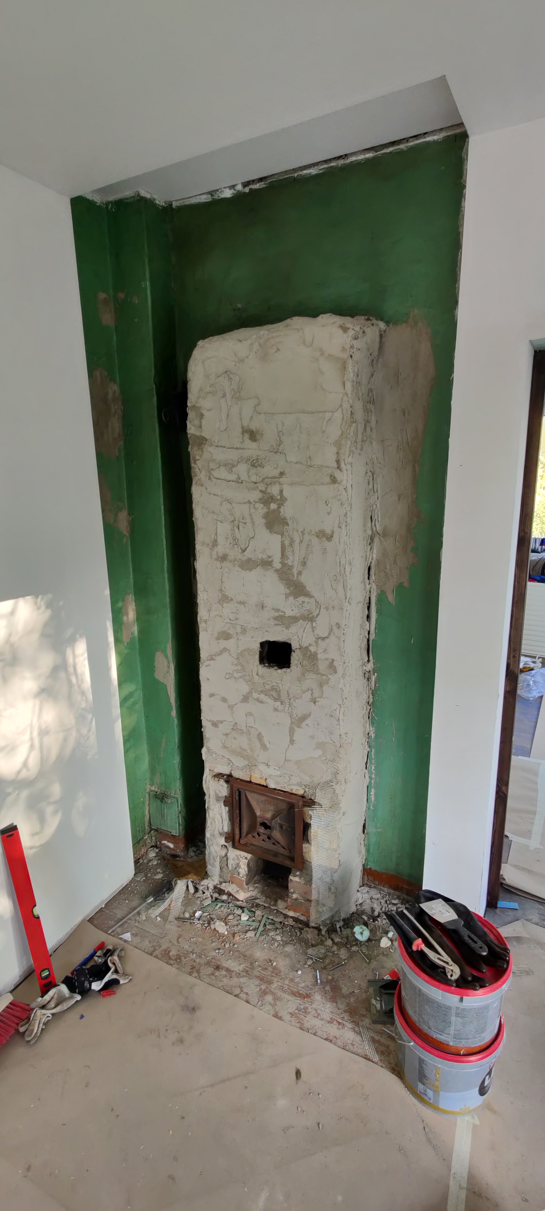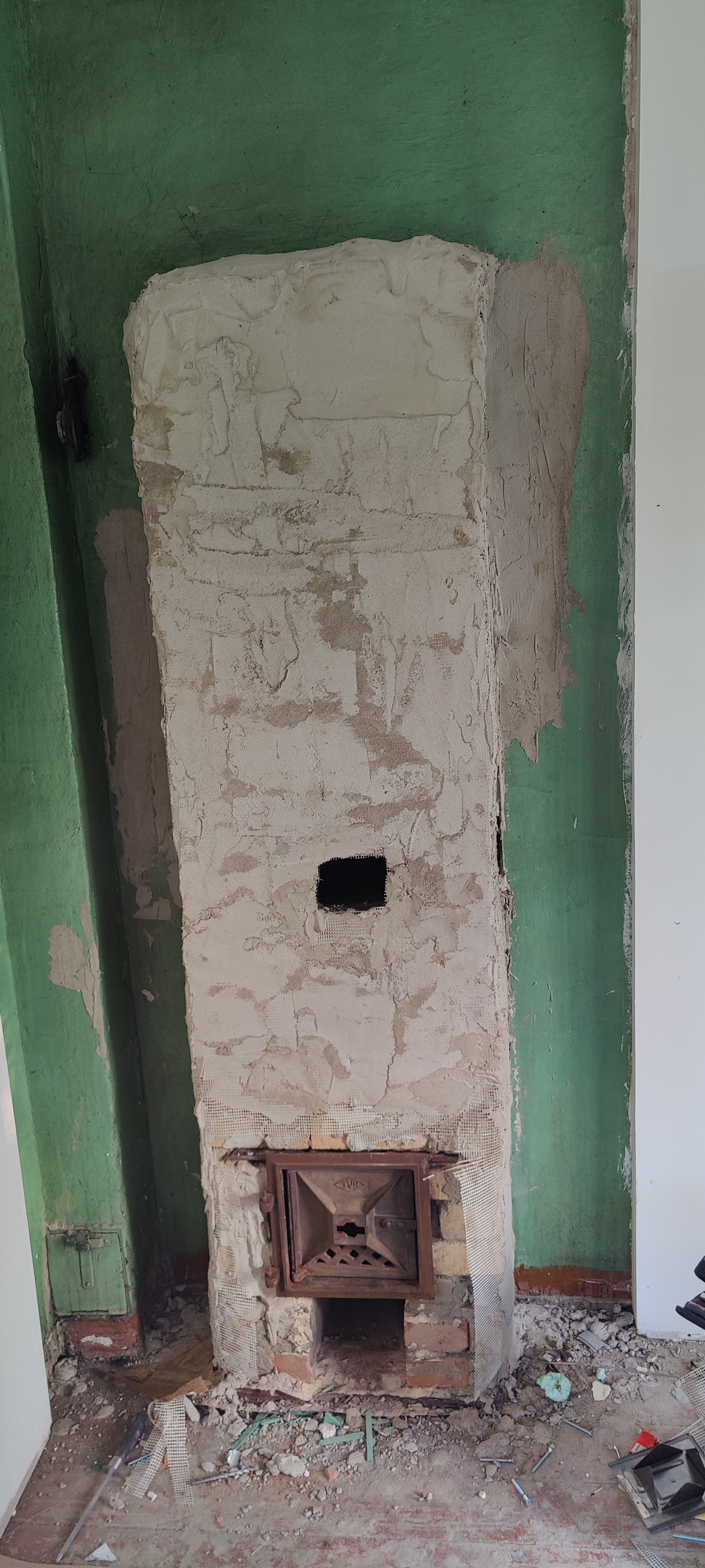 Panna ahjule tuhaluuk/tõmbeuks ette ning krohvida selle ümbrus "Weber TT" krohviga. Peale seda katta ahi ja selle ümber asuvad seinad antiikkrohviga "Weber AK".