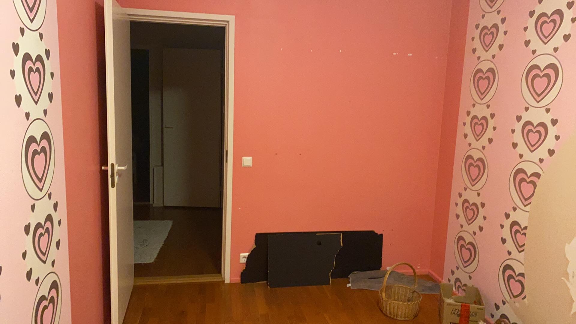 Eemaldada tapeet, pahteldus, valgeks värvimine, uued liistud. Toa pikkus 4,26 ja laius 2,53. Hind koos materjalidega.