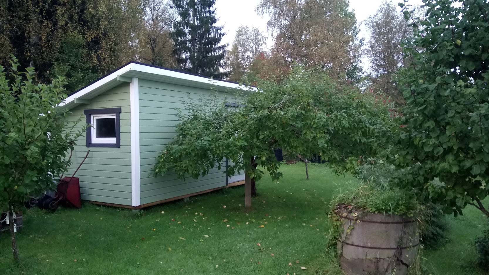 Kuuri mõõdud on 480x300cm. Karkass on 10x10cm prussidest, toetub postidele (10tk). Kuur kinnitub postide külge armatuurvarrastega (varras on läbi prussi). Katusel on OSB + kärgkate. Seintel on välisvoodrilaud. Kuuril on uks ja 2 akent. Põrandal on lahtised vineertahvlid, mida saab eemaldada.