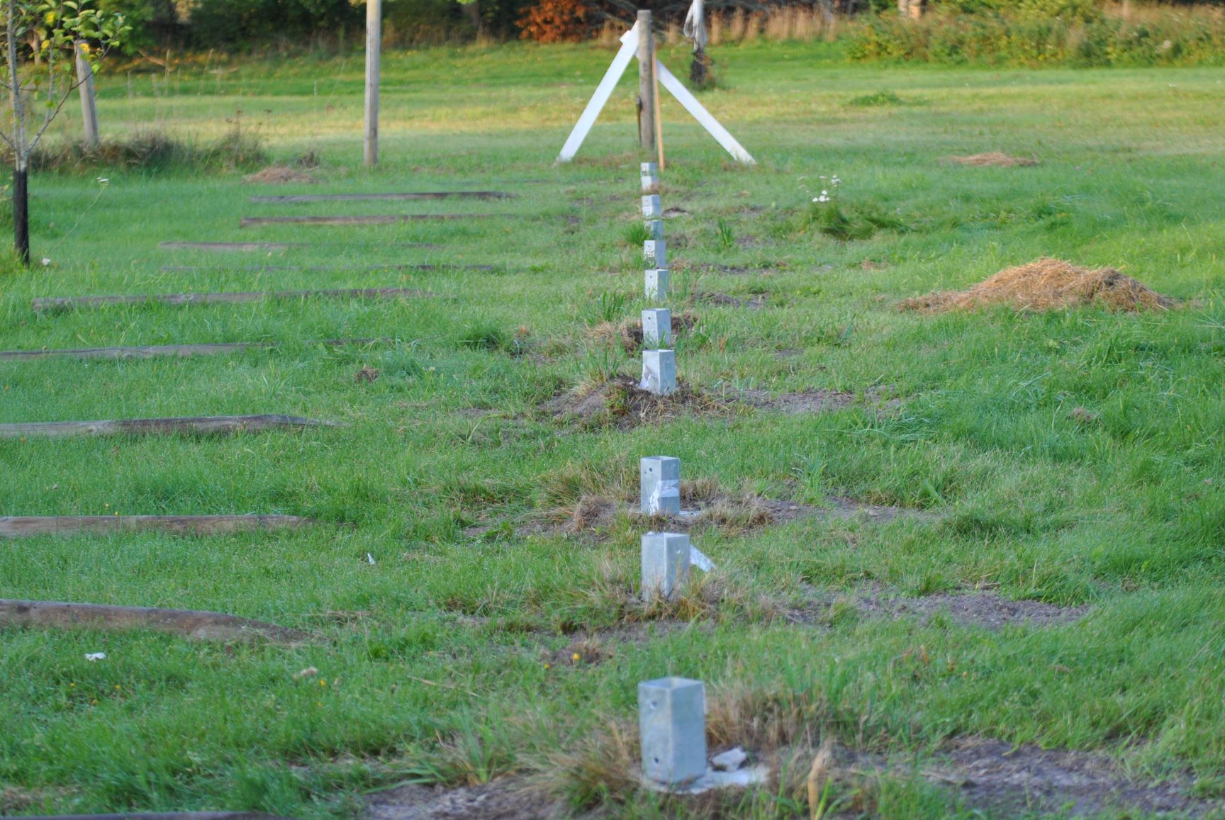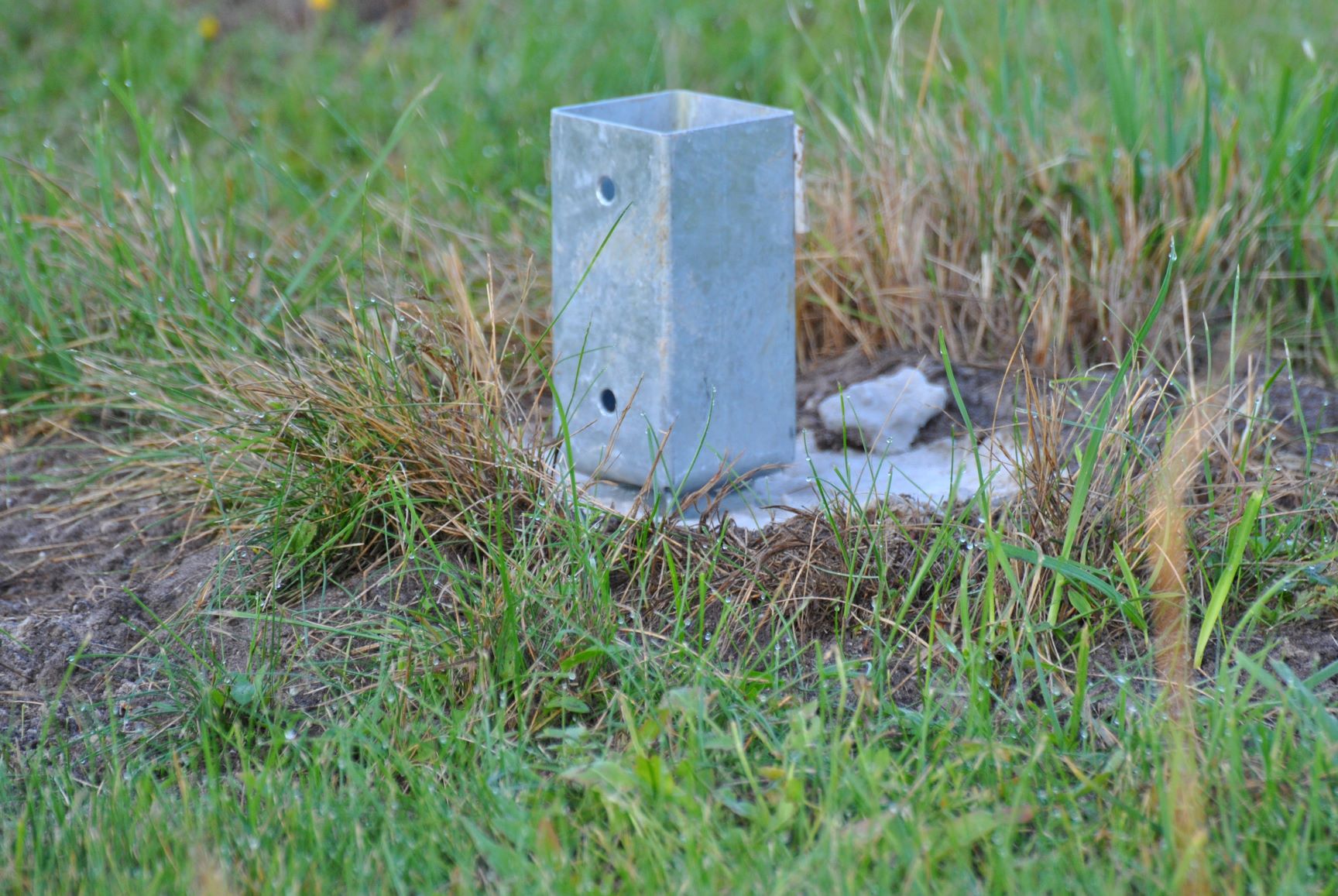 Aiapostide paigaldusaukude ettevalmistamine (soovitavalt puurimine), neisse terasest galvaniseeritud postijalgade paigaldamine ja postijalgade betoneerimine paigaldusaukudesse.