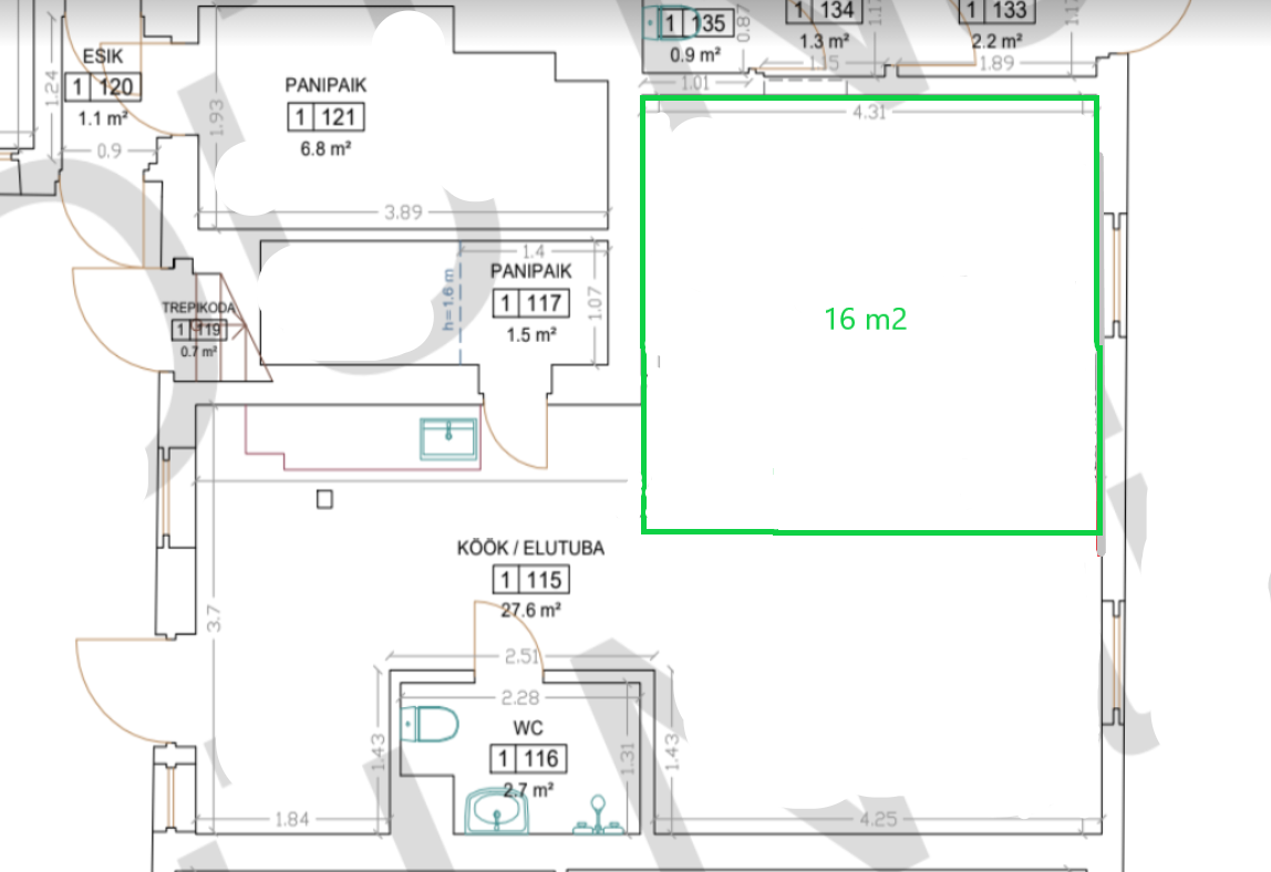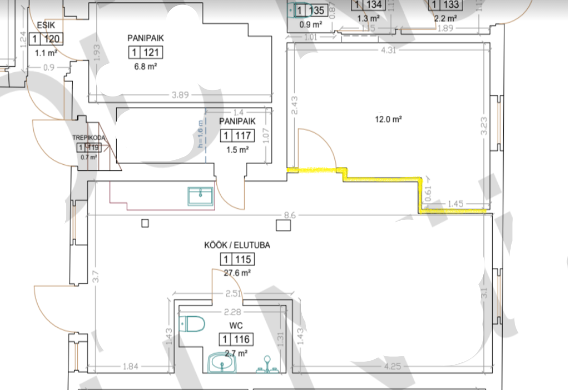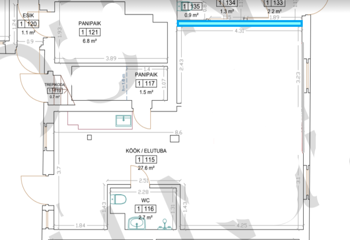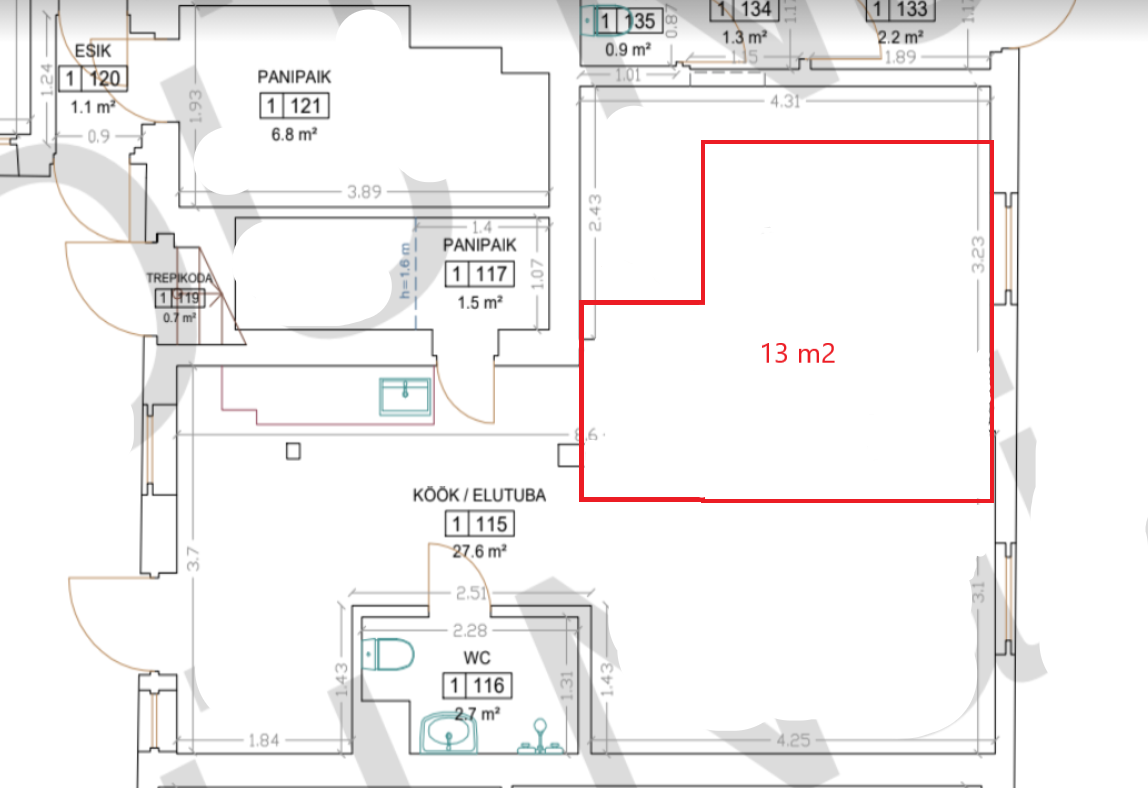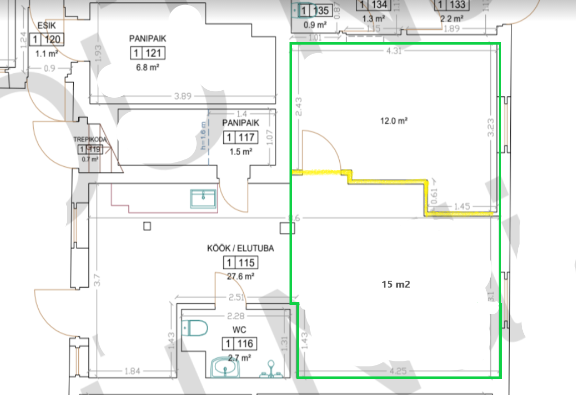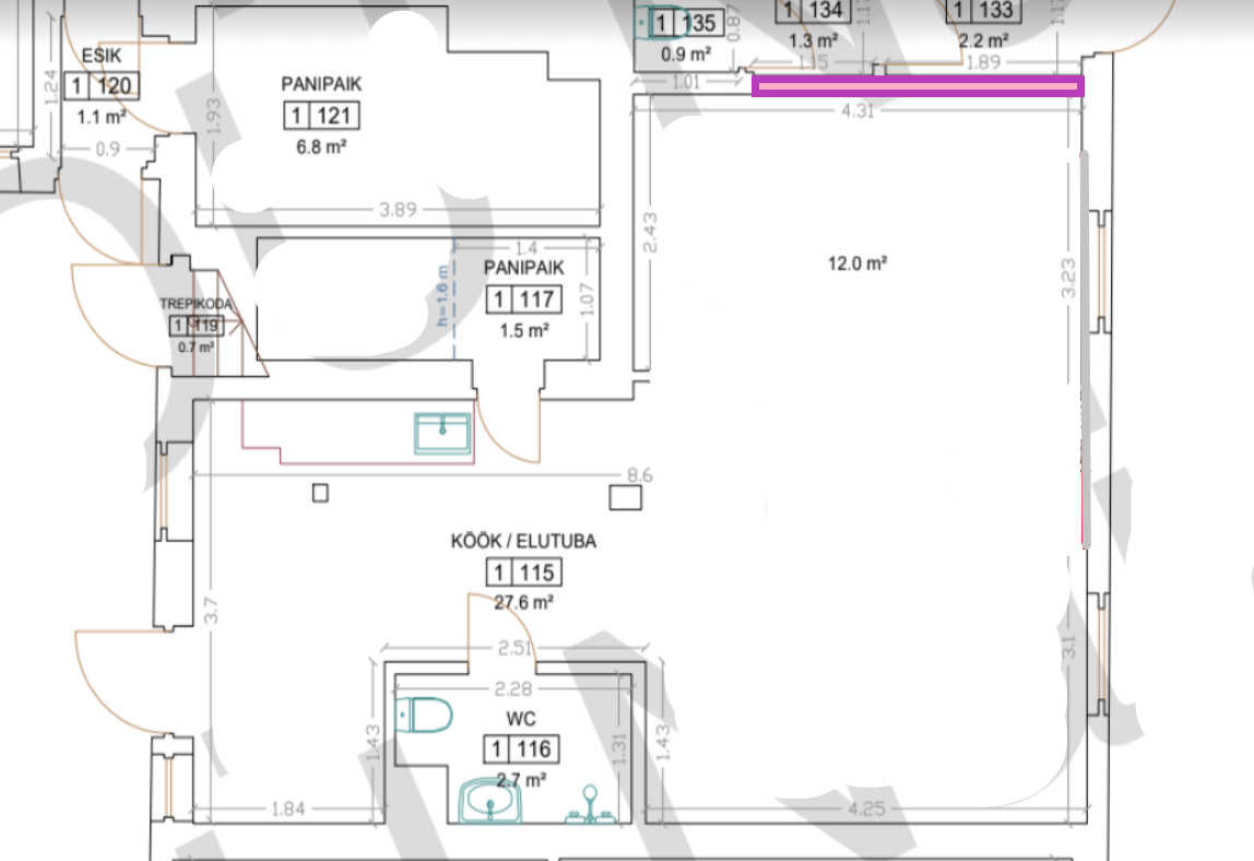 Paigaldada uks. Toa kõrgus 2,6 m.