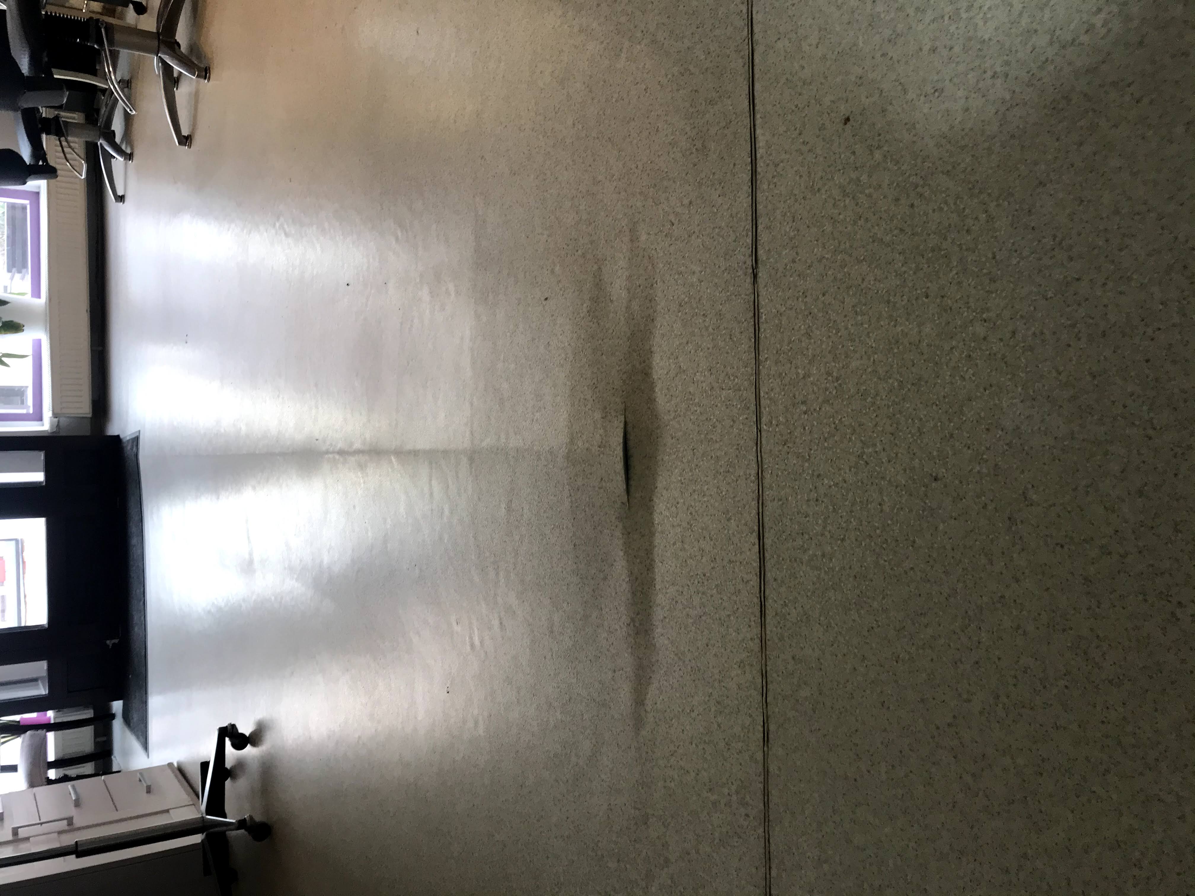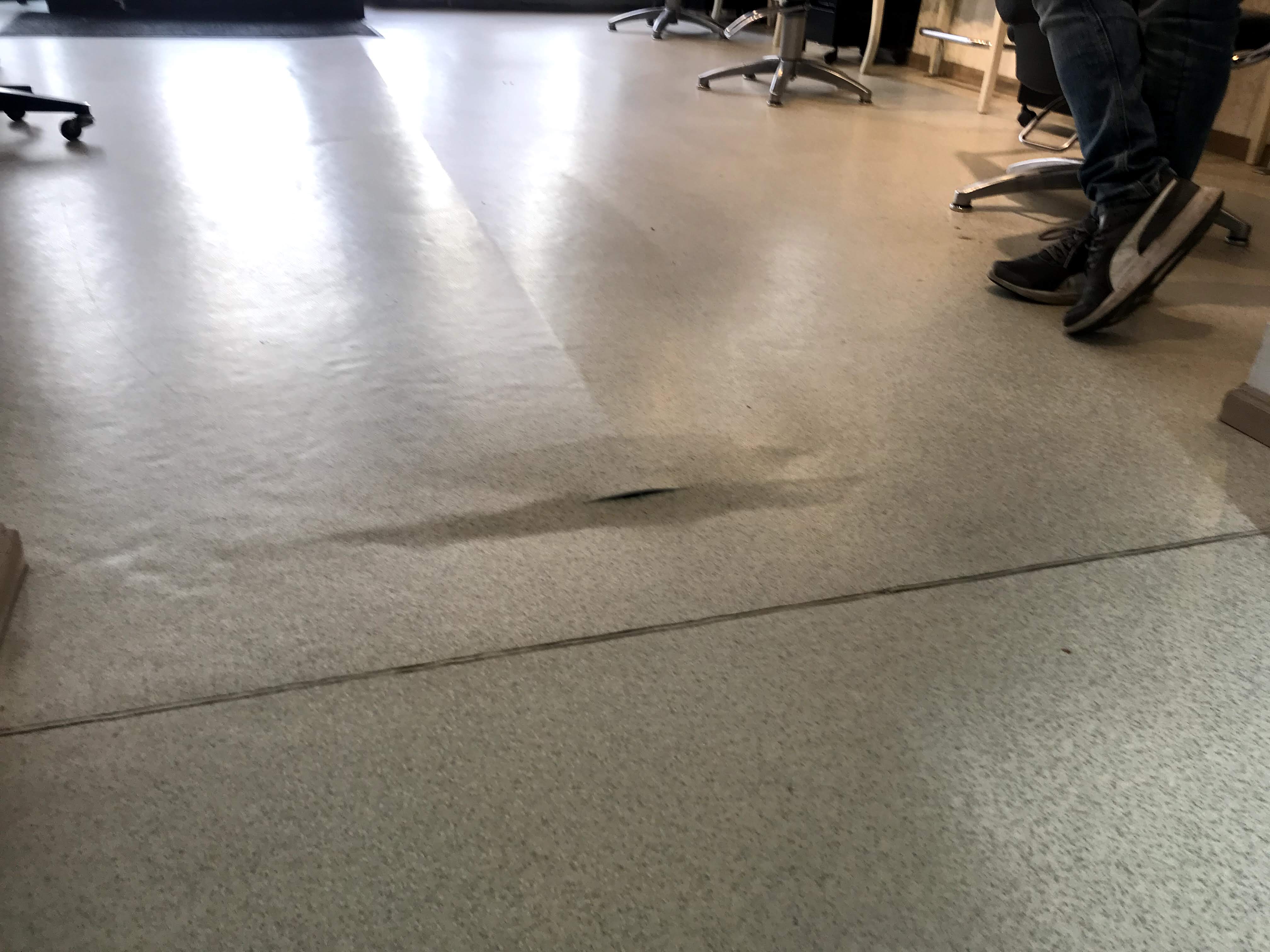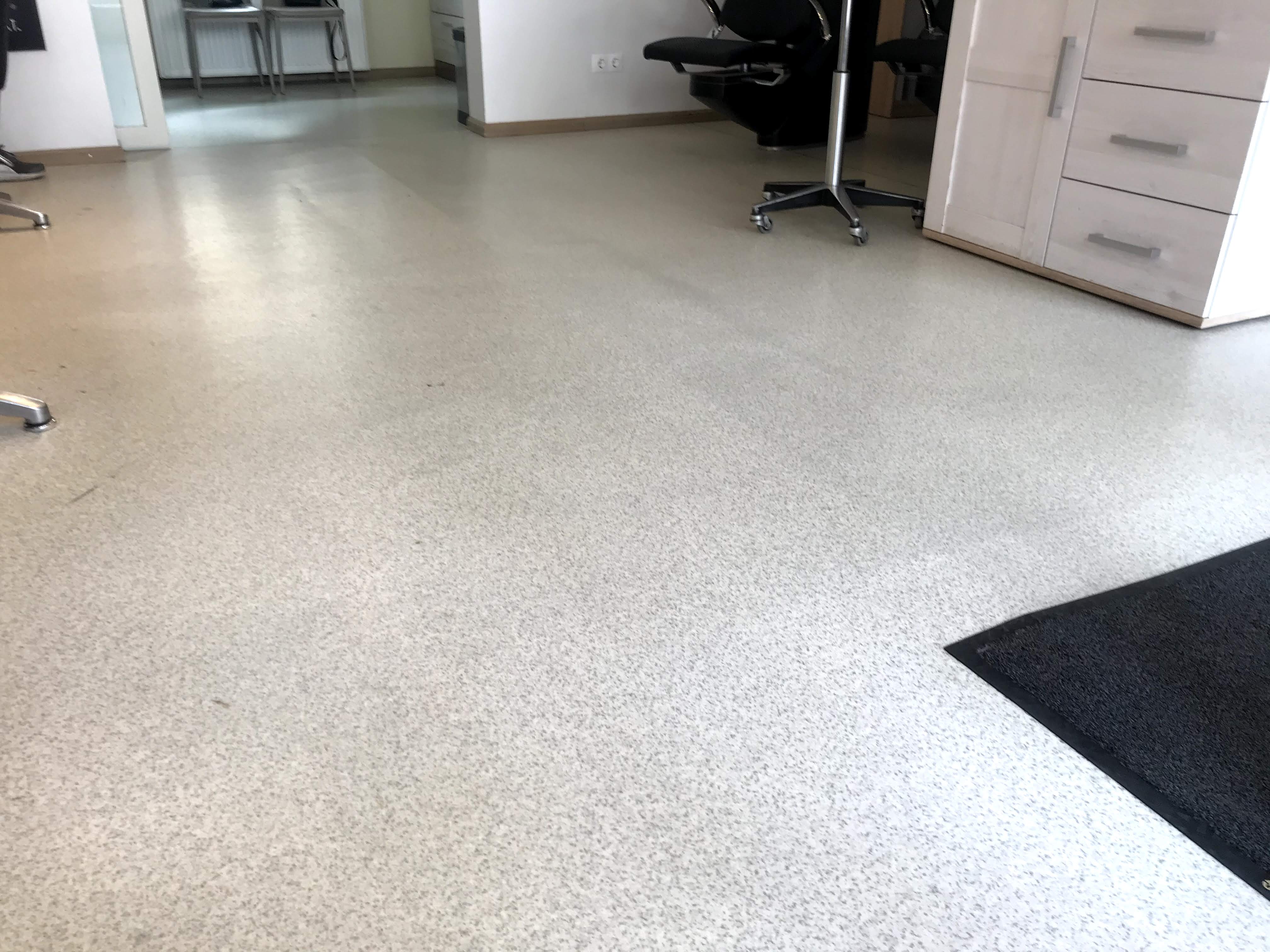 Põrandal on terratso plaadile peale pandud vinüülmaterjal.