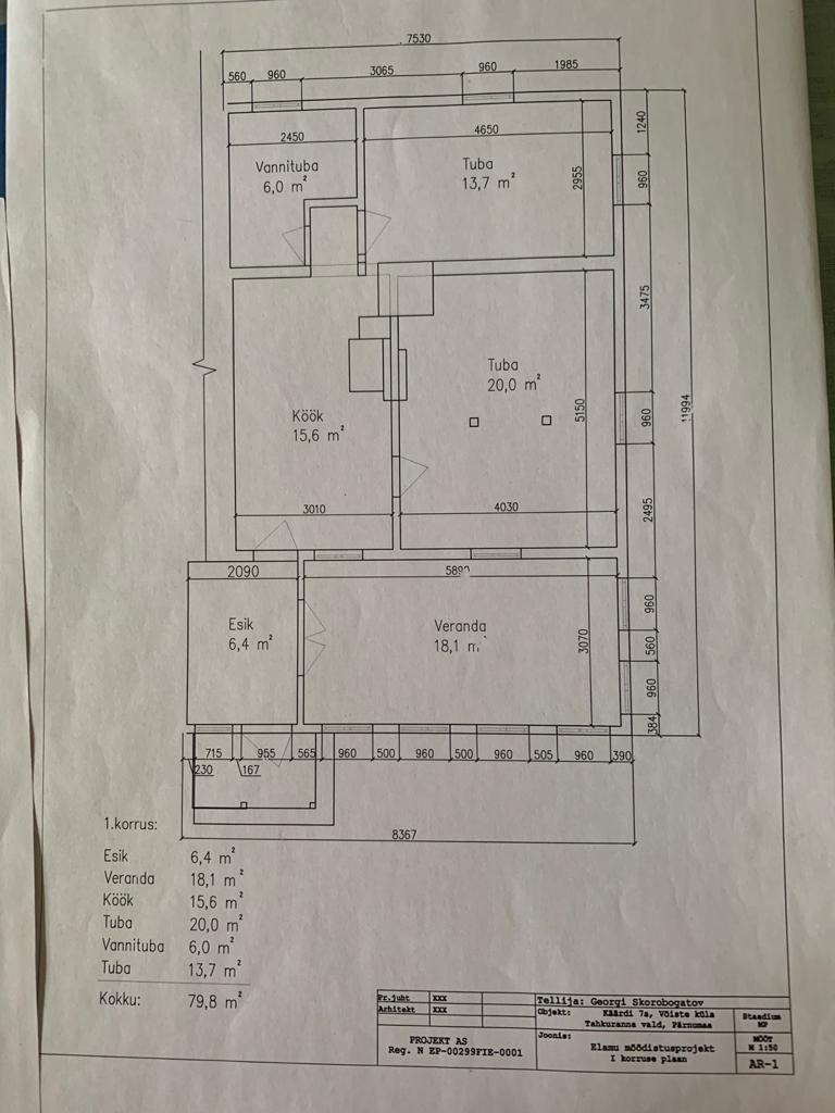 | Ehitusmaterjalid: | Töö tegija poolt |