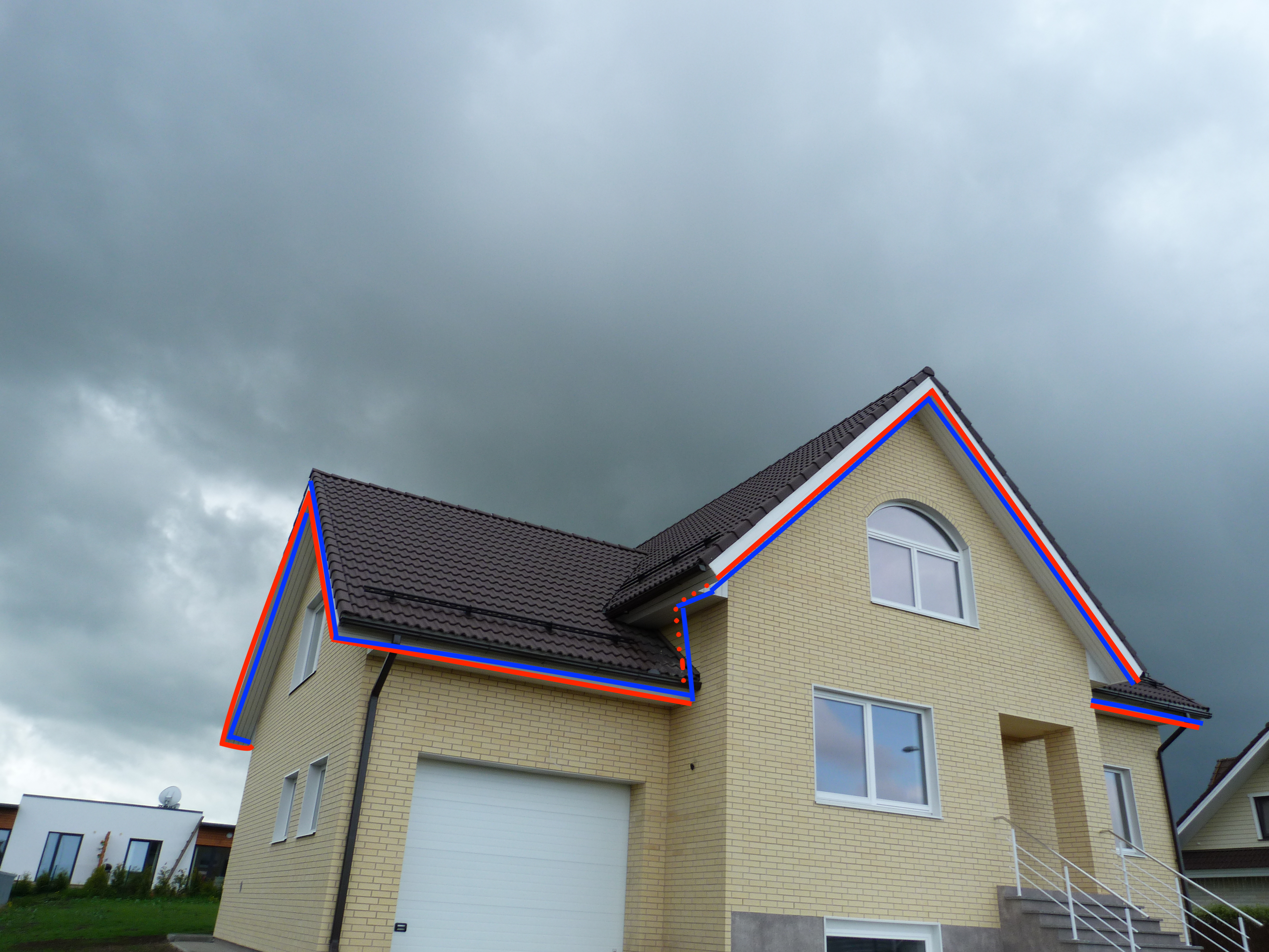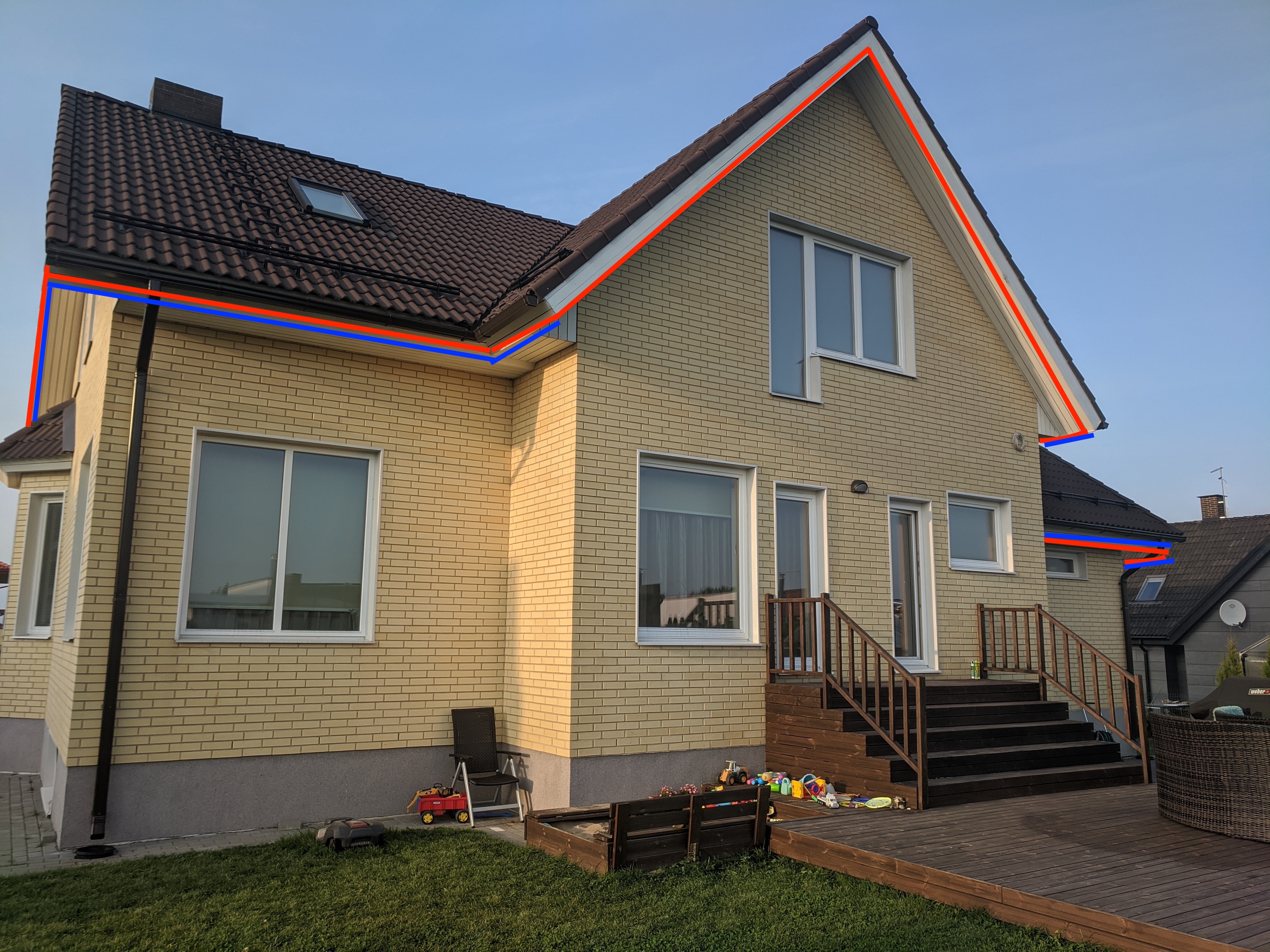 Maja korgus 9.5m, laius 12.3m, pikkus 16.7m