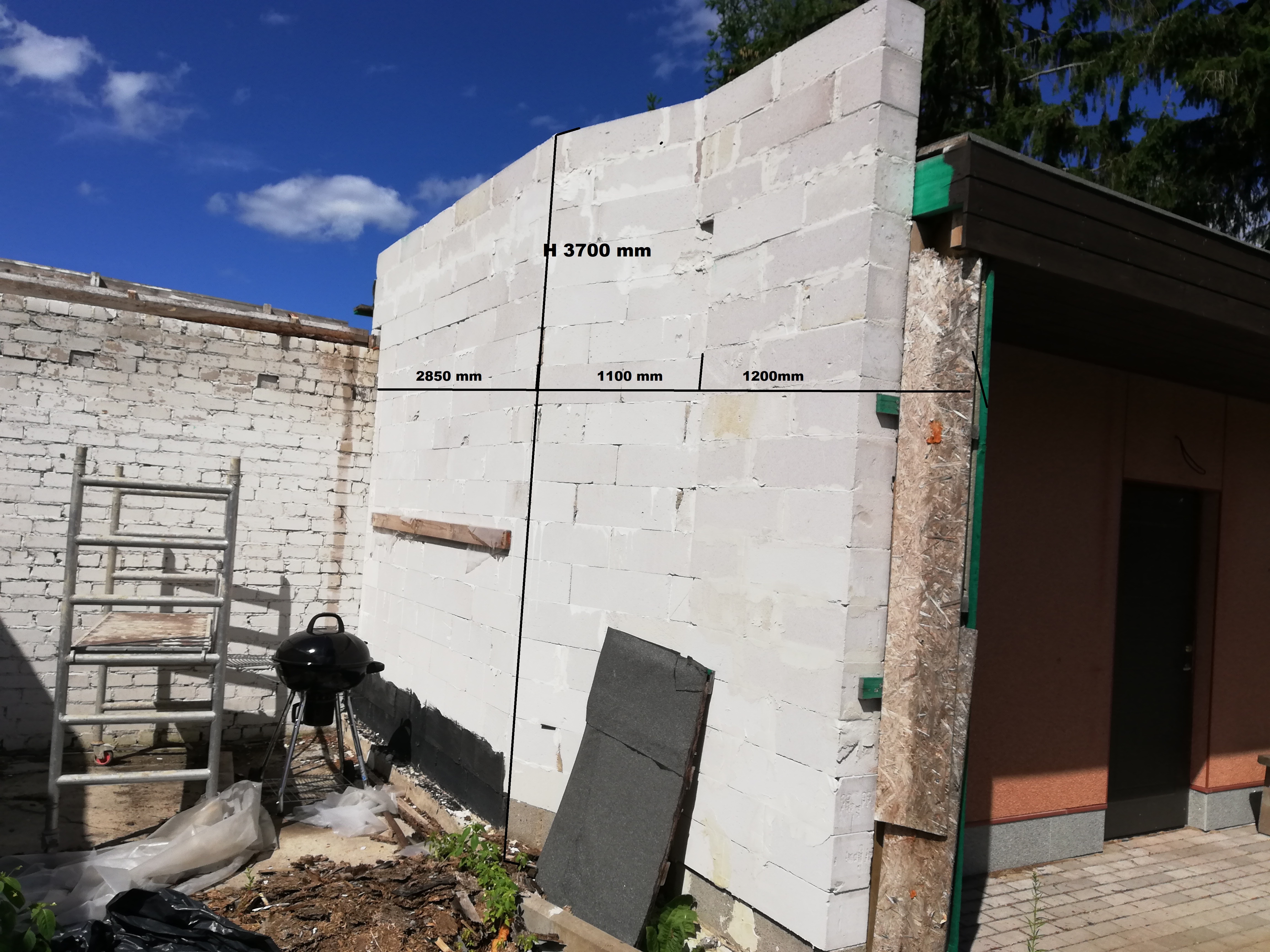 1. Osad laiusega 2850mm ja 1100mm- Paigaldada roovitus 100mm+50mm koos villaga ja peale tuuletõke, tollilauaga tuulutusvahe, ja plaat kivex