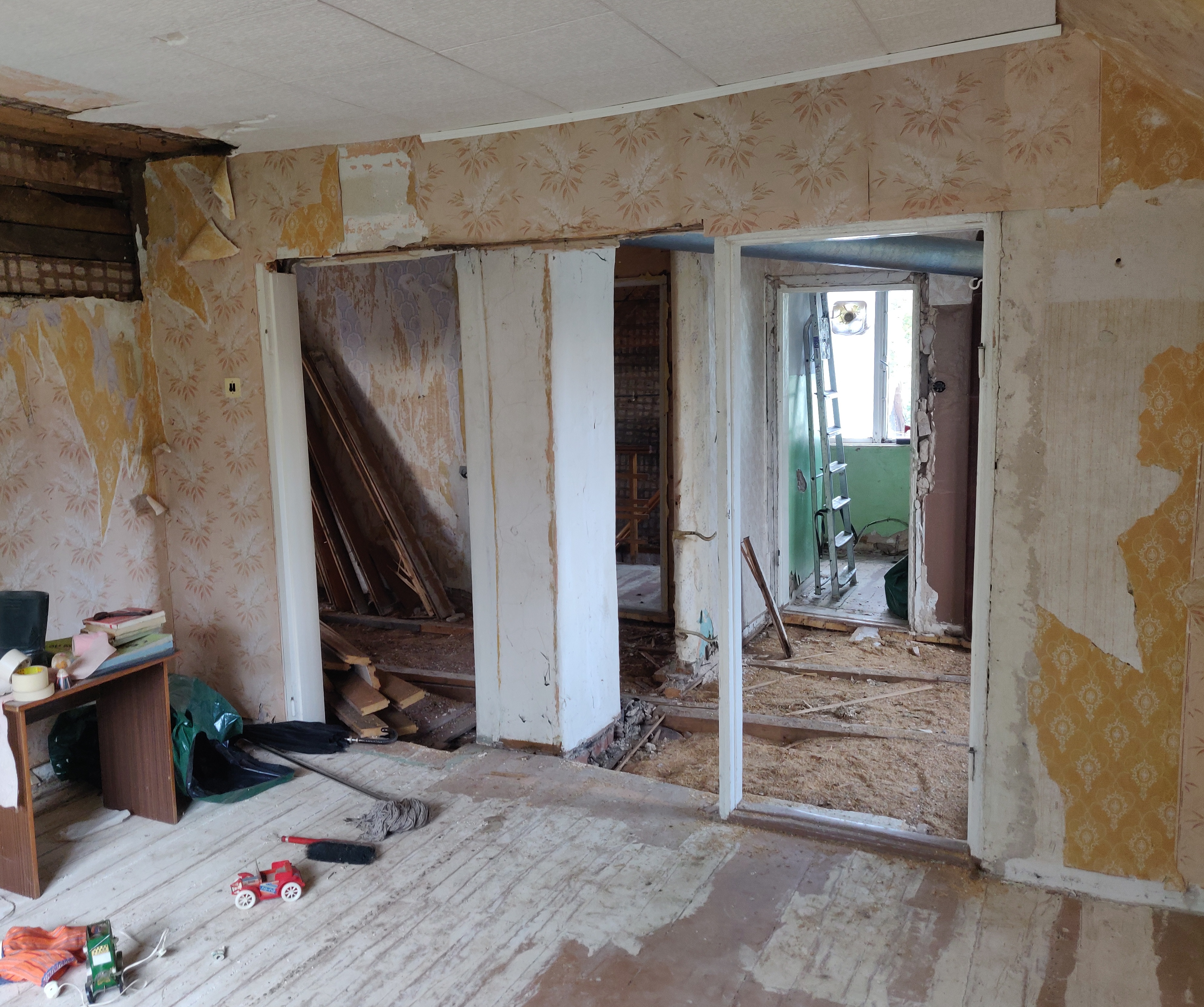 Hetkeseisukorras on korter karkassini puhtaks lõhutud, vaja lammutada veel mõned vaheseinad.