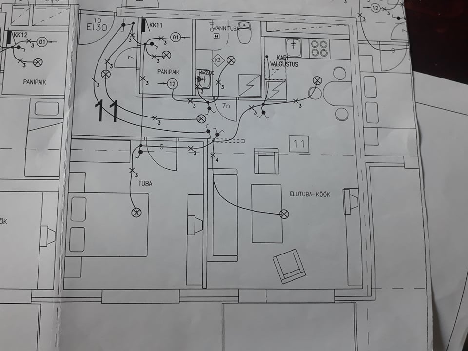 - Elektritööd: köögis on vaja ühe lambi asukohta laes nihutada laua kohale.