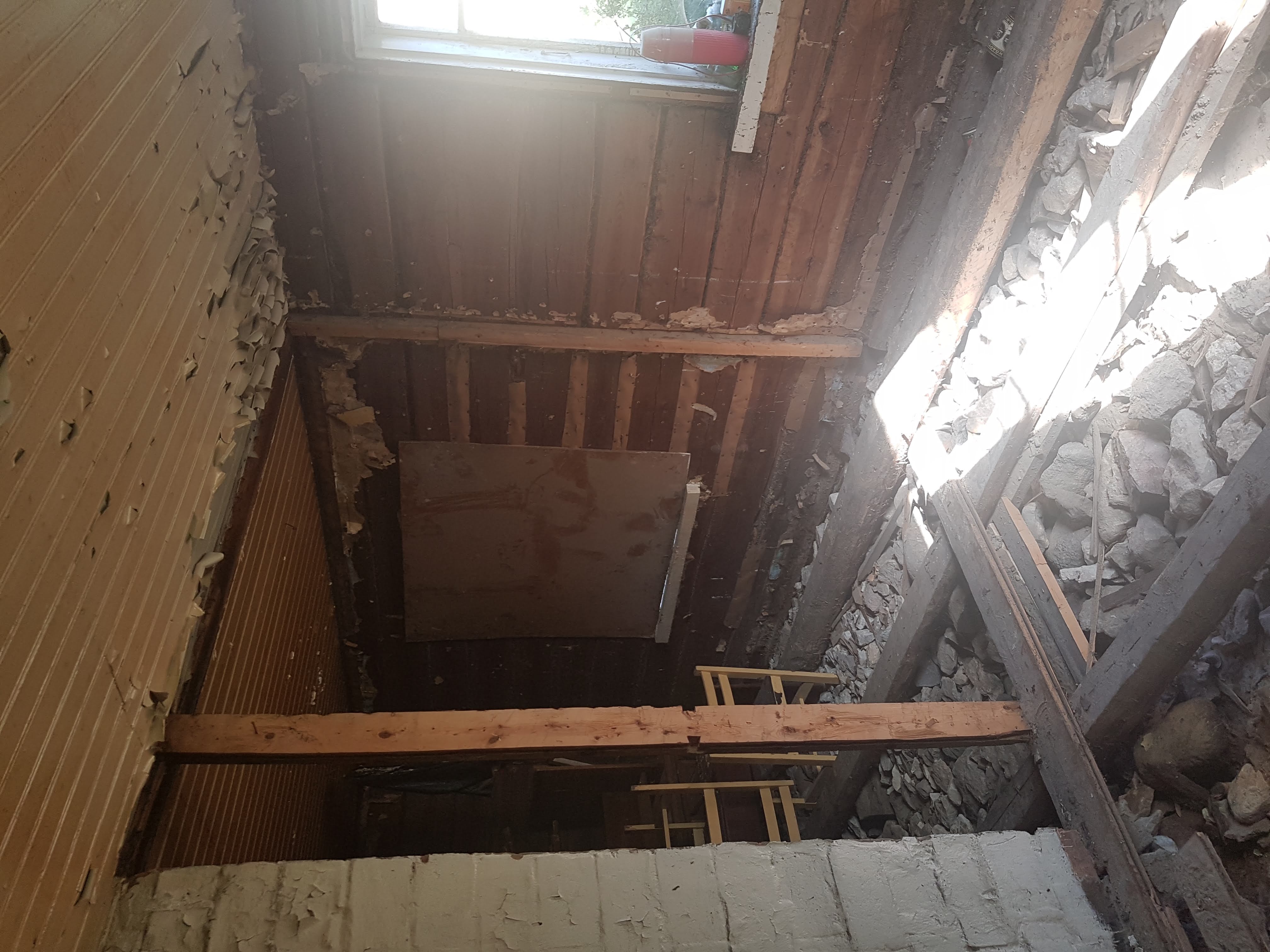 Vesi ja elekter on hoonest eemaldatud. Masinatega saab majale ligi ja saab manööverdada.