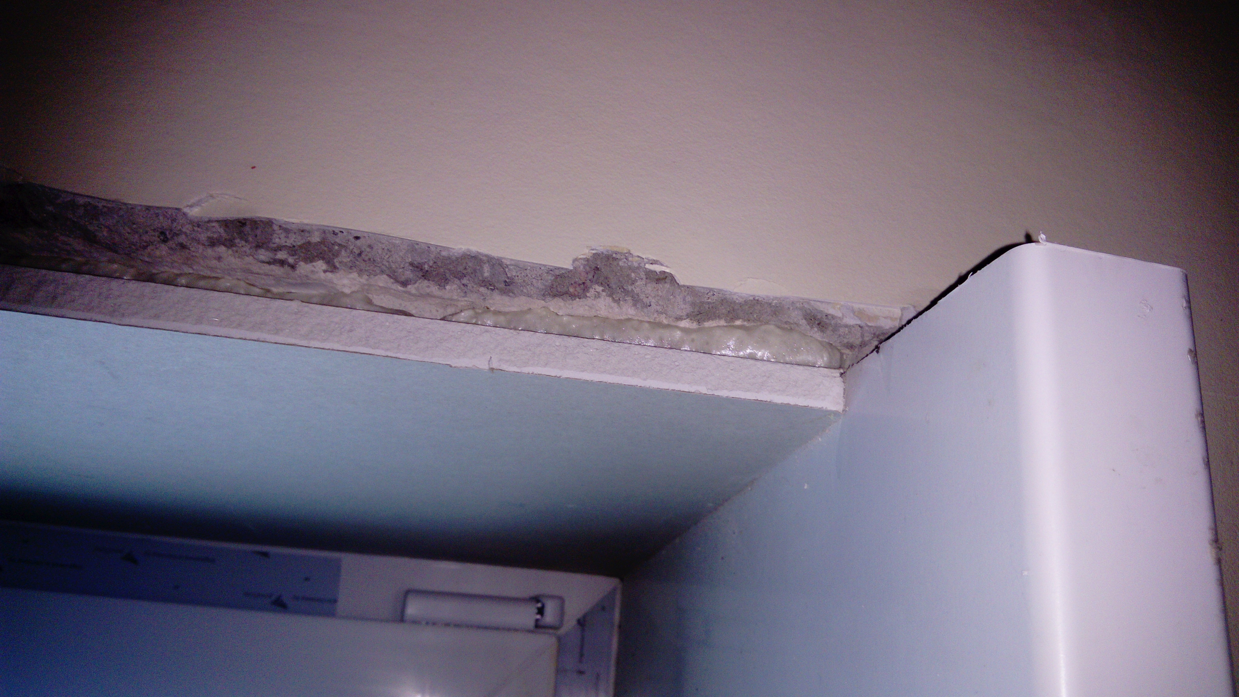 - Ehitaja poolt paigaldatud kipsplaadi servad katta kipsiga (100 mm sügavus x 1600 mm kõrgus) akna mõlemal küljel. Pärast seda pahteldada, kruntida ja värvida valgeks 100 mm ulatuses kipsplaadi servast (vt. pilt 4, 5) .