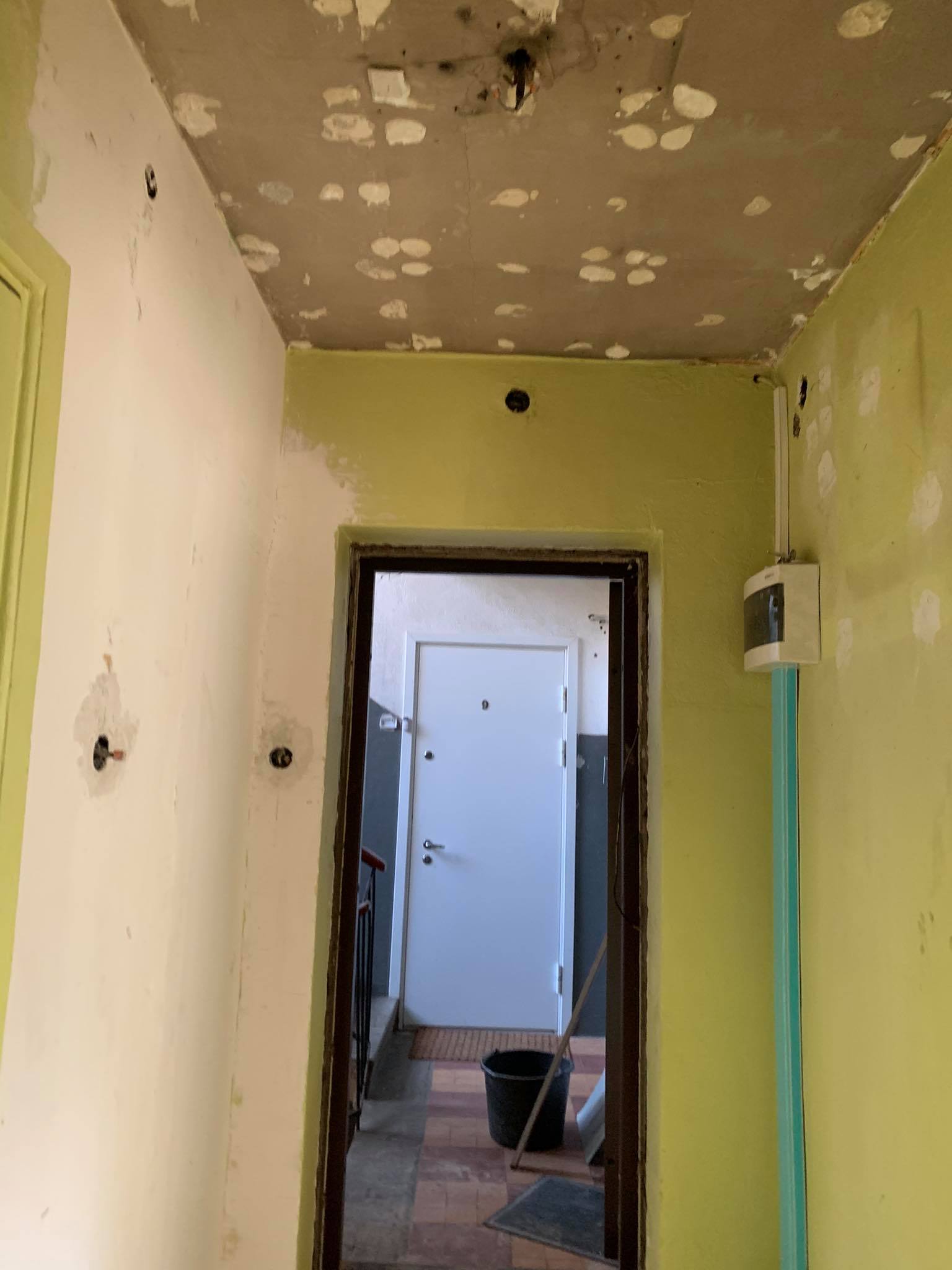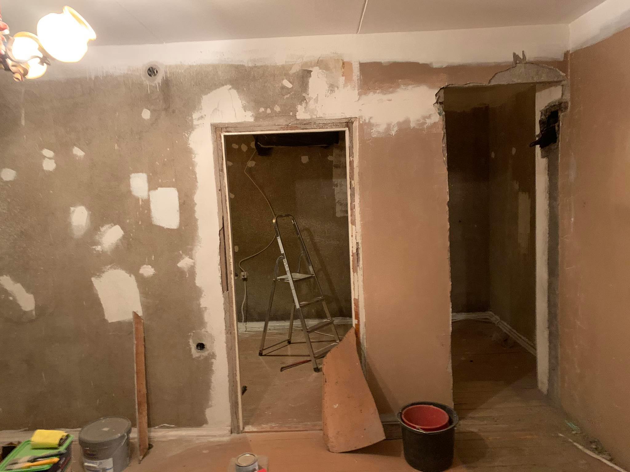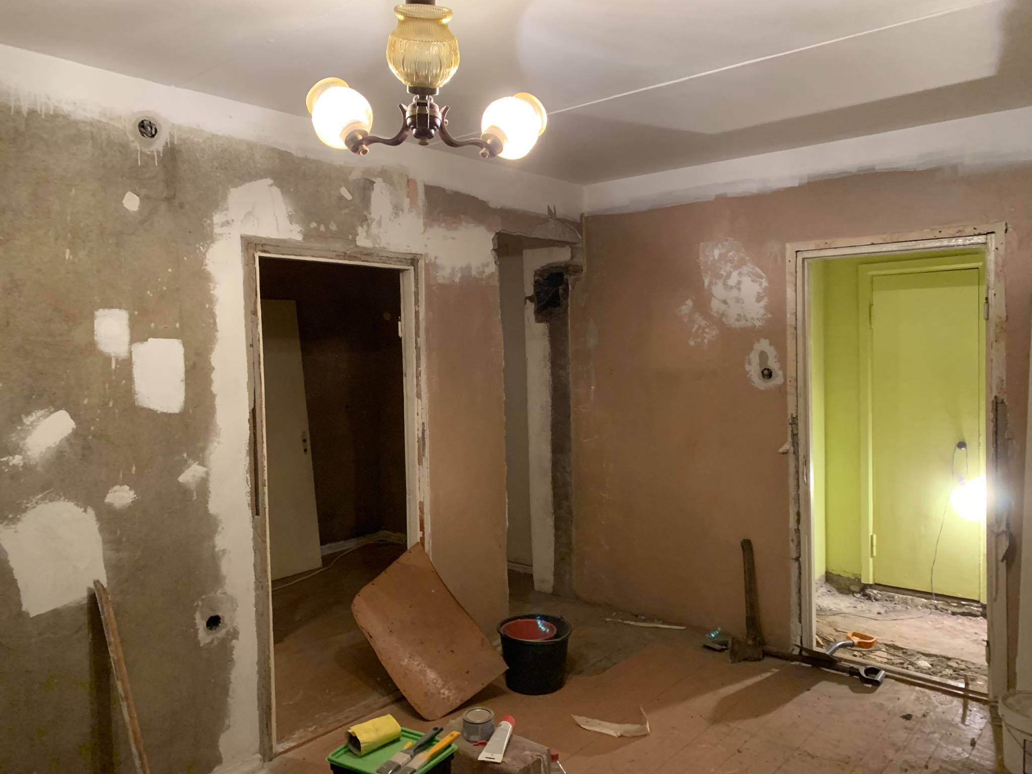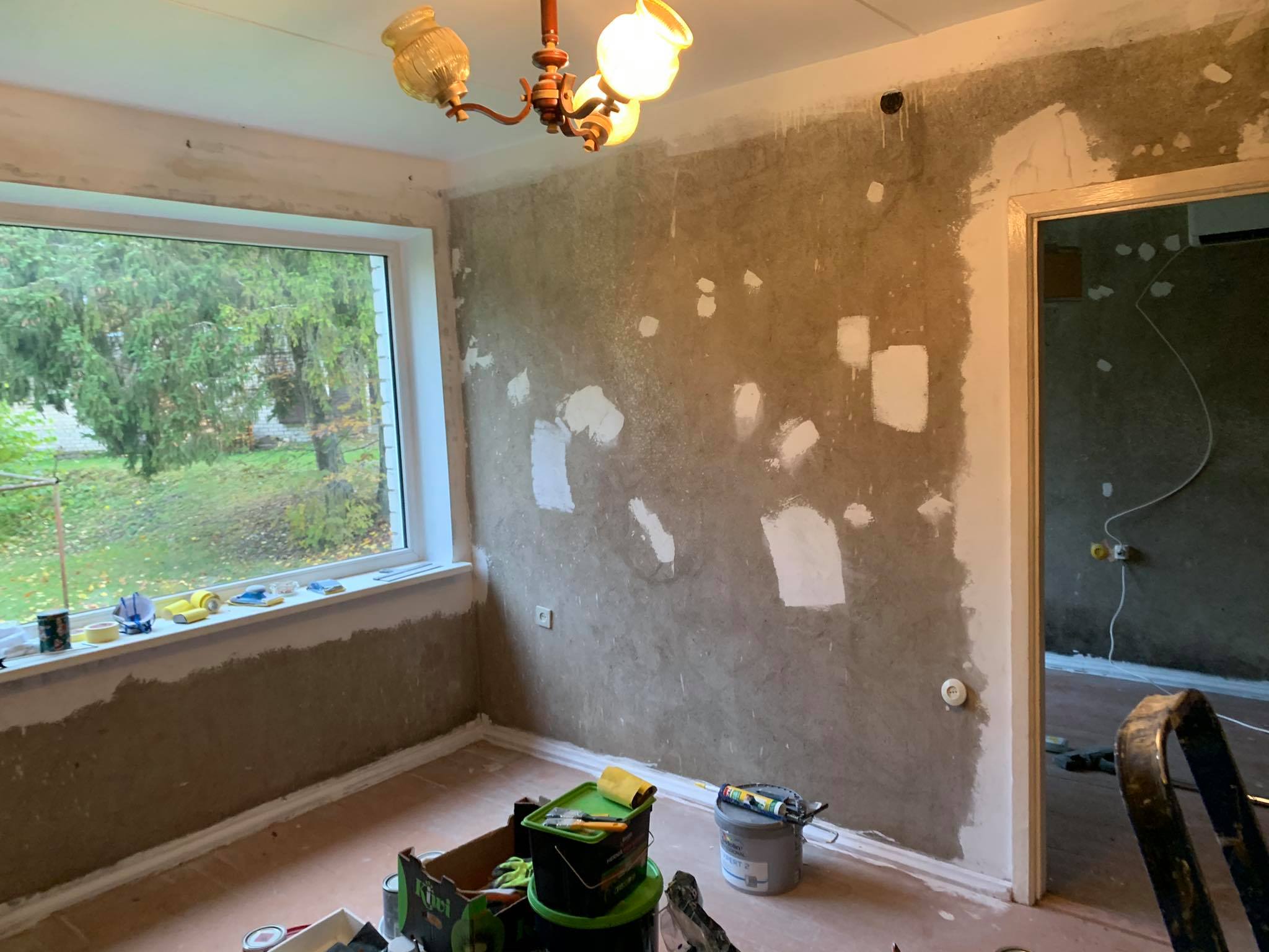 49m2 korter, nõukaaegne 2 kordses telliskivimajas 1korrusel, 3s toas tapeetimine, vana põrandalaudade lihvimine ja värvimine, uued põranda liistud, , ahjude ümber olevate seinte kruntimine , enamus pahteldamine teostatud juba, pahteldamine , nelja siseukse paigaldamine, esikus köögiś vannitas pahteldamine ,värvimine . köögis uue põranda paigaldus koos elektriküttega 8m2, millest põranda küte 5m2 vee ja kanalisatsiooni teise seina p paigaldus,´vedada. köögis (kraanikausi ja veevõõtja paigalduse muutmine. köögi lagi . enseinad pahteldada, lihvida värvida, esikus-köögis laminaat põrand/plaaditud keraamiline põrand esik köök kokku 10,5m2, ,uued põranda liistud paigaldada.