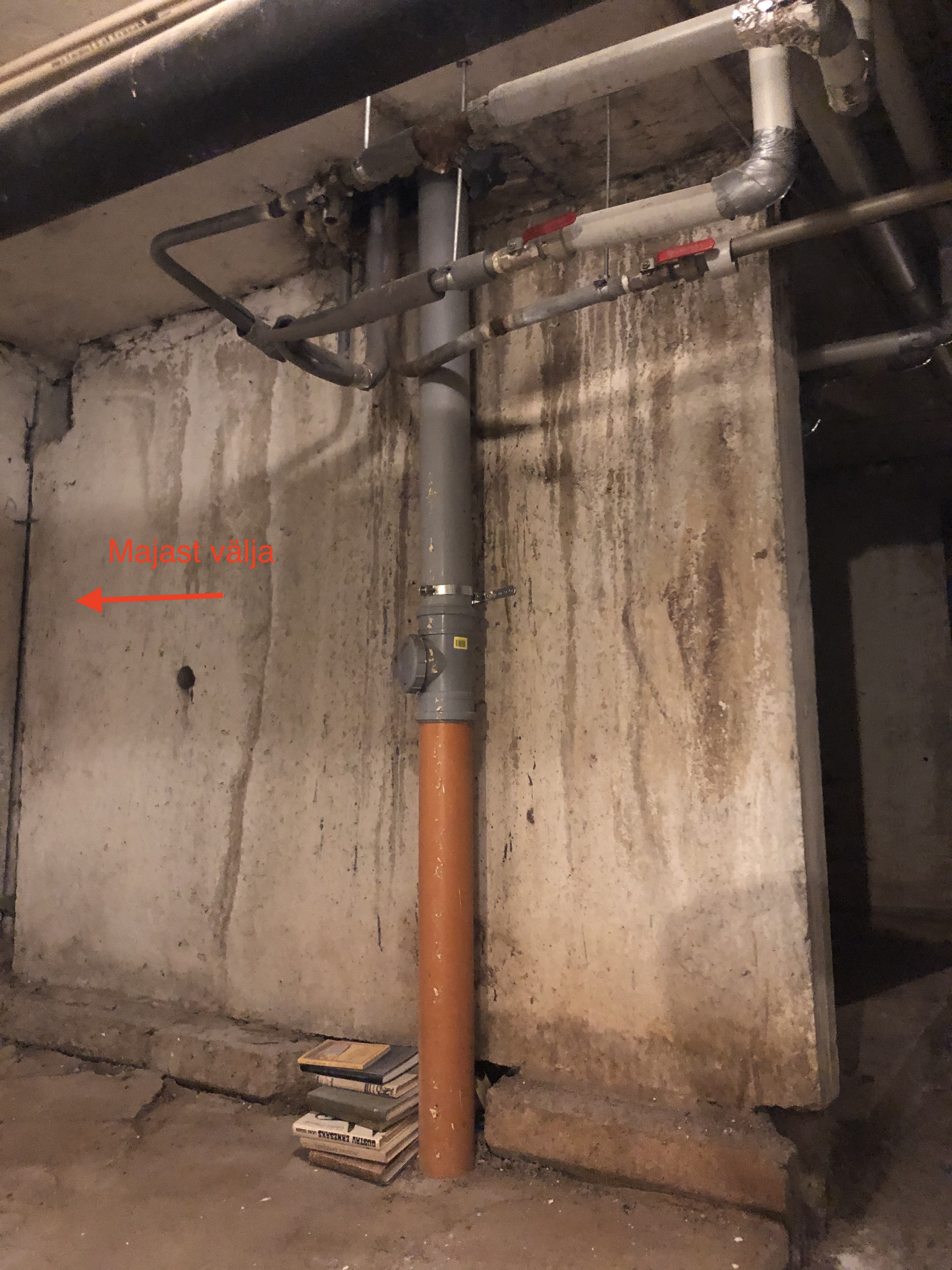 Olemasolev toru on malmist 100 toru ja kulgeb keldri põranda sees maja ees olevasse kanalisatsiooni kaevu.